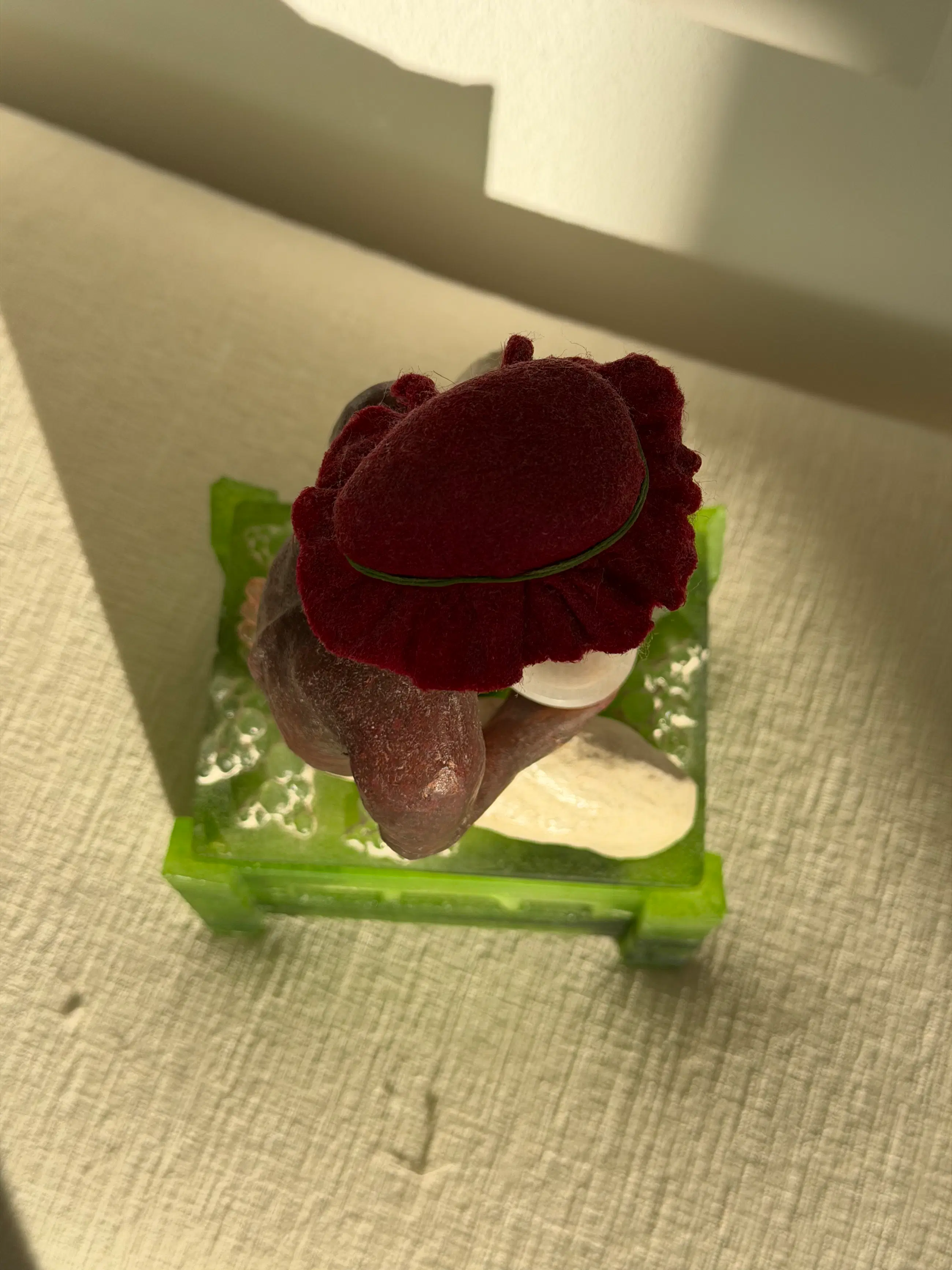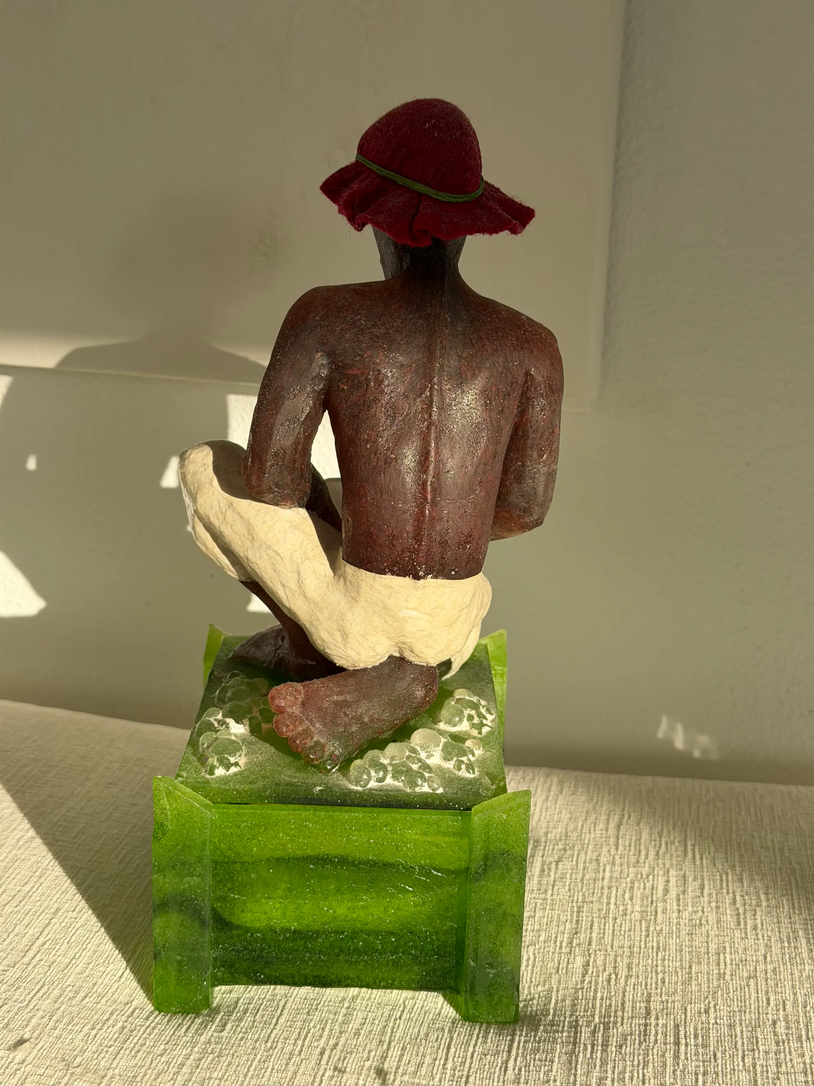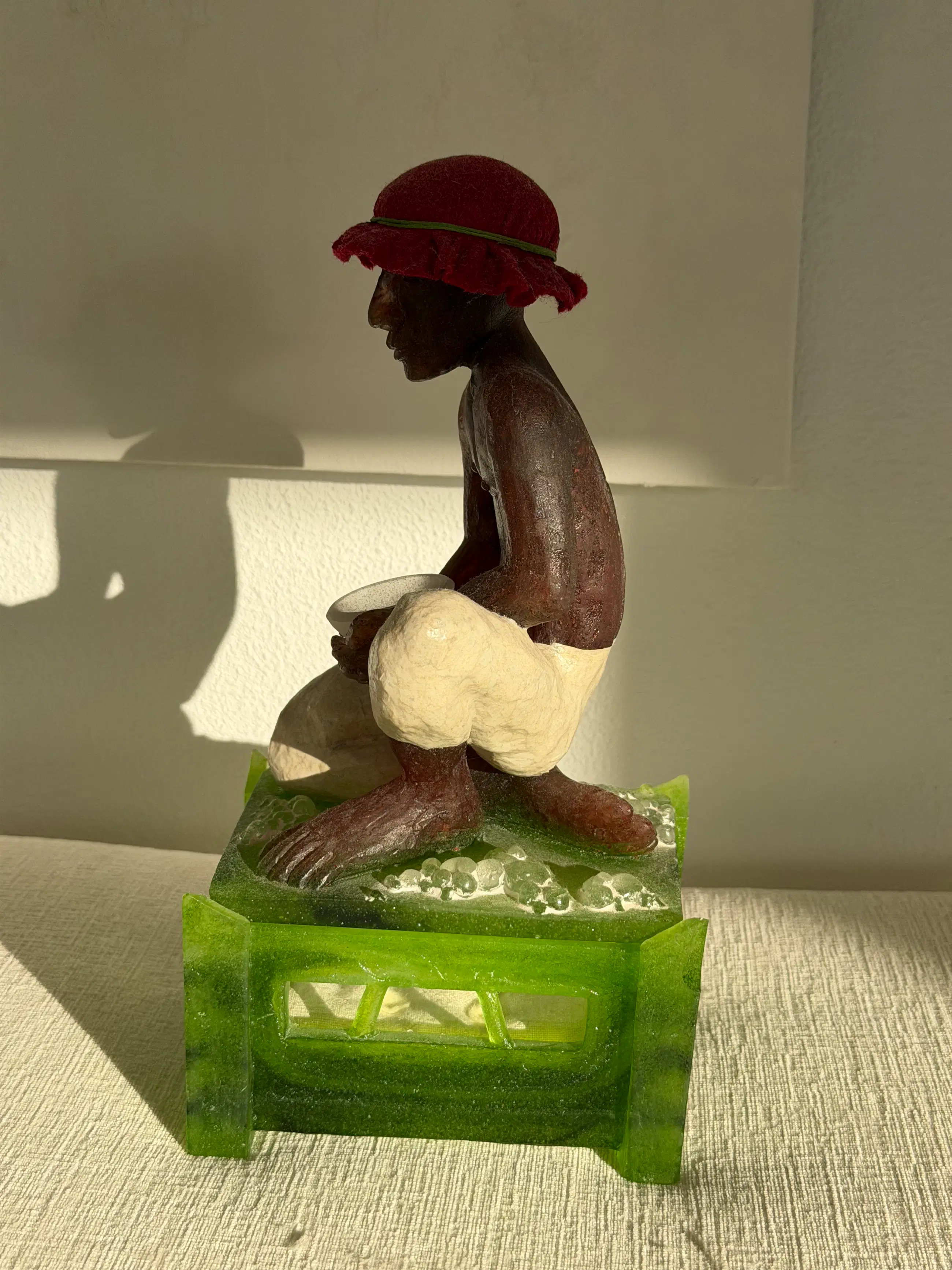 Kunstobject Empty Hands door Hartmann Greb. Cast glass, textiel and buttons. 1 beschadiging op het groen zie foto.
