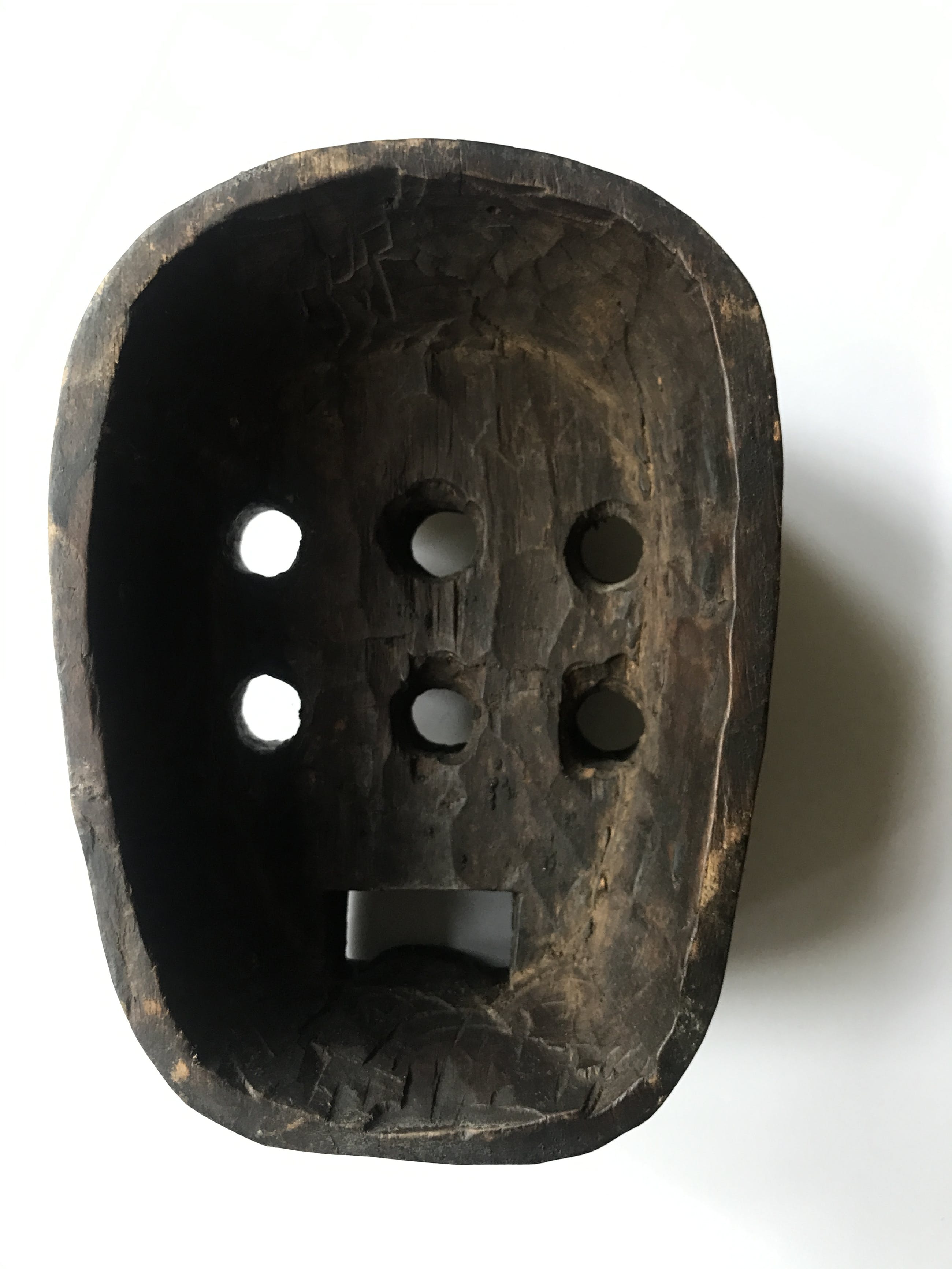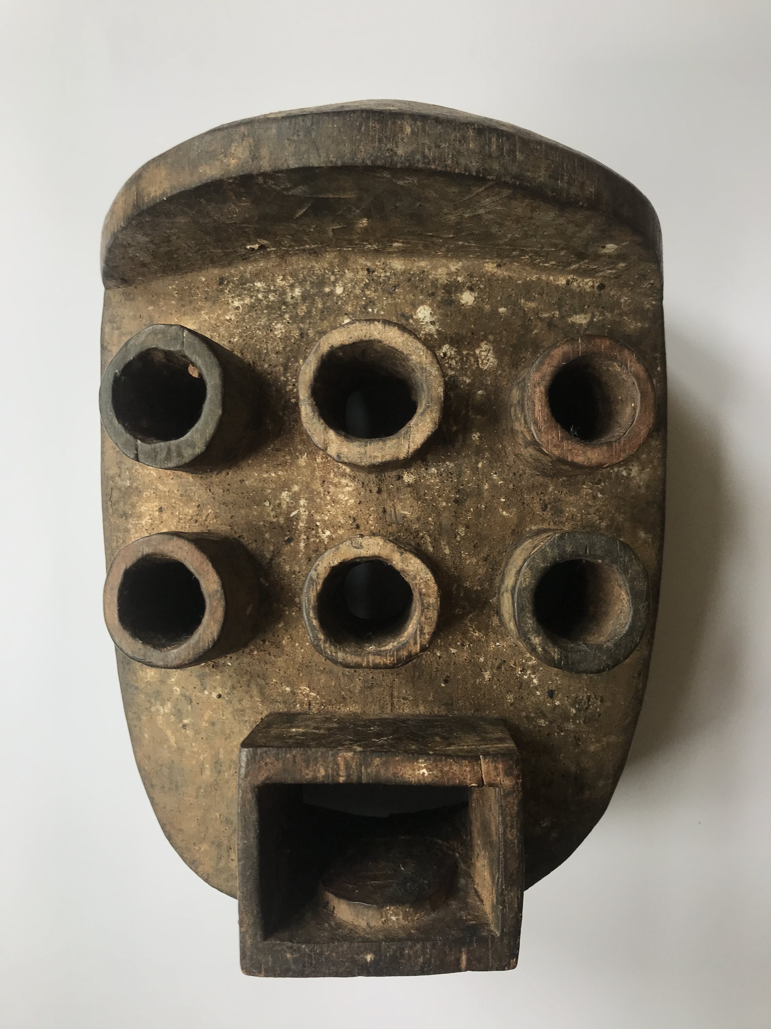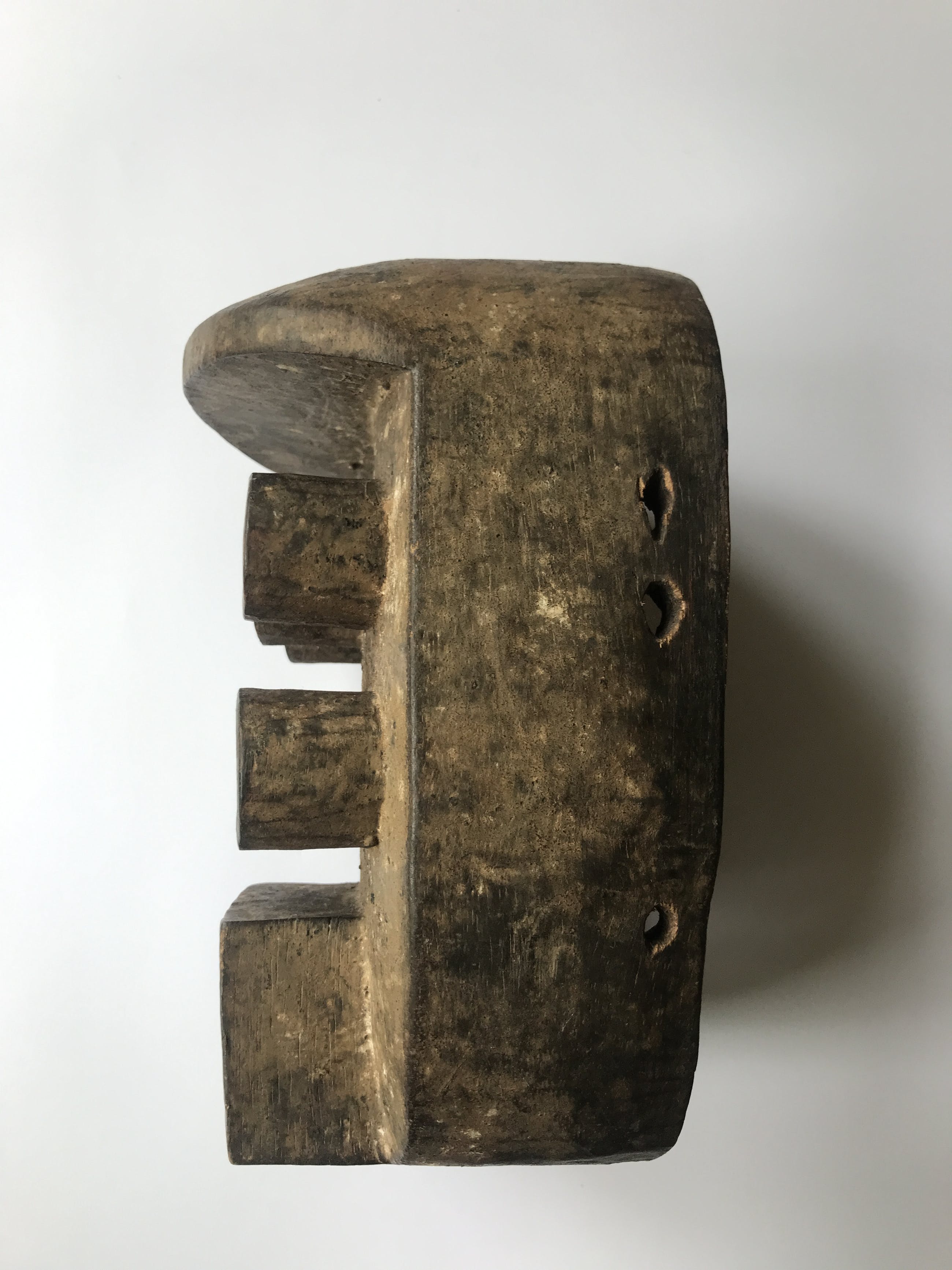 De Grebo zijn te vinden aan de kust van Oost-Liberia en aangrenzende bosgebieden. Het meest kenmerkende van hun platte oorlogsmaskers zijn de meerdere rijen buisvormige ogen. Dit masker is een type dat gedragen werd door de sjamaan van de stam. Het hout van dit masker heeft een prachtige, patine. De leeftijd van dit masker is een inschatting.