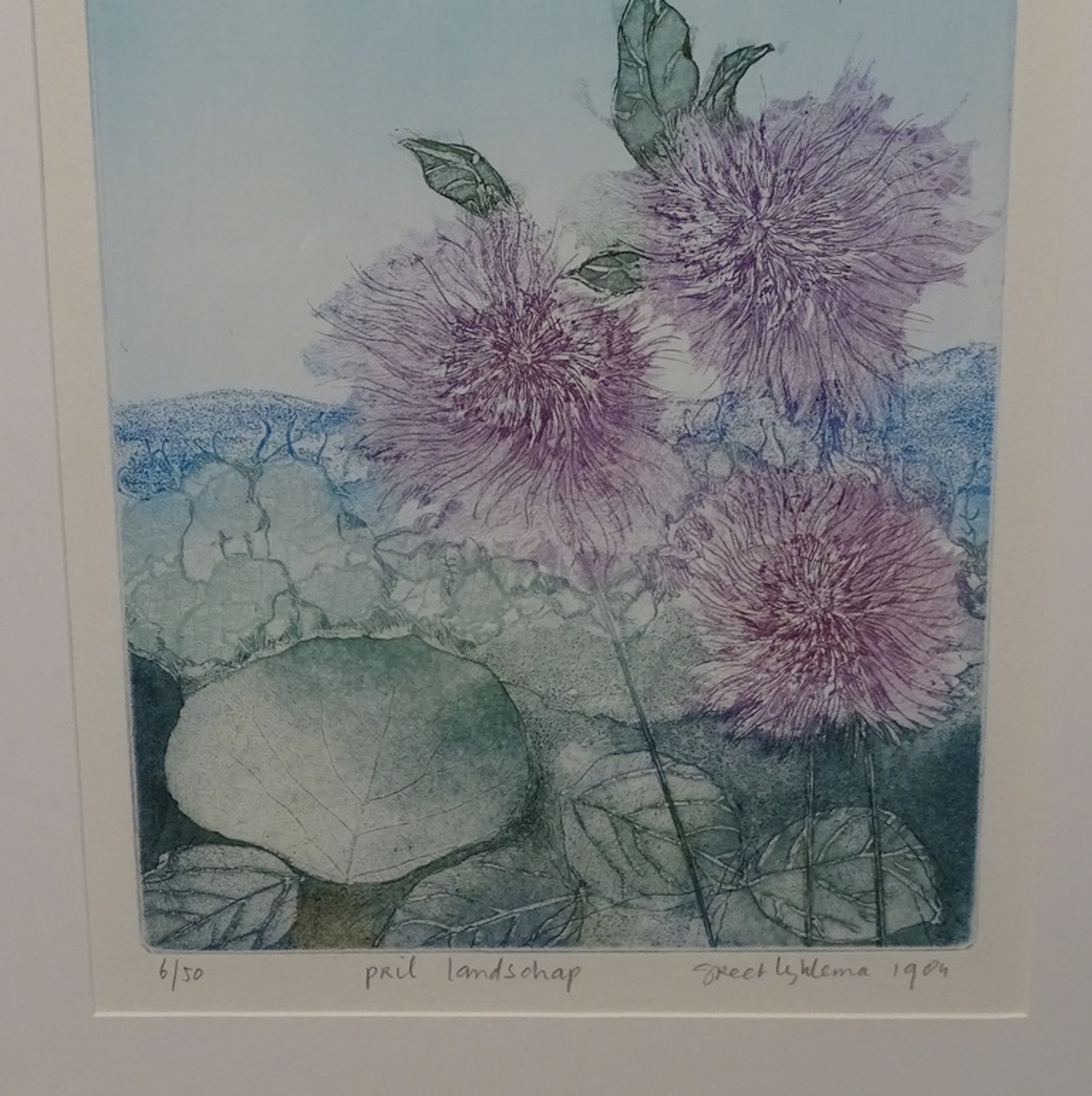 Twee mooie etsen, met potlood gesigneerd. Uitstekend naast/onder elkaar op te hangen. Op het internet is veel informatie over de kunstenares te vinden.