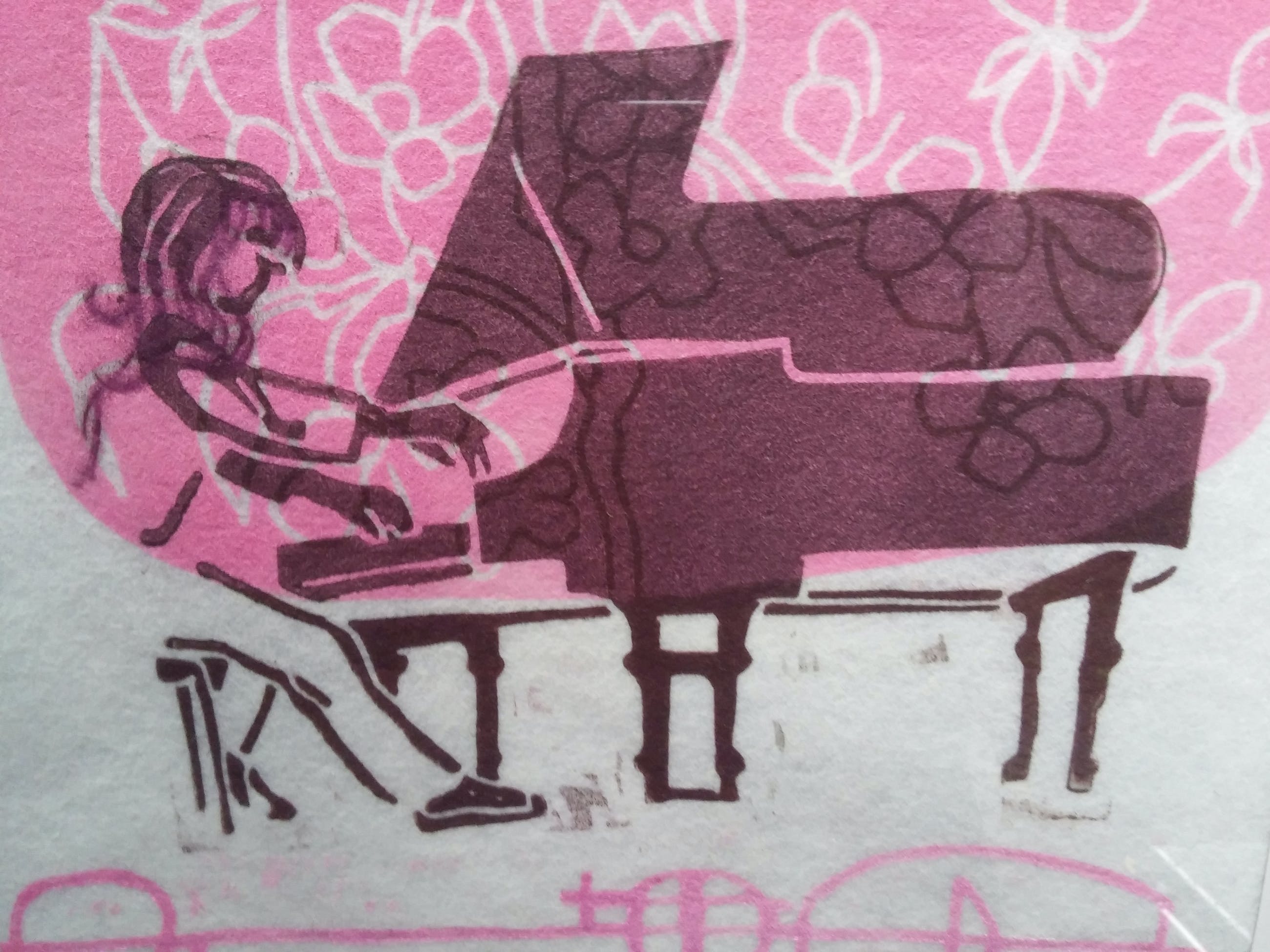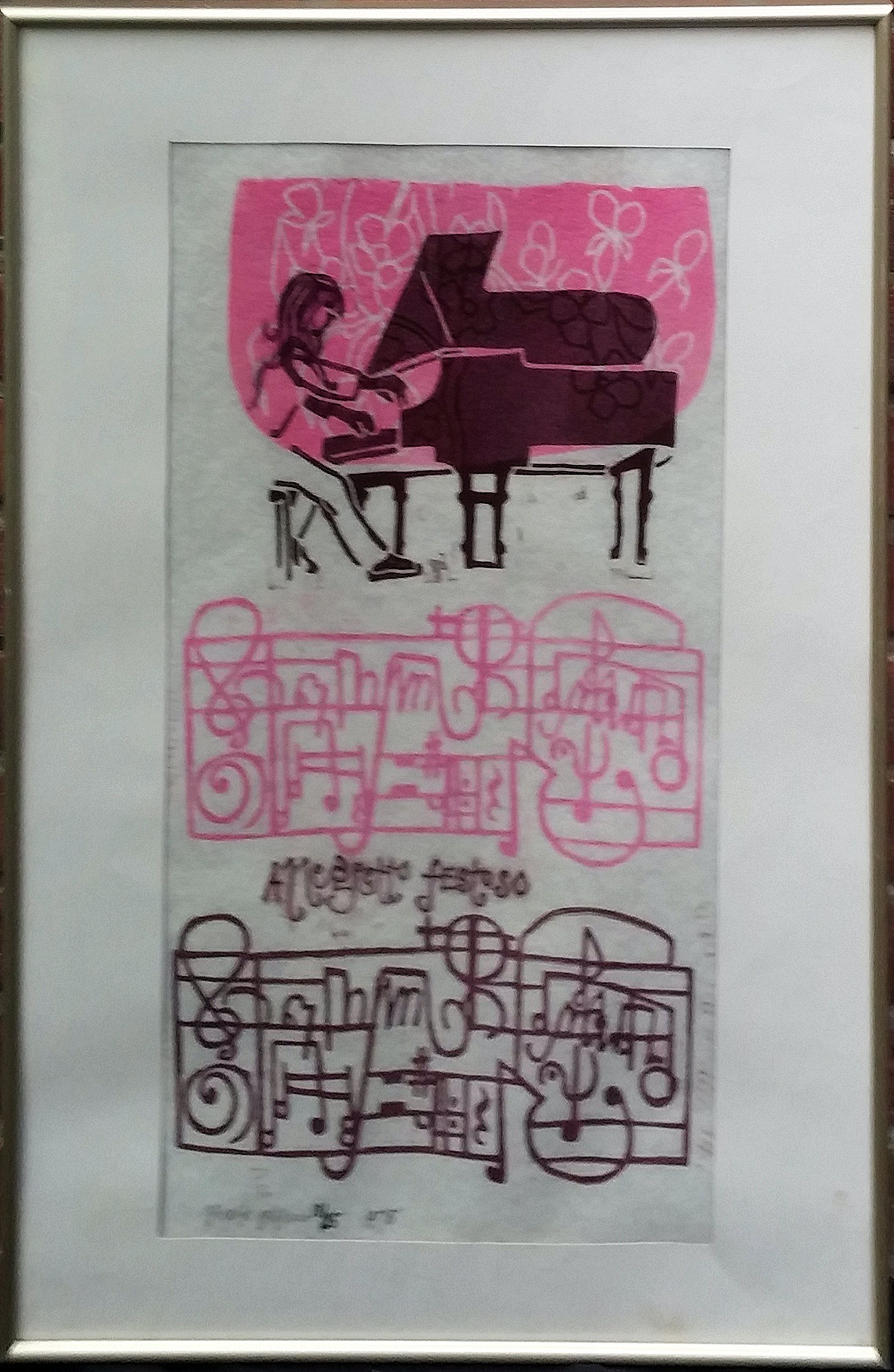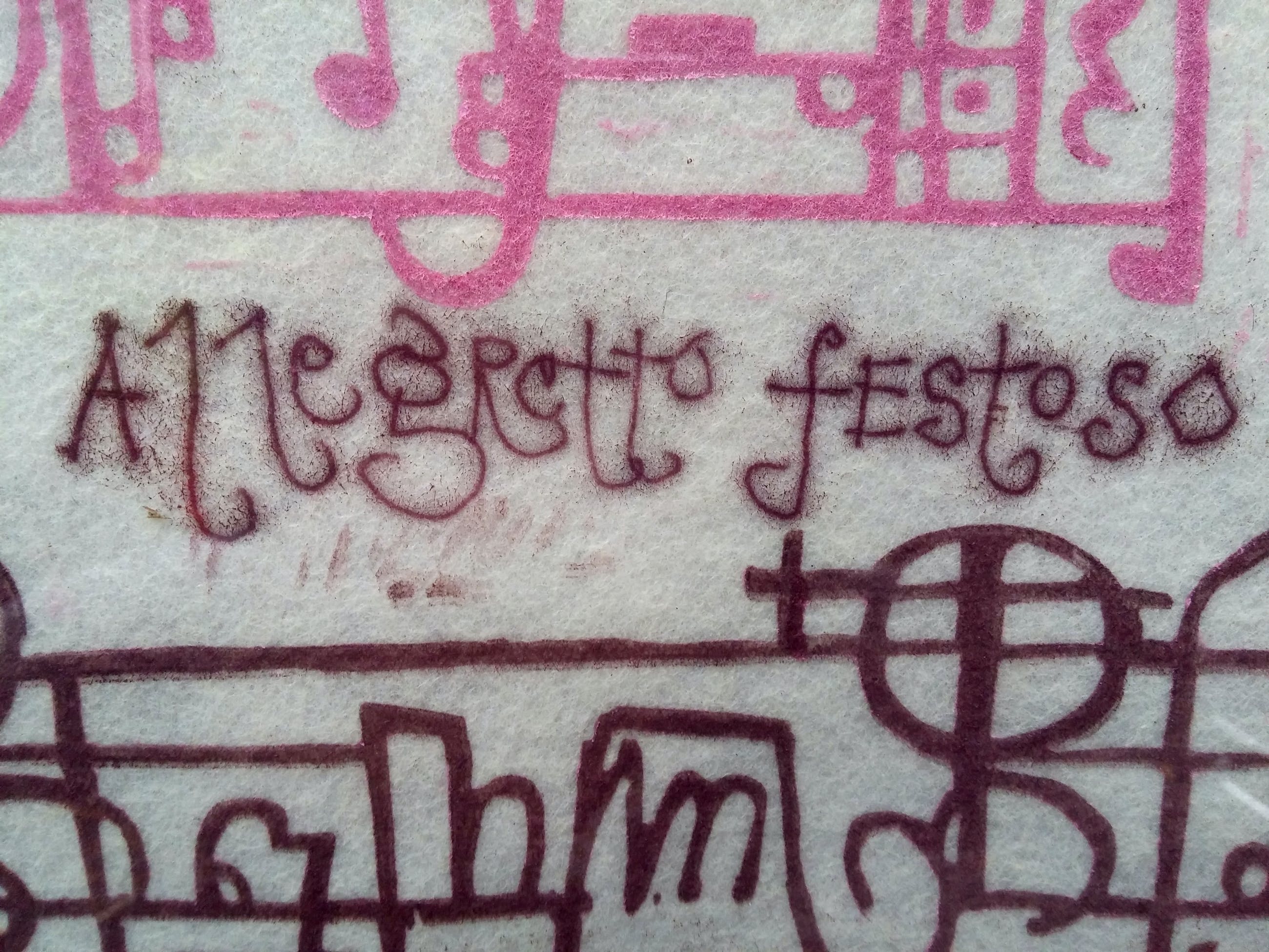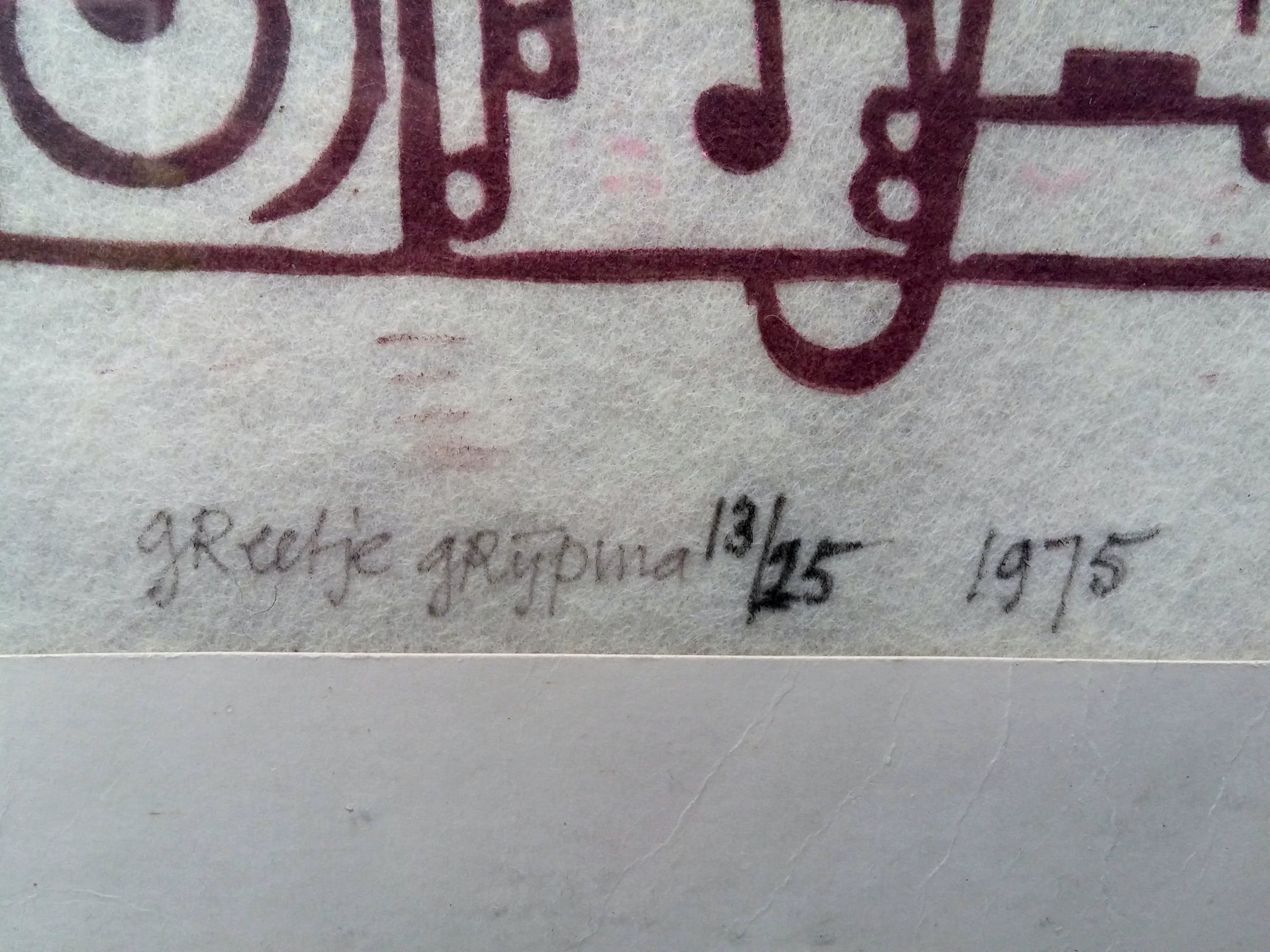 Allegretto Festoso - Lino op vilt - 1975 van Greetje Grijpma