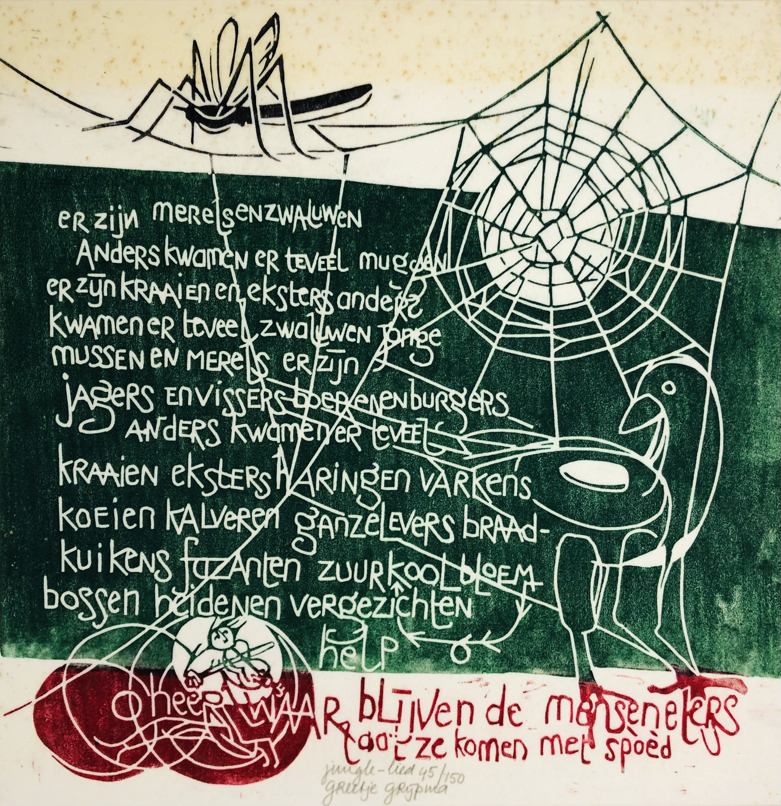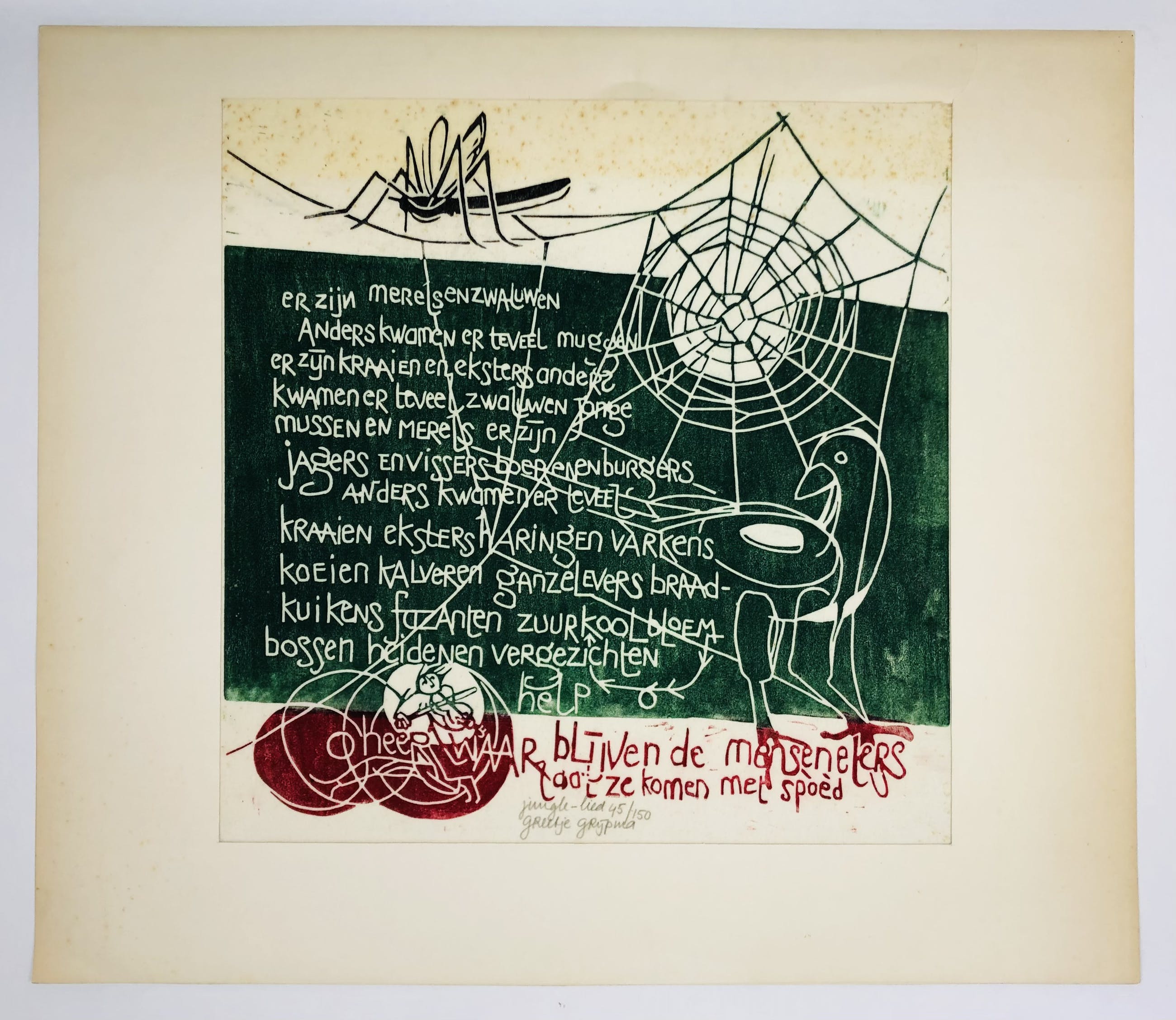 Fraai grafische werk van Greetje Grijpma (1931). Gesigneerd door de kunstenaar.