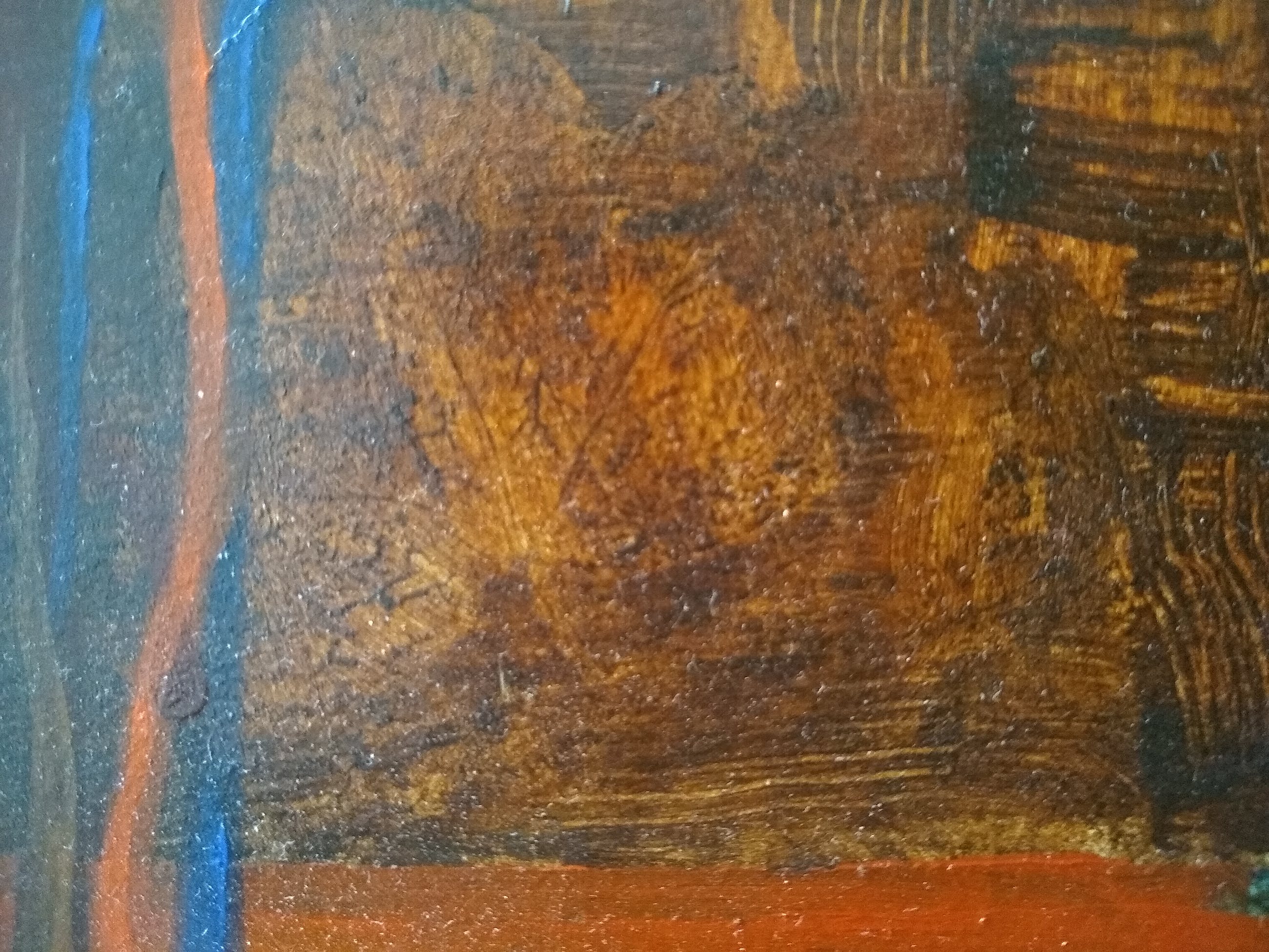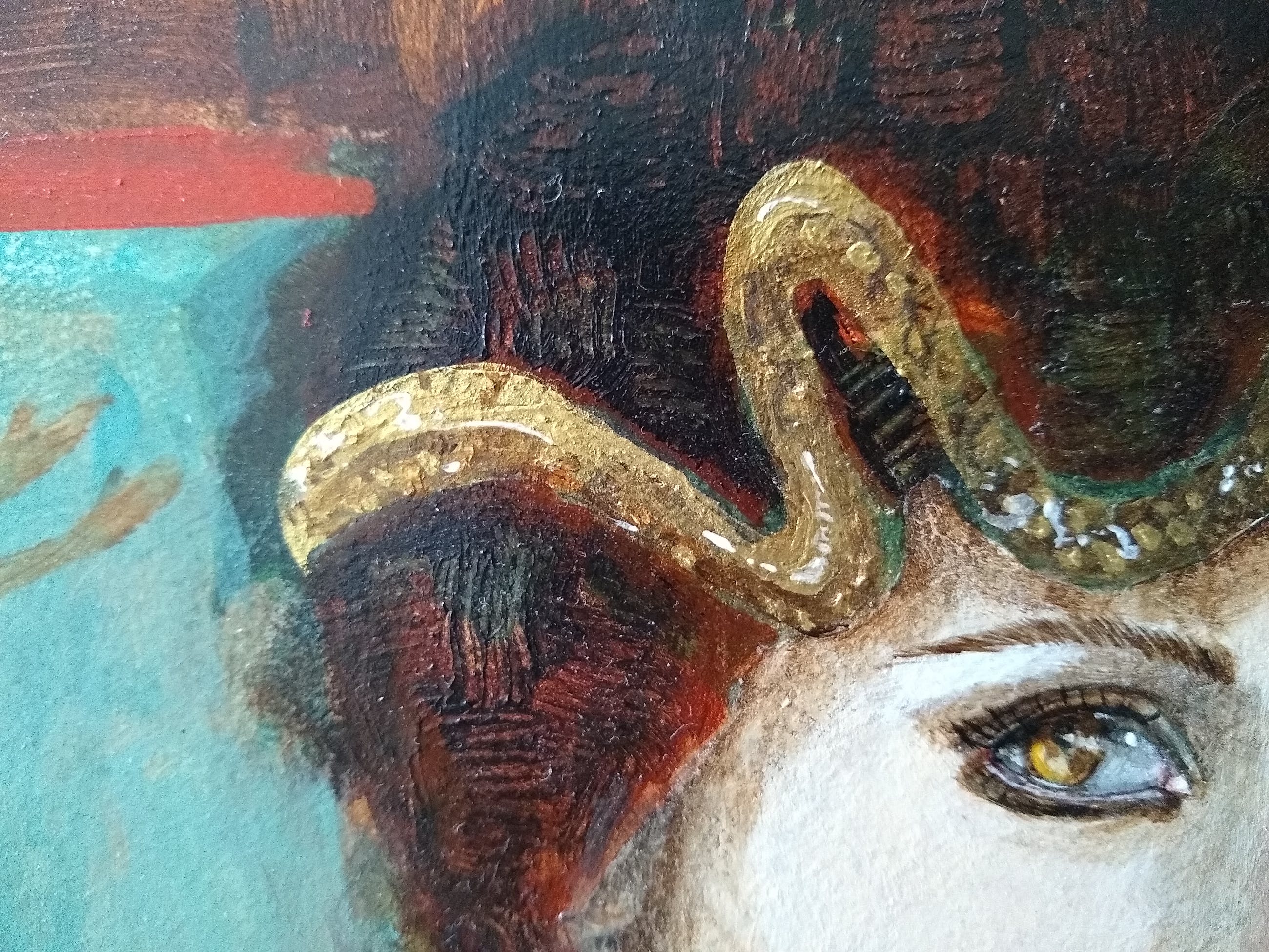 Fijn geschilderd werk. Olieverf en bladgoud op paneel. Het schilderij en de lijst zijn in perfecte staat.