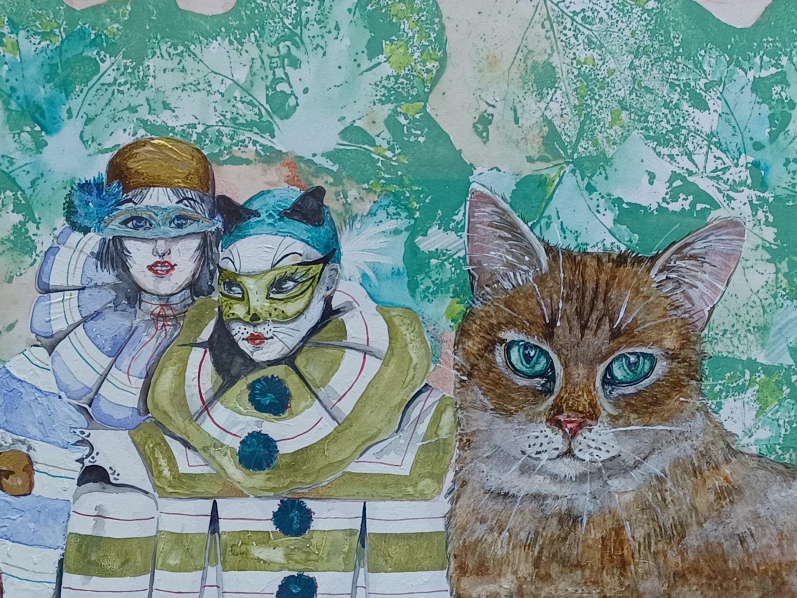 Japan: De mystieke kleurrijke geisha's, als bloemen met witte gezichten,sprookjesachtige verschijningen in het Kaboeki-theater zijn voor mij een belangrijke en poetische inspiratiebron. In het verleden heeft Japan heel wat Europese kunstenaars verleid tot schitterende werken, bijvoorbeeld het late hartstochtelijke werk van Van Gogh, geinspireerd door de Japanse kleurhoutsneden. Direkt- of indirekt werden o.a Redon, Ensor, Munch en Klimt door de Japanse kunst geinspireerd. En zij, en de scenes uit het Kaboeki-theater met daarin de geisha's als exotische vogels, inspireerden mij weer.