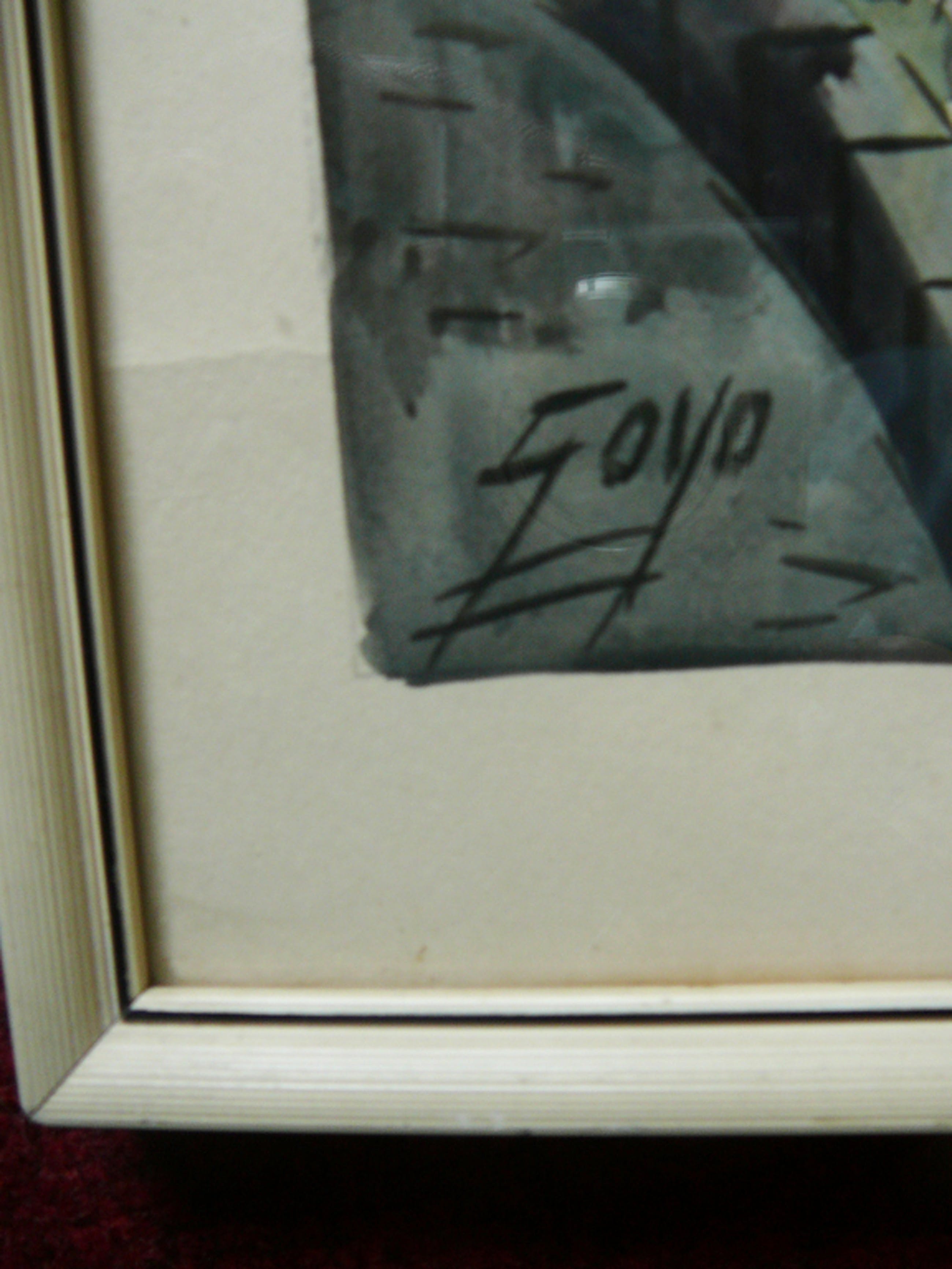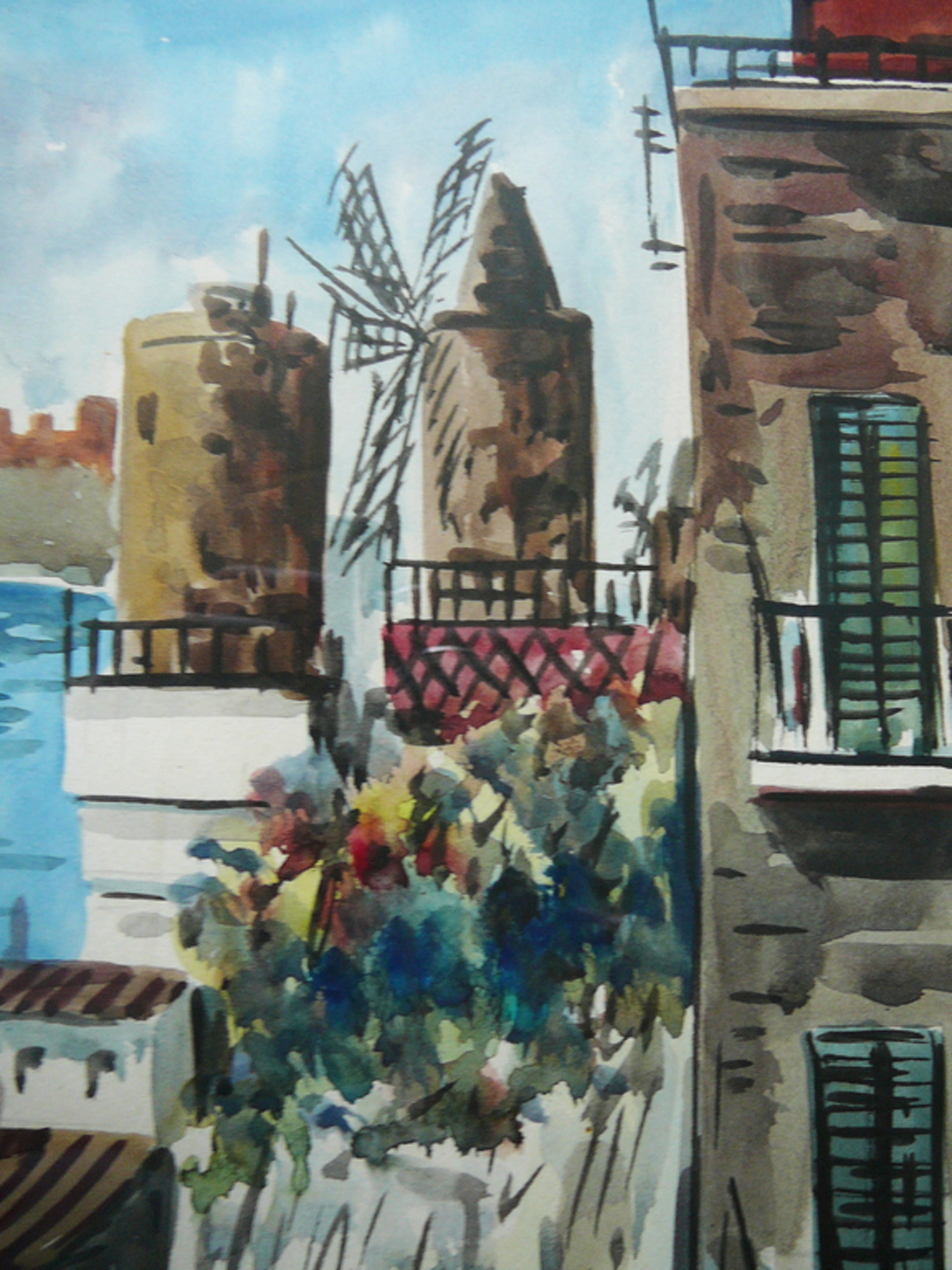 Formaat: 25 x 52 cm incl. eenvoudige lijst Techniek: aquarel Kunstenaar: Dominguez Goyo l.o. gesigneerd Creatie: 1980-1985 Conditie: goed, gelijst achter glas