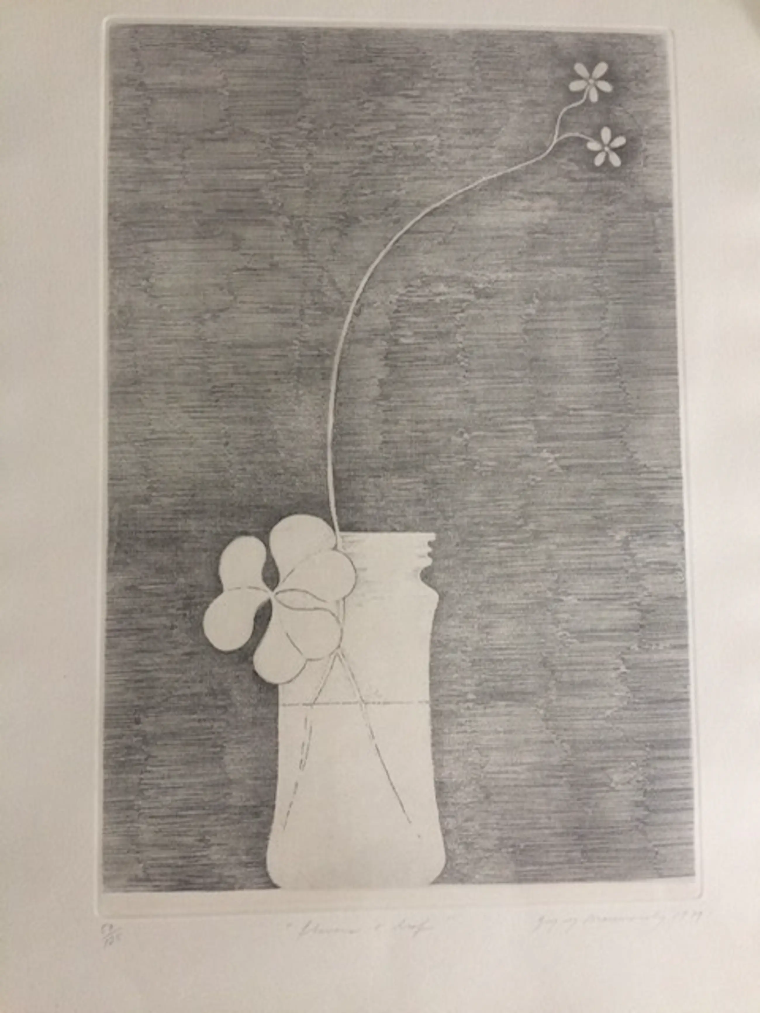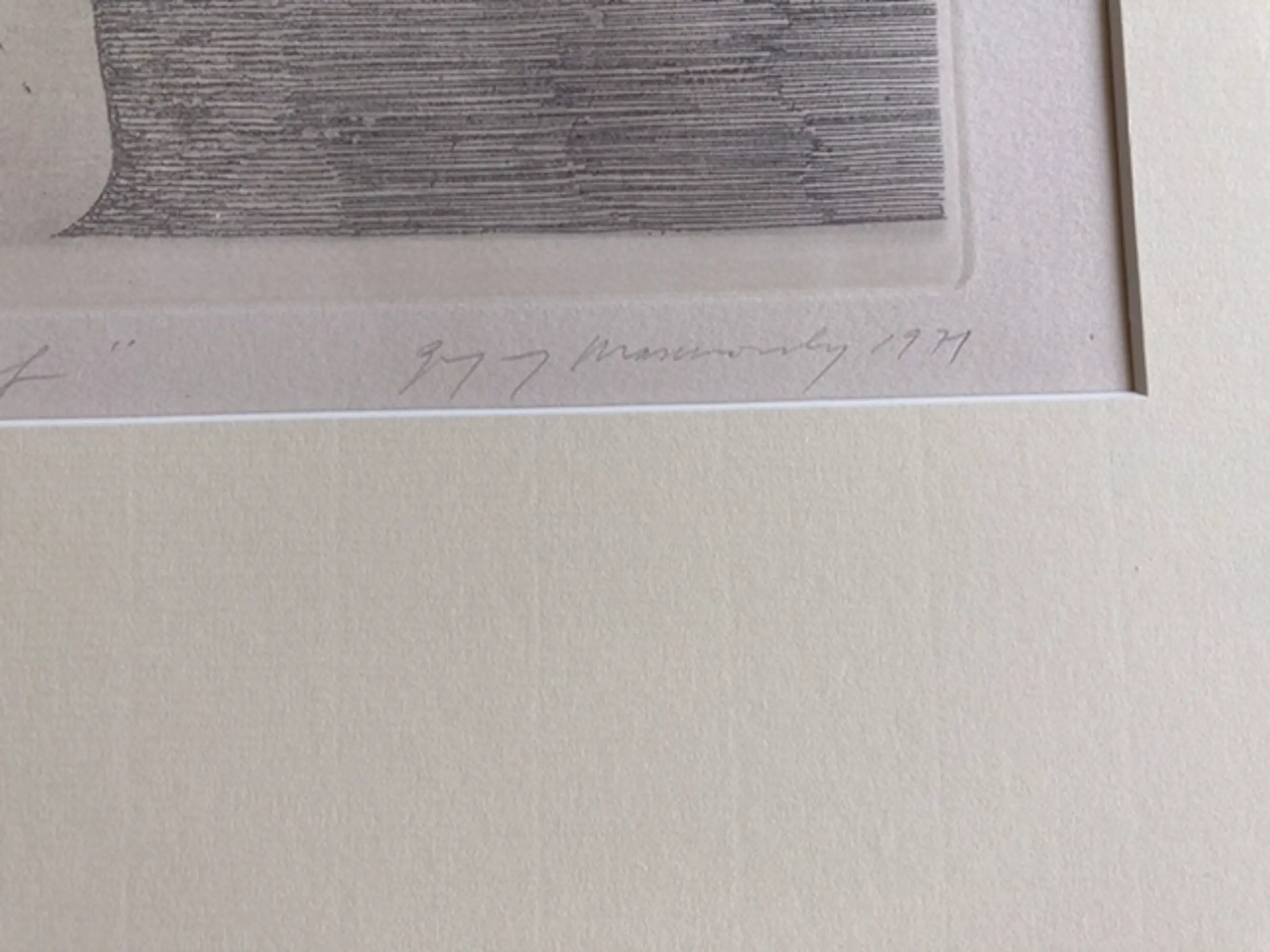 Een in genuanceerd grijs getekende ets. Zeer smaakvol van deze Amerikaanse kunstenaar.