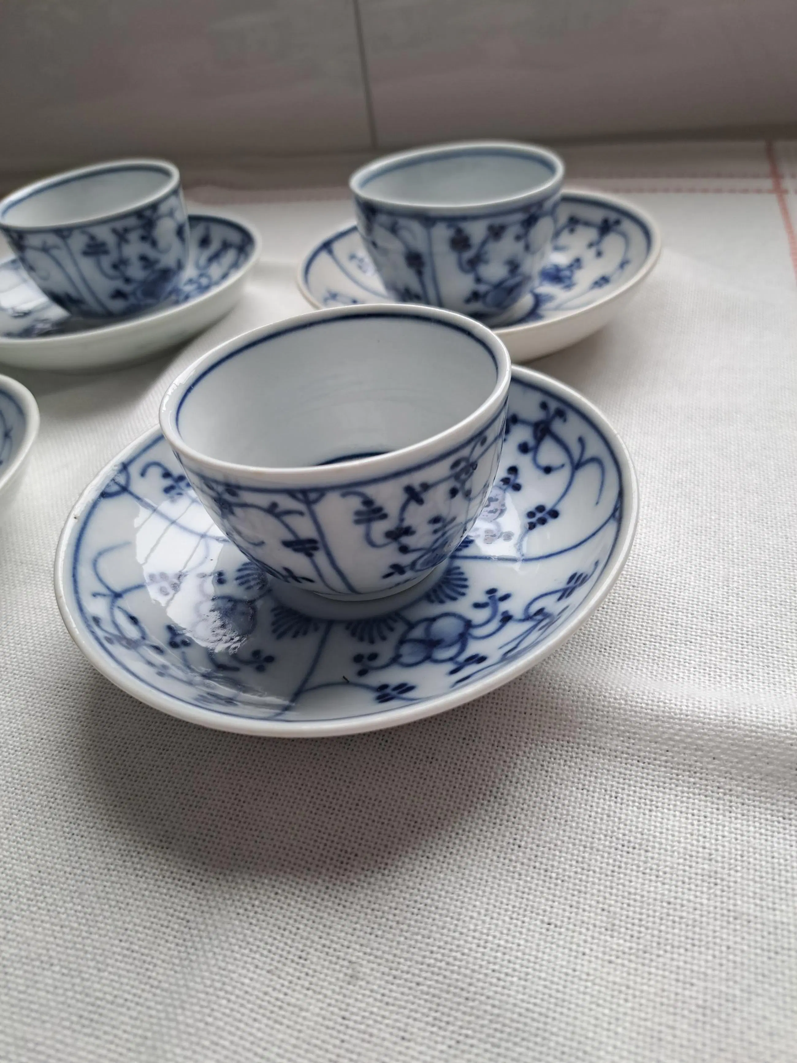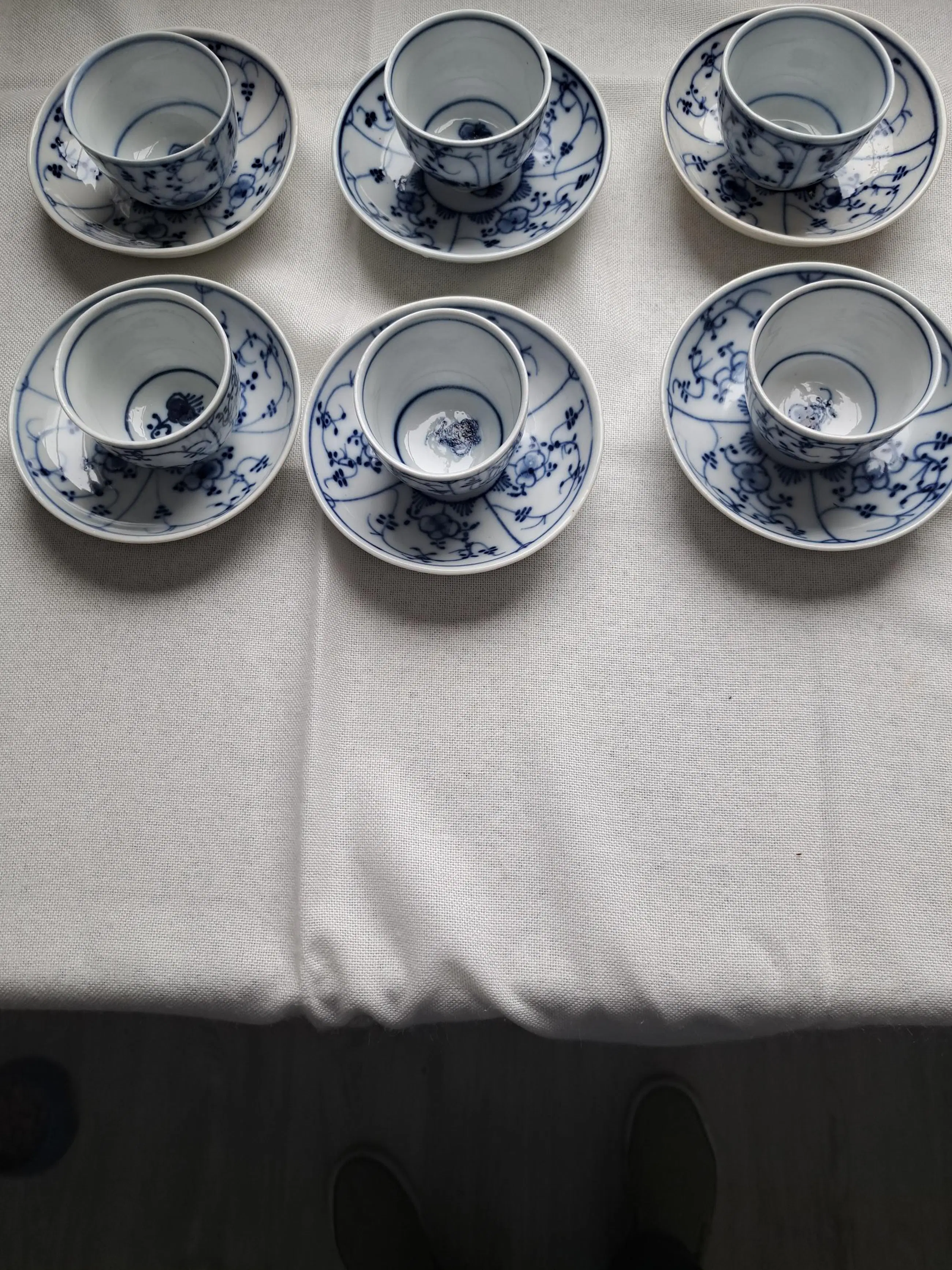 Uit nalatenschap van mijn in december 2024 op 97-jarige moeder bij wie dit serviesje altijd zorgvuldig achter slot en grendel stond. Het is mij bekend dat dit servies (afkomstig van mijn betovergrootmoeder van moeders zijde) in de 19e eeuw werd gebruikt als "begrafeniskopjes" waarin koffie werd geserveerd tijdens begrafenissen.