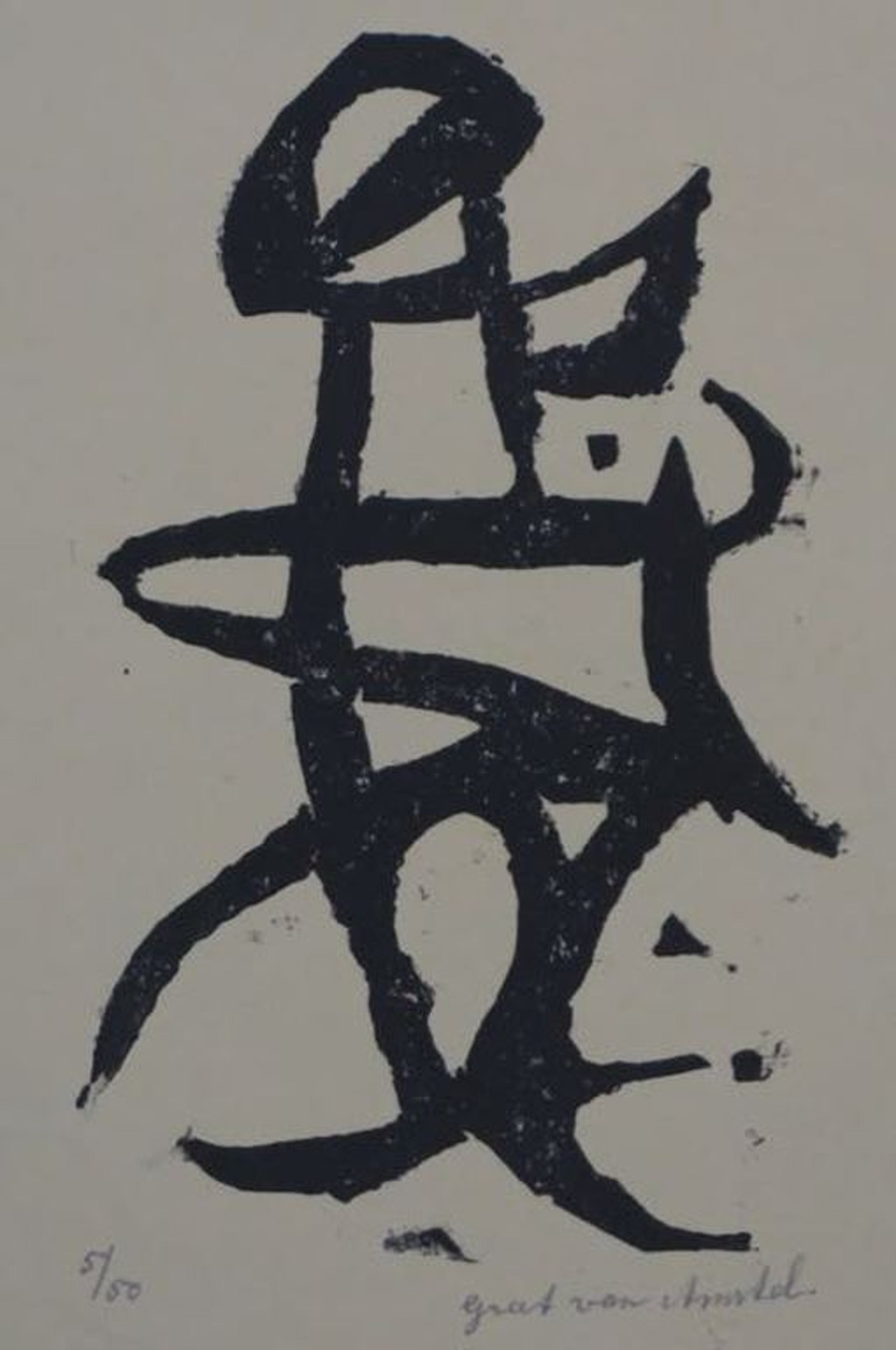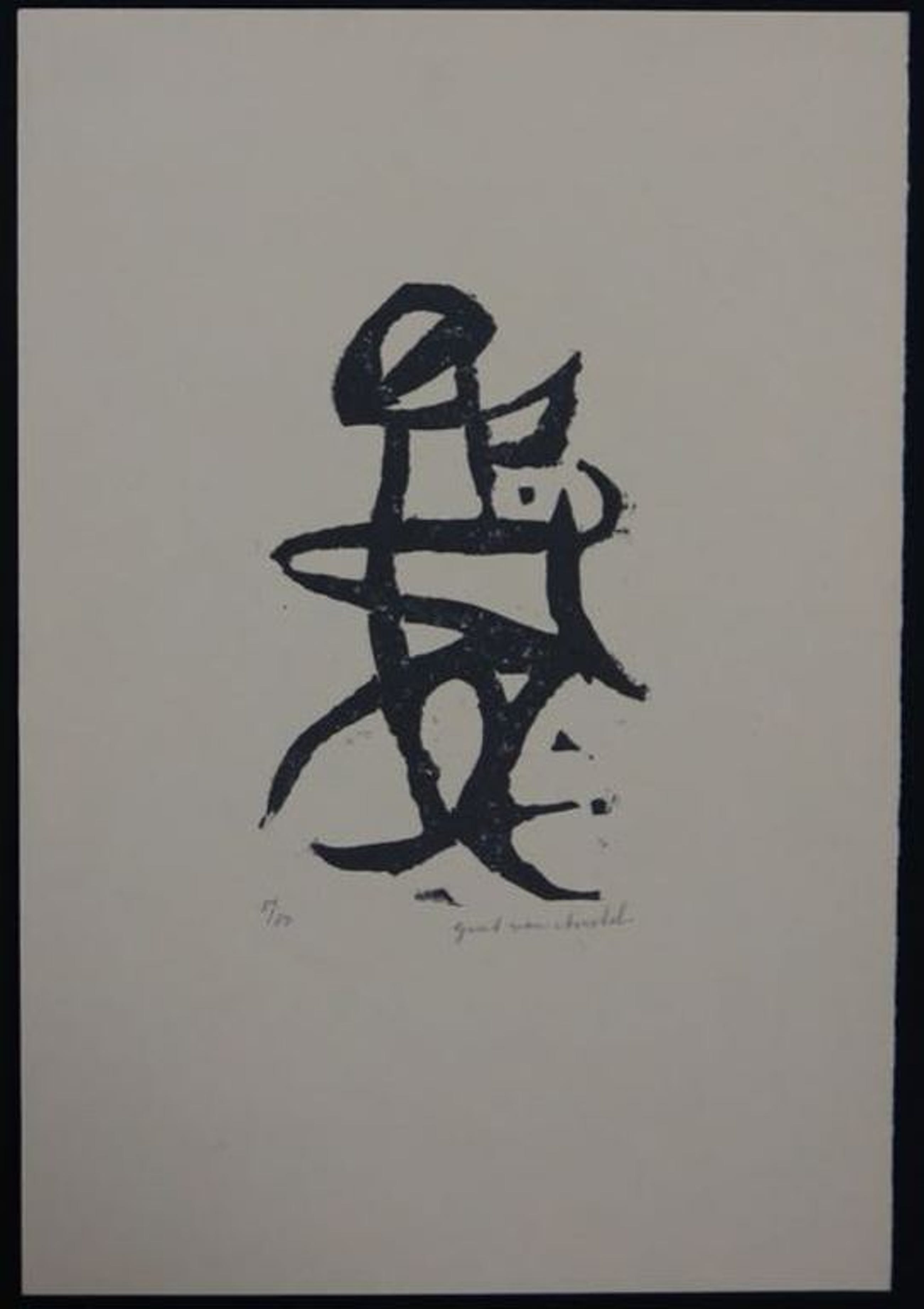 Kleine litho, uitgegeven door kunstenaarsgroep Creatie in 1952. Creatie was een Vereniging tot bevordering van absolute kunst, opgericht in 1950. Actieve leden van deze groep waren o.a. Eugéne Brands, Armando, Anton Rooskens, Wim Strijbosch en Herman van der Heide.