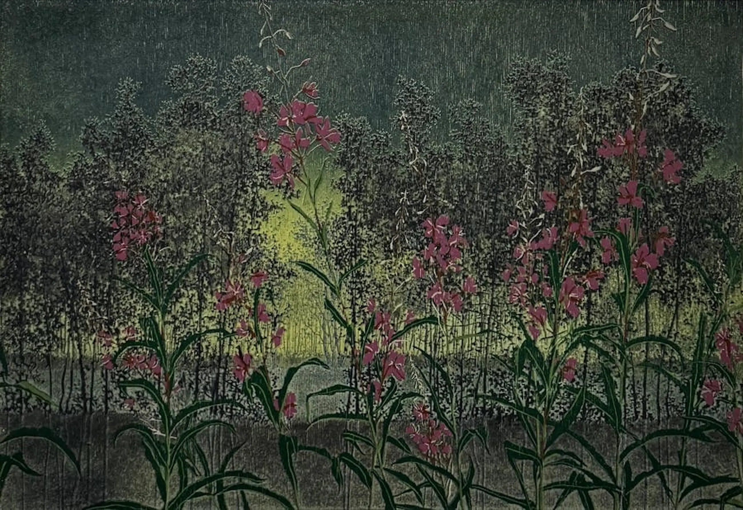Grietje Postma - Houtsnede: veld met bloemen - 1994
