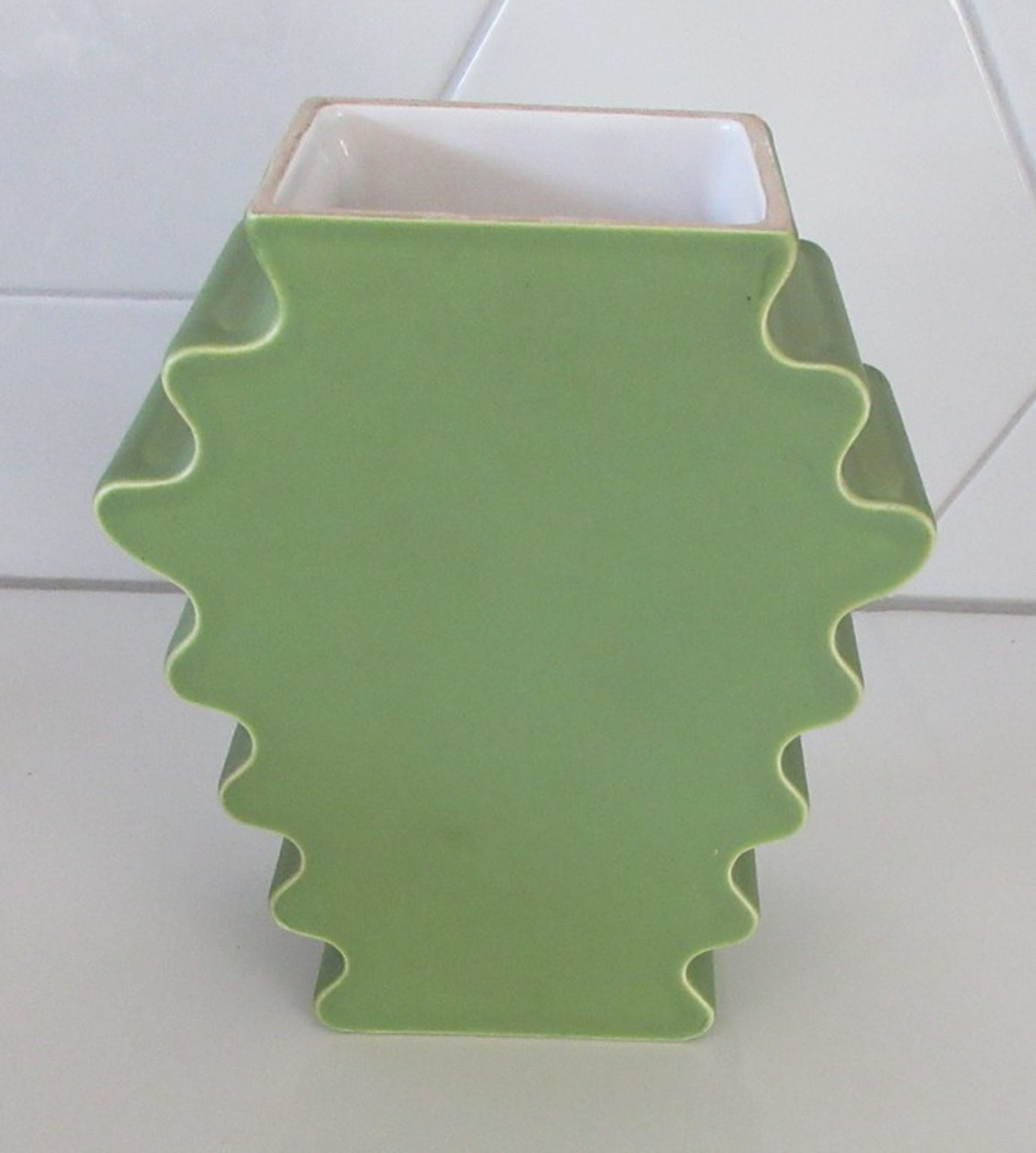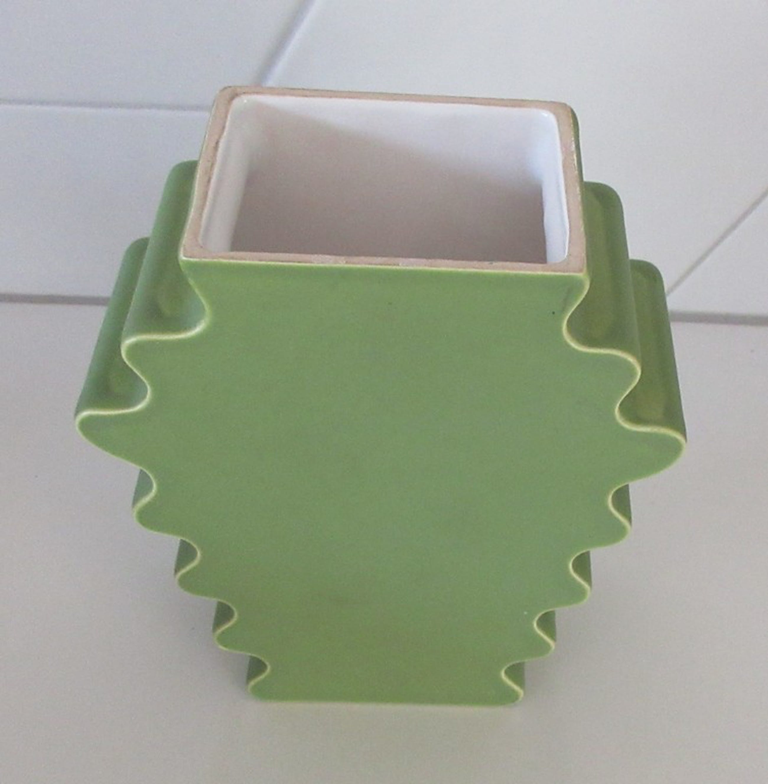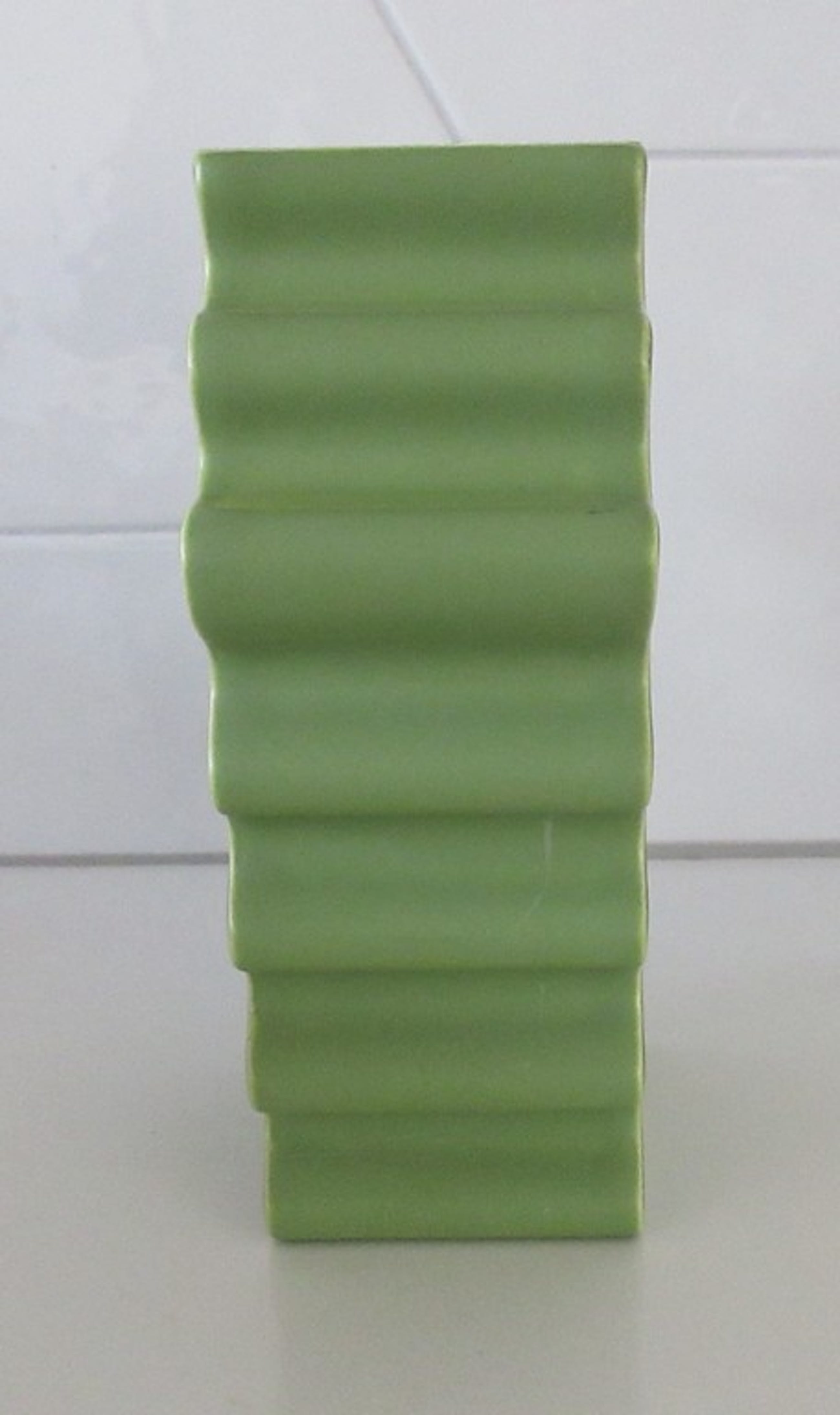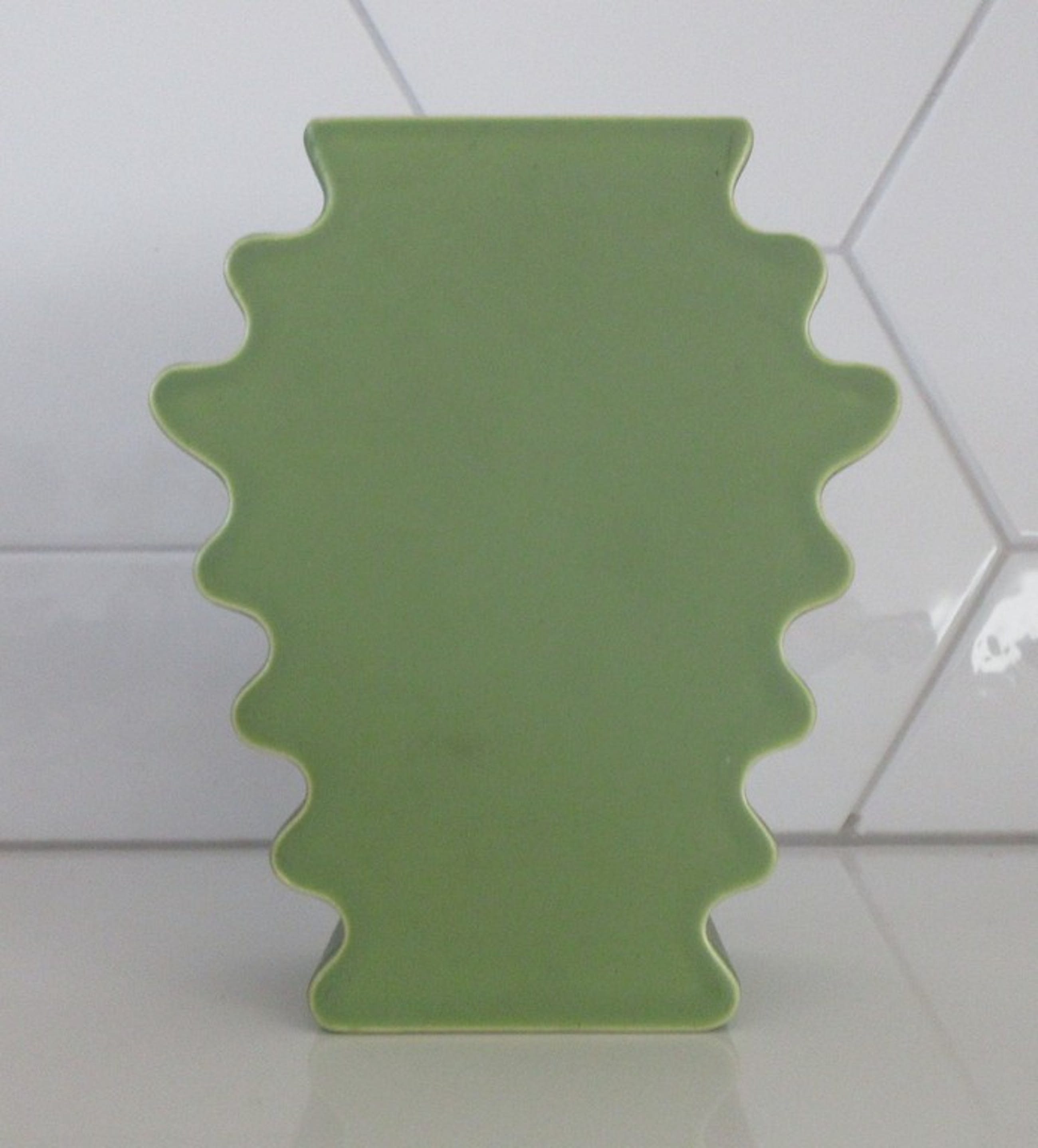 Groen aardewerken design vaas in de vorm van een boom of struik ontw. onbekend. Bijzonder licht groen platelen vaas in de vorm van een boom. Niet gemerkt, maar mogelijk uitgevoerd bij een fabriek zoals Schoonhoven, Goedewaagen of de Porceleyne Fles. In prima onbeschadigde conditie.