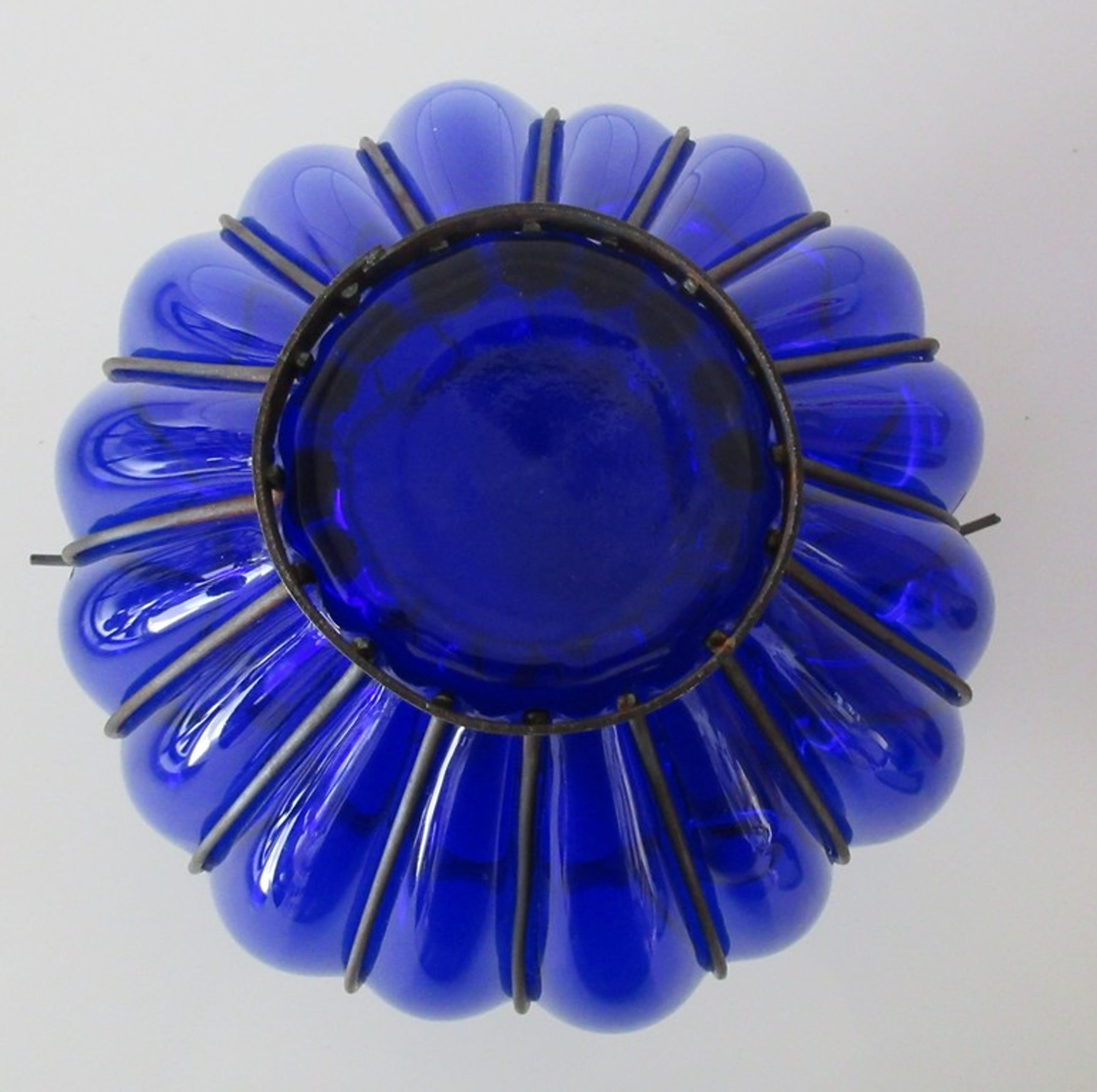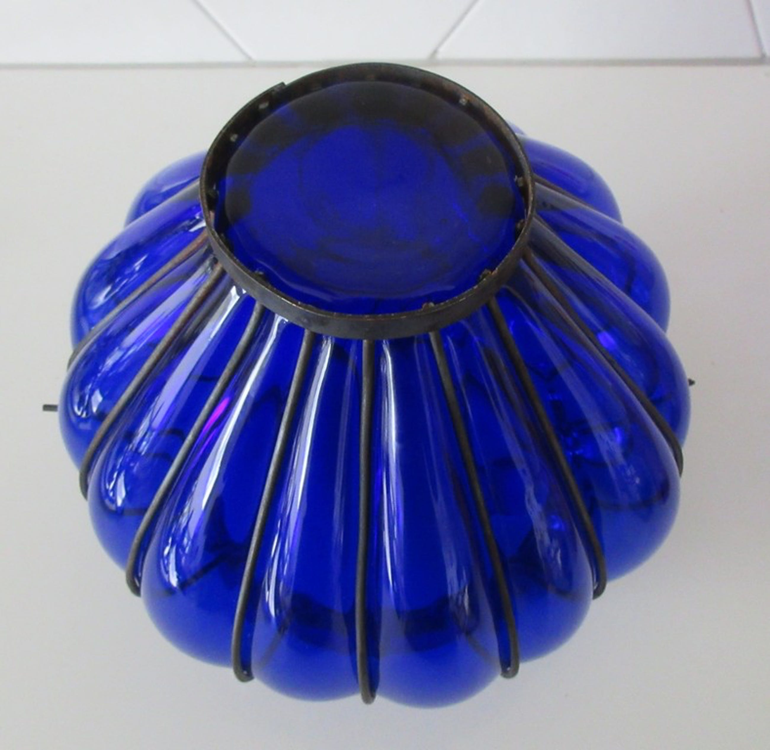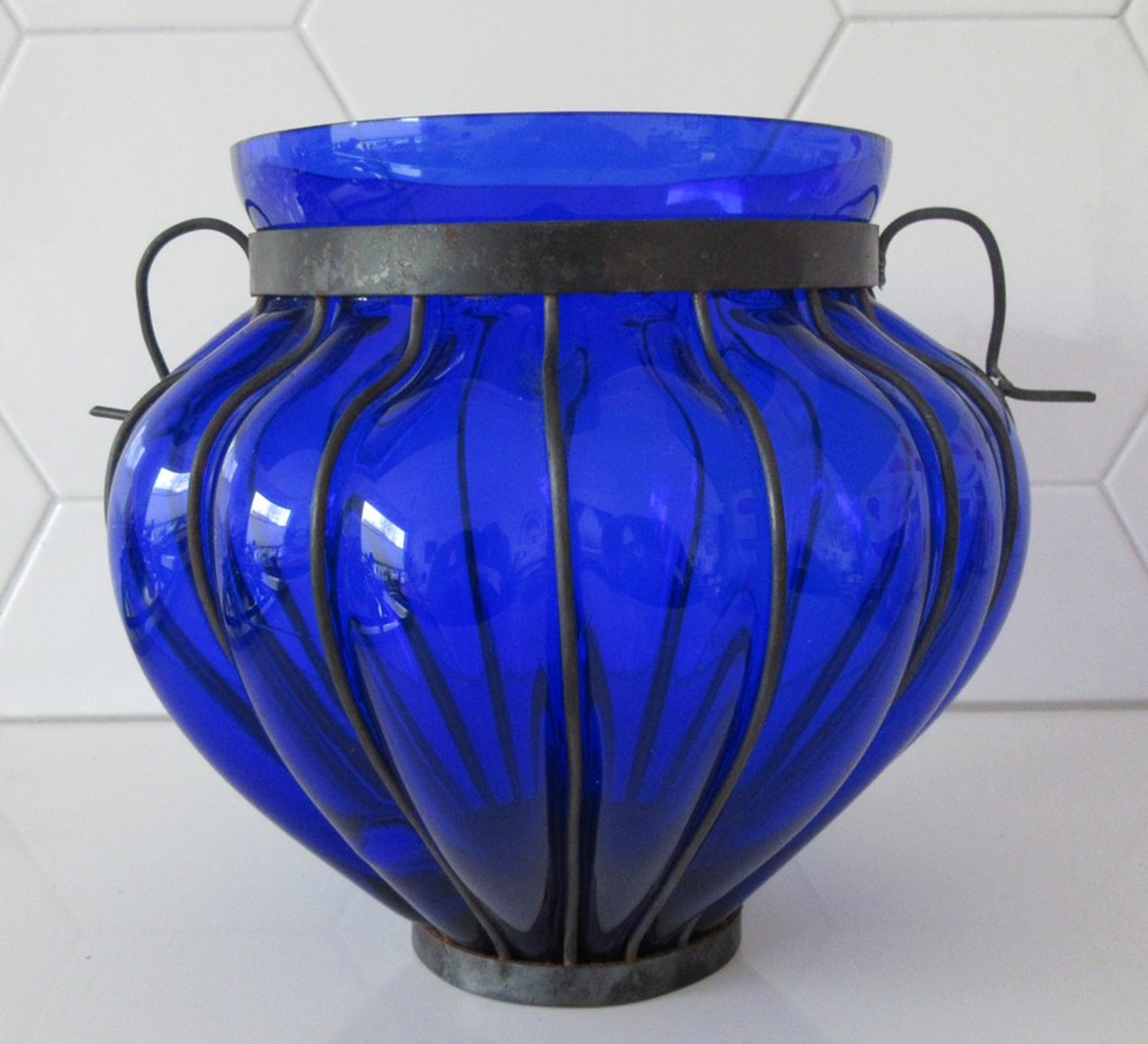 Prachtige cobalt blauwe Murano glazen amfoor vaas in pompoenvorm met metalen beslag. In prima onbeschadigde conditie, geen aanslag of vuil. Niet gemerkt.