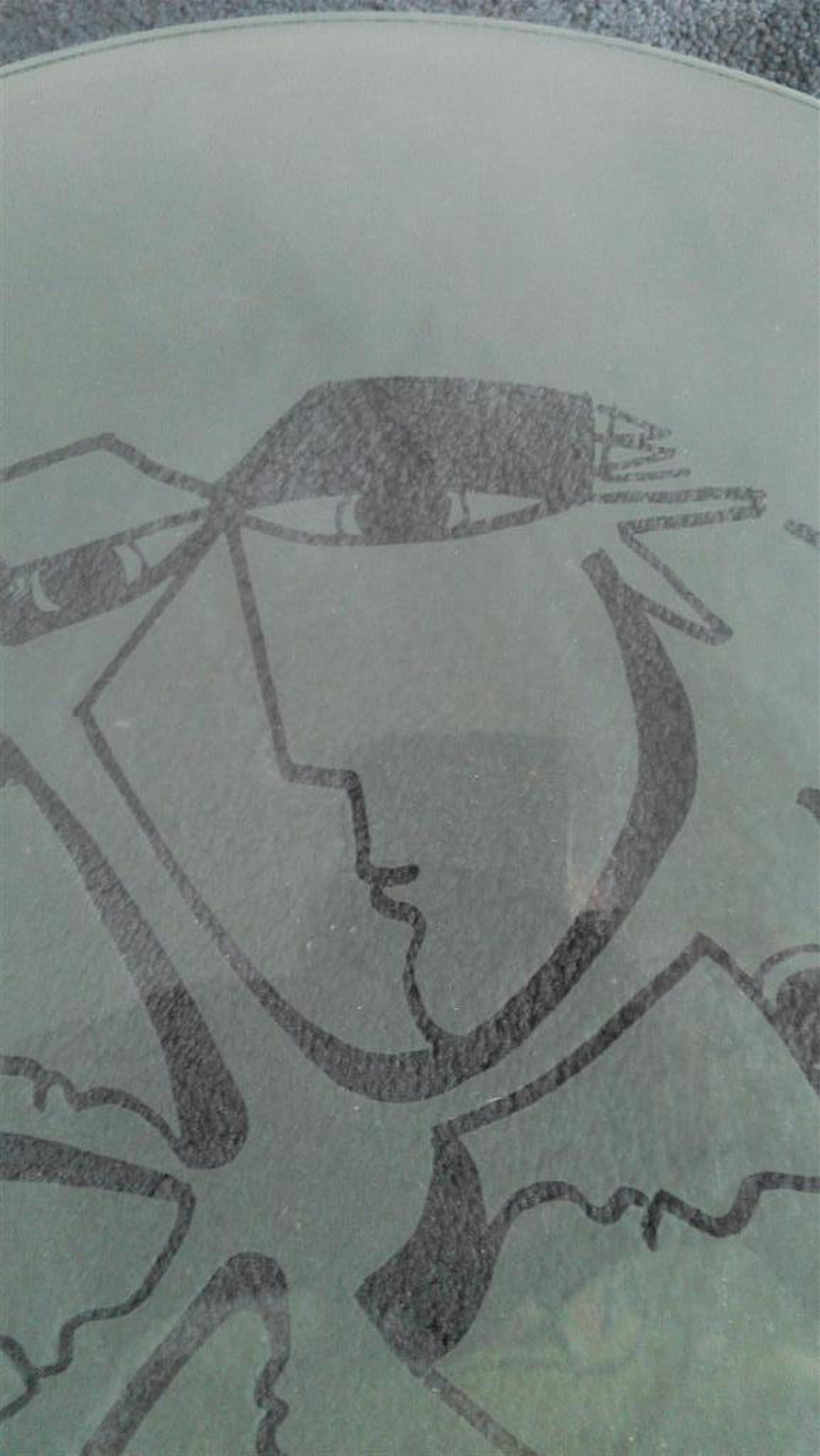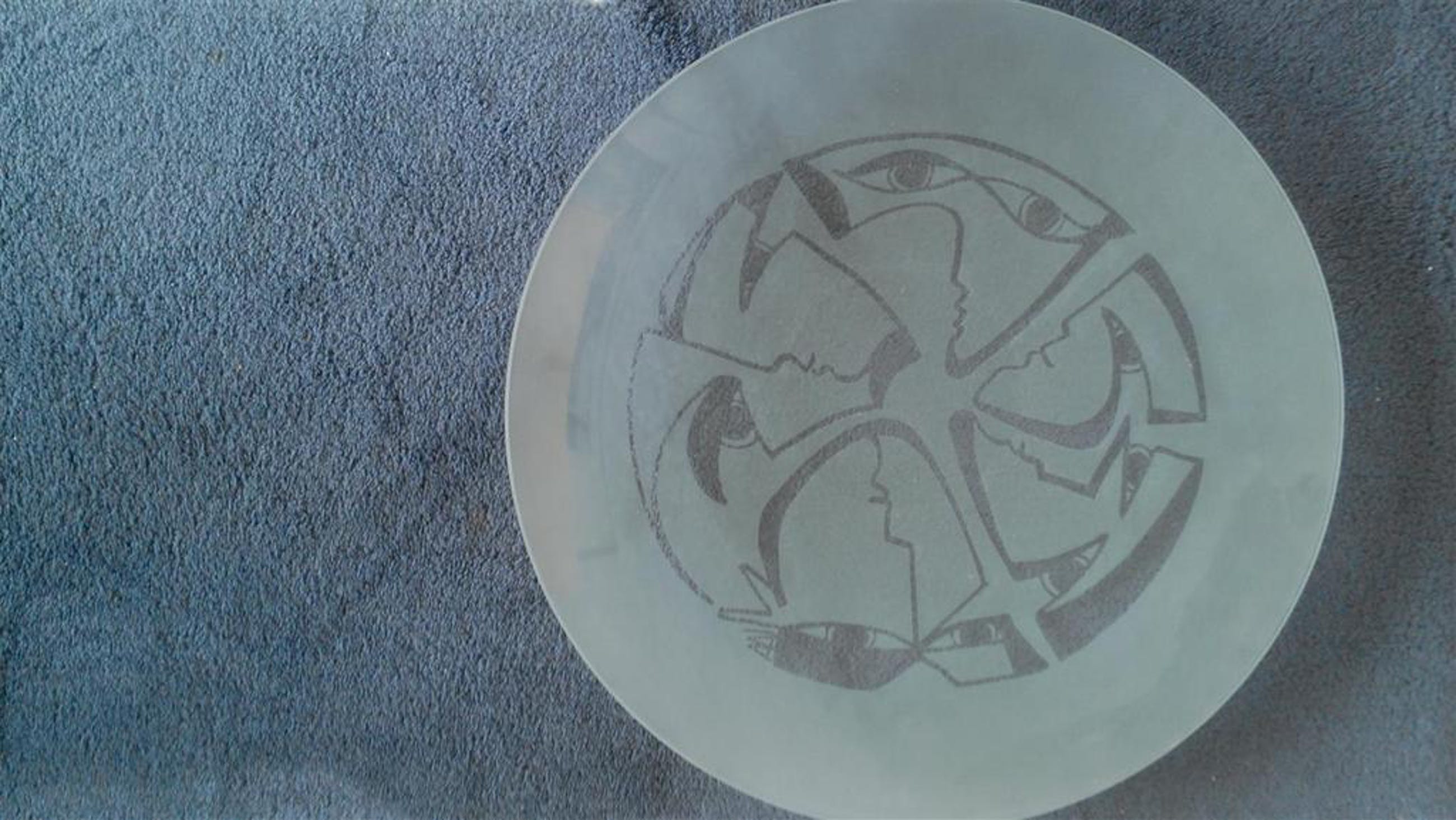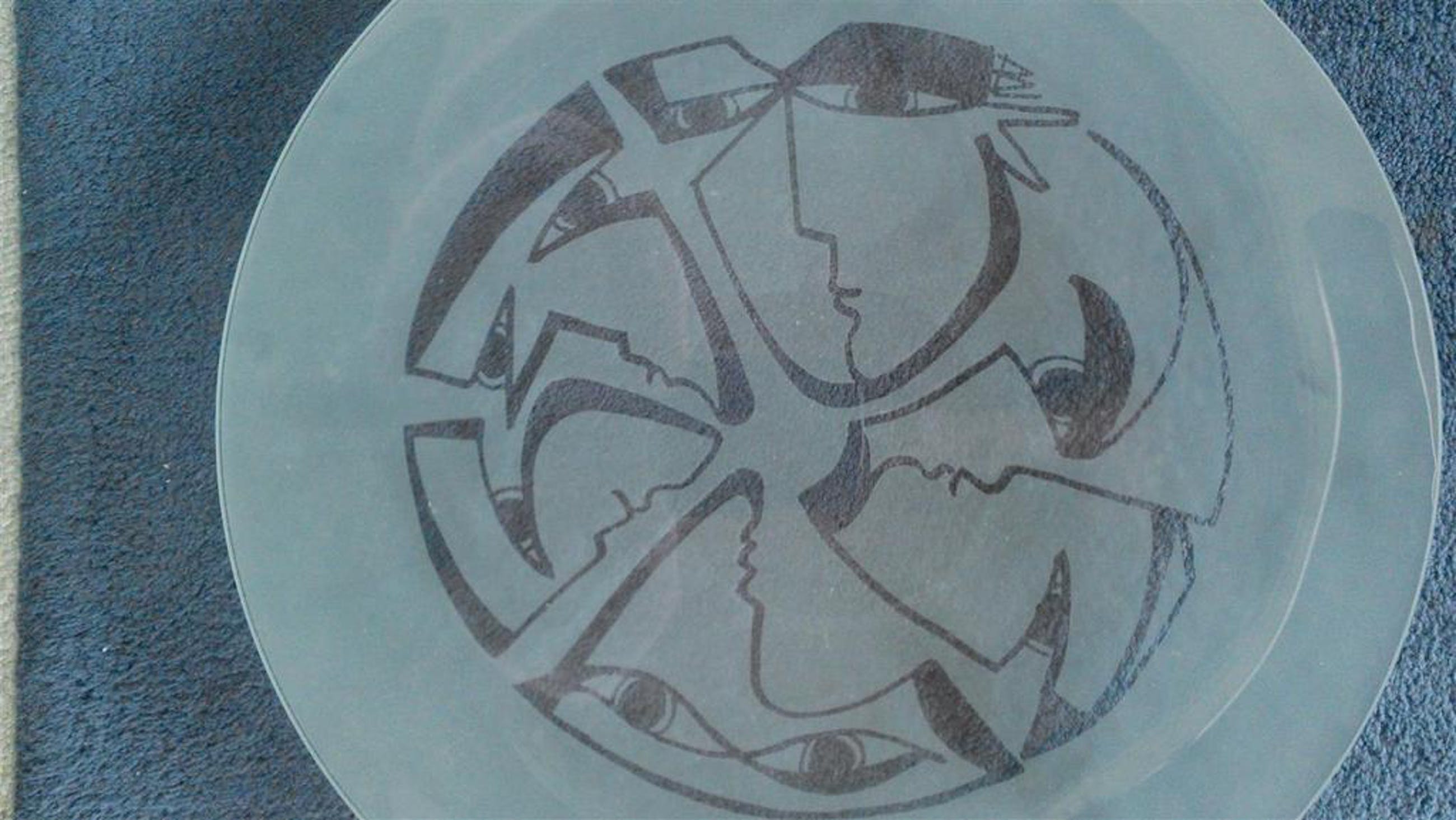 Mooie schaal met gezichten rondom Gesigneerd LB zie foto