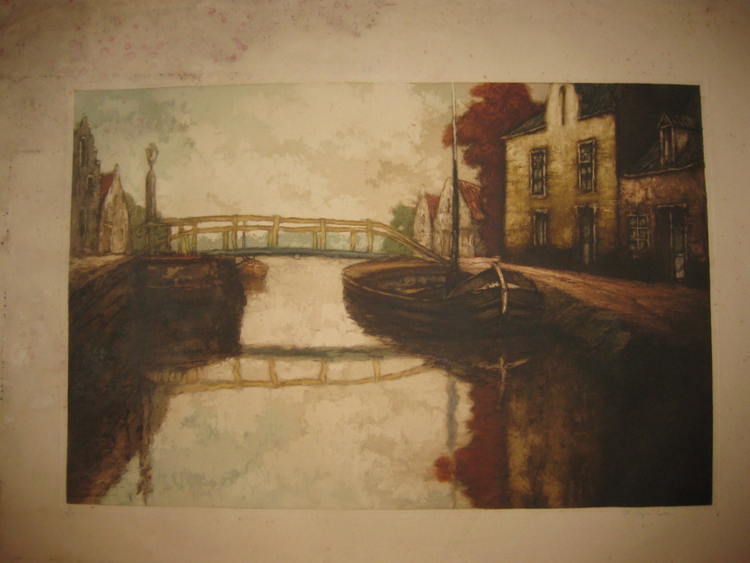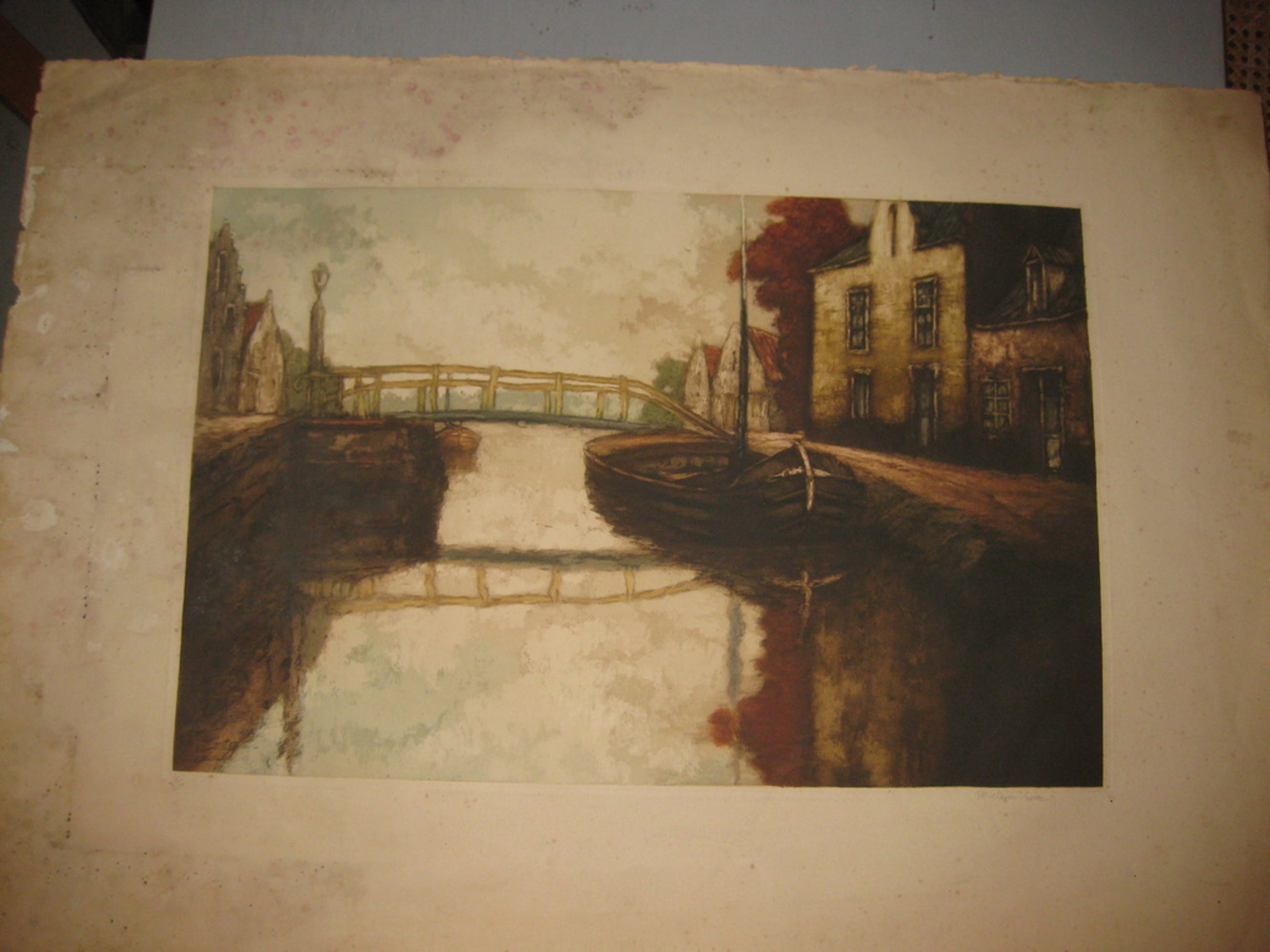 Voor schilderijen en ander ingelijst werk geldt het volgende: bij verzending kan ik geen garanties geven op het heel overkomen van het glas van een lijst, wel zal ik mijn uiterste best doen het werk zo goed mogeljik te verpakken. Kleine gebreken aan de lijst in de vorm van stootplekjes en krassen vermeld ik niet.
