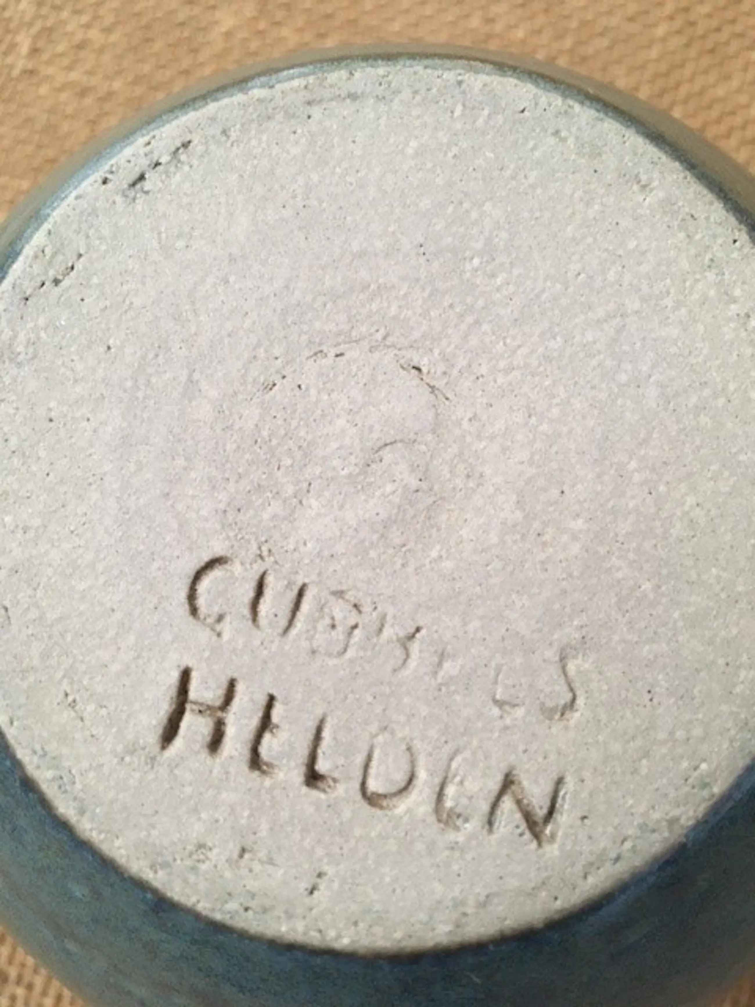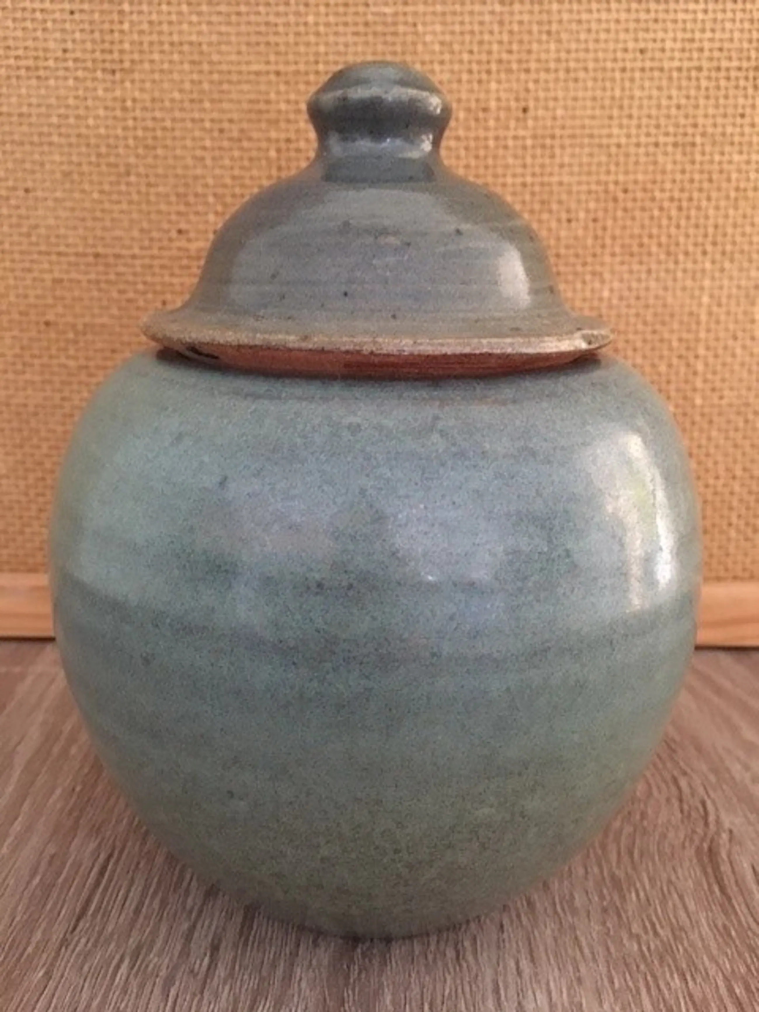 mooie pot gemaakt van dikke zandklei en Groen/turkoois geglazuurd gemerkt met Gubbels Helden een Ned aardewerk fabriek Limburg.