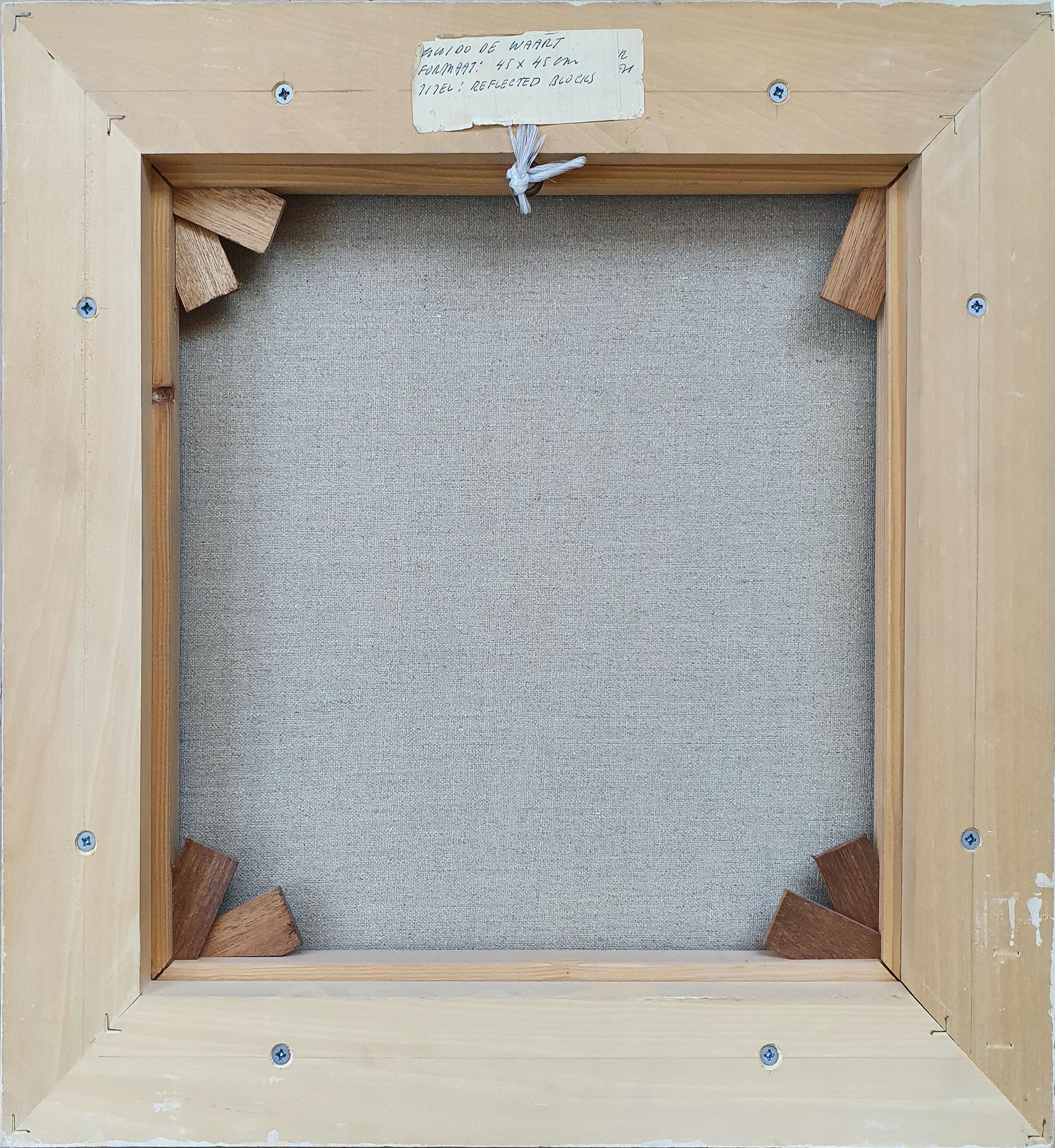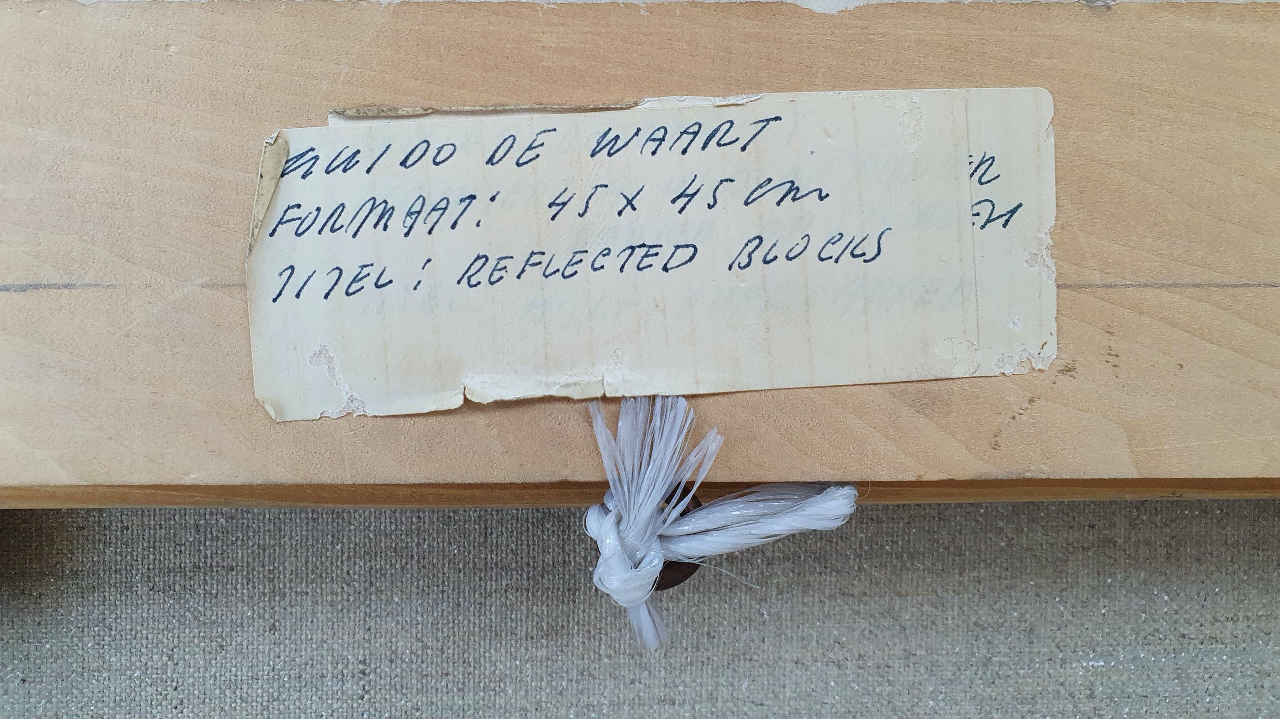 Schilderij van Guido de Waart met de titel: 'Reflected blocks' uit 1990 . Het werk is rechtsonder met de hand gesigneerd door de kunstenaar.