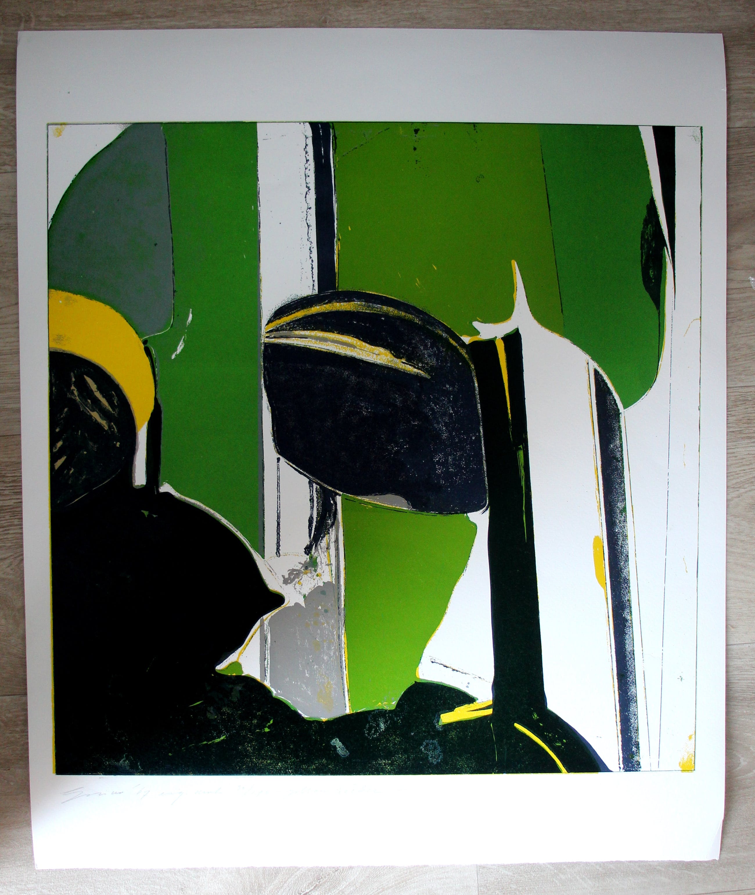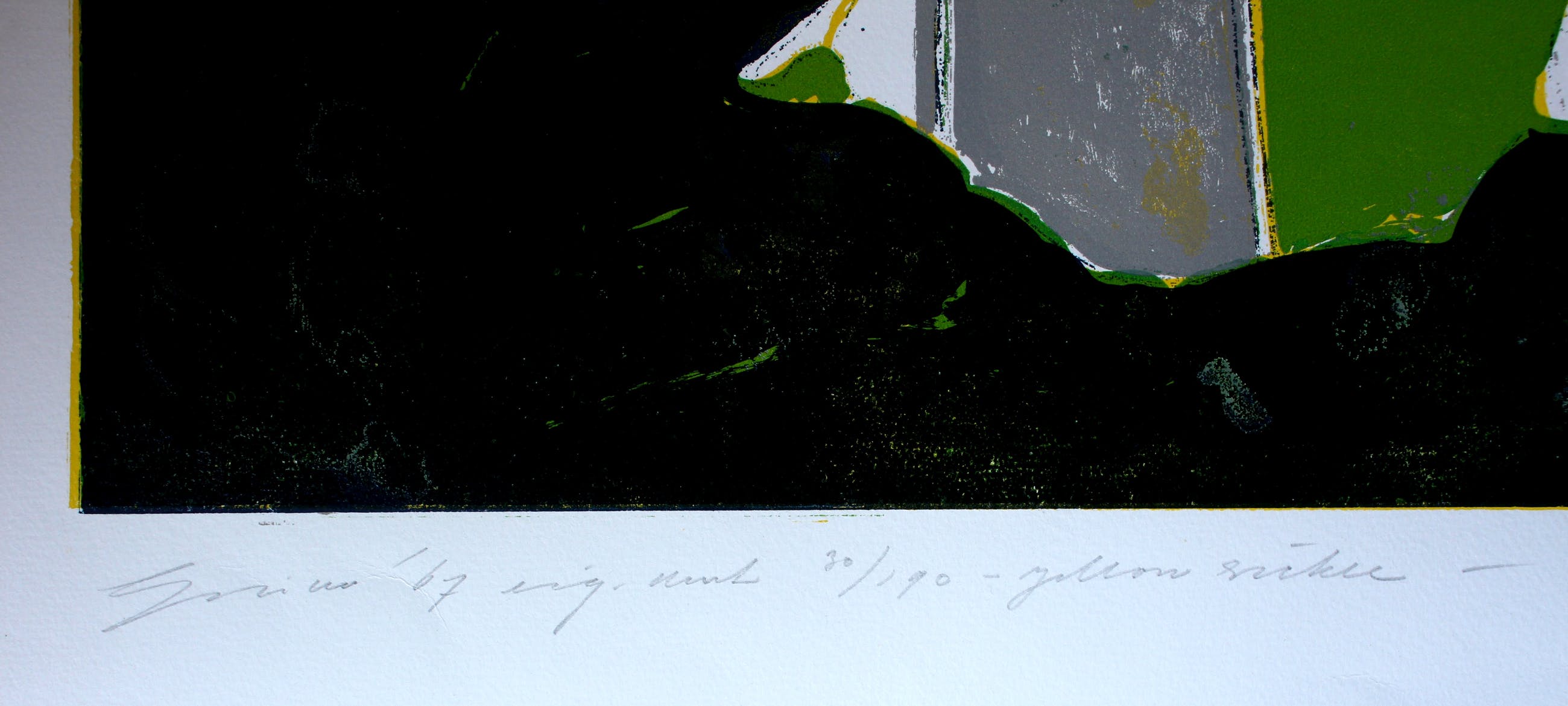 In de linkeronderhoek zit een vouwtje in het witte gedeelte van het blad. Bij inlijsting valt deze onder het passe-partout.