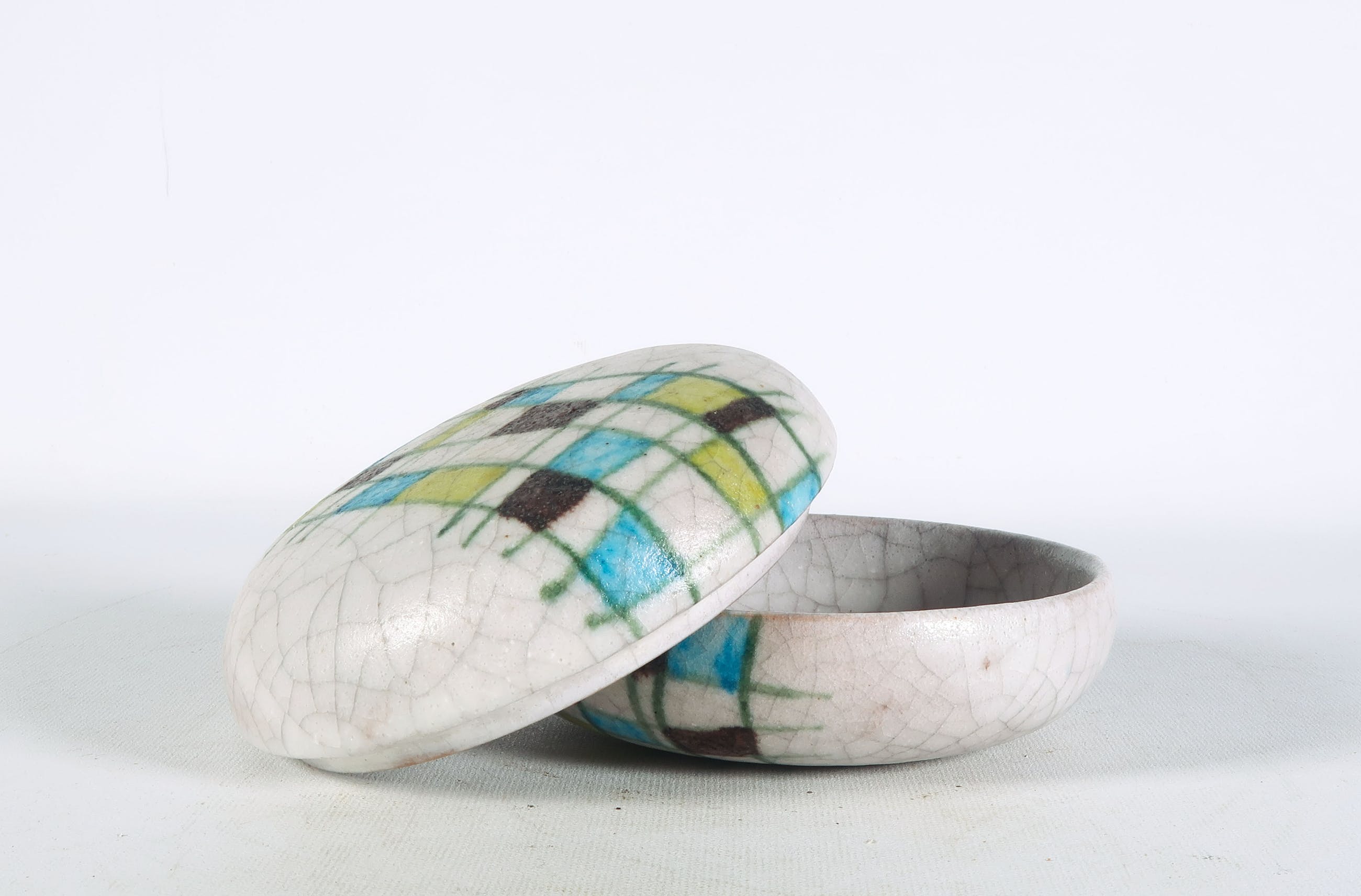 | Het schaaltje is ligt verkleurd, doordat vuil in het craquelé is getrokken. | |||