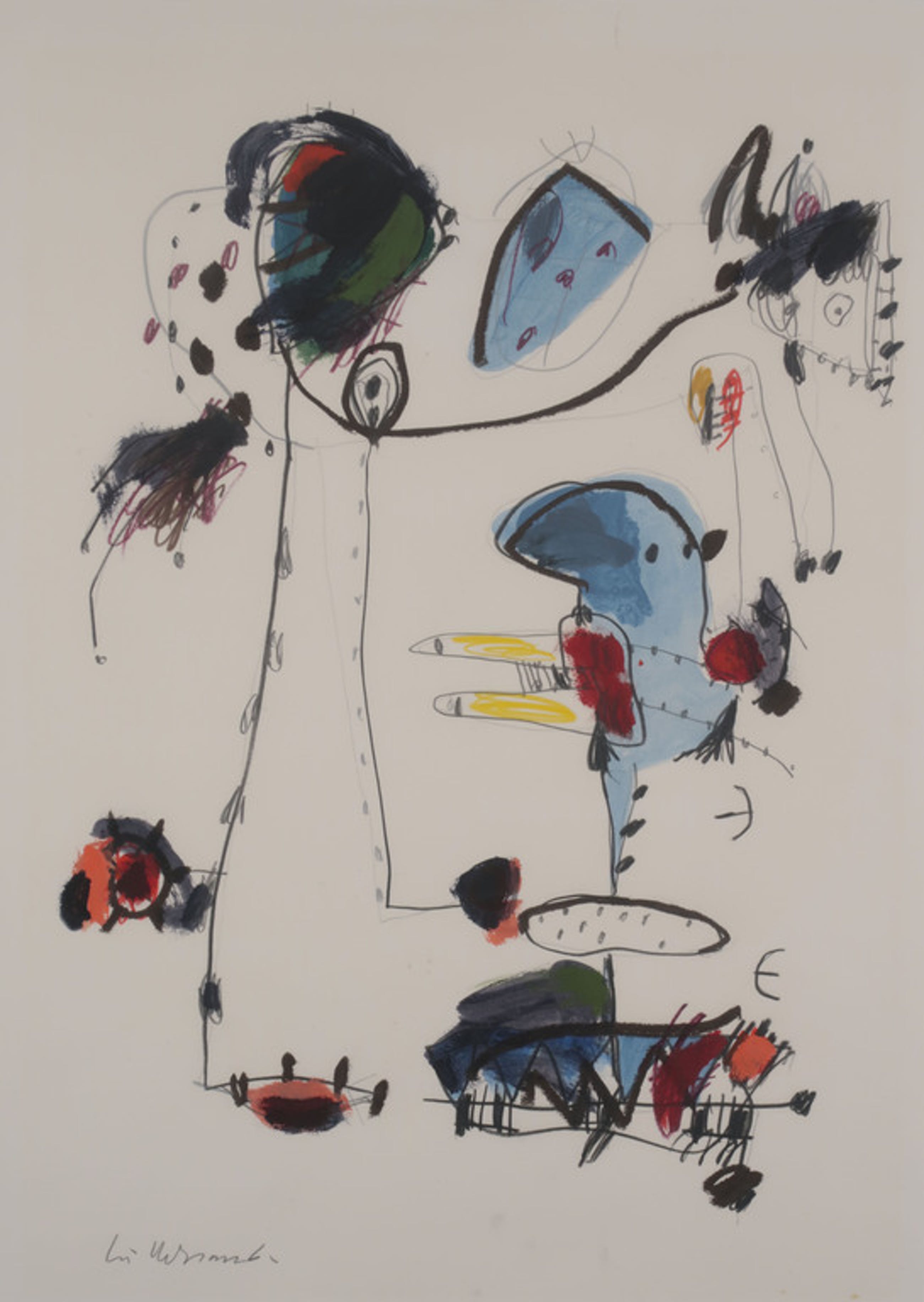 Materiaal: Gemengde techniek, o.a. Gouache en potlood op papier
