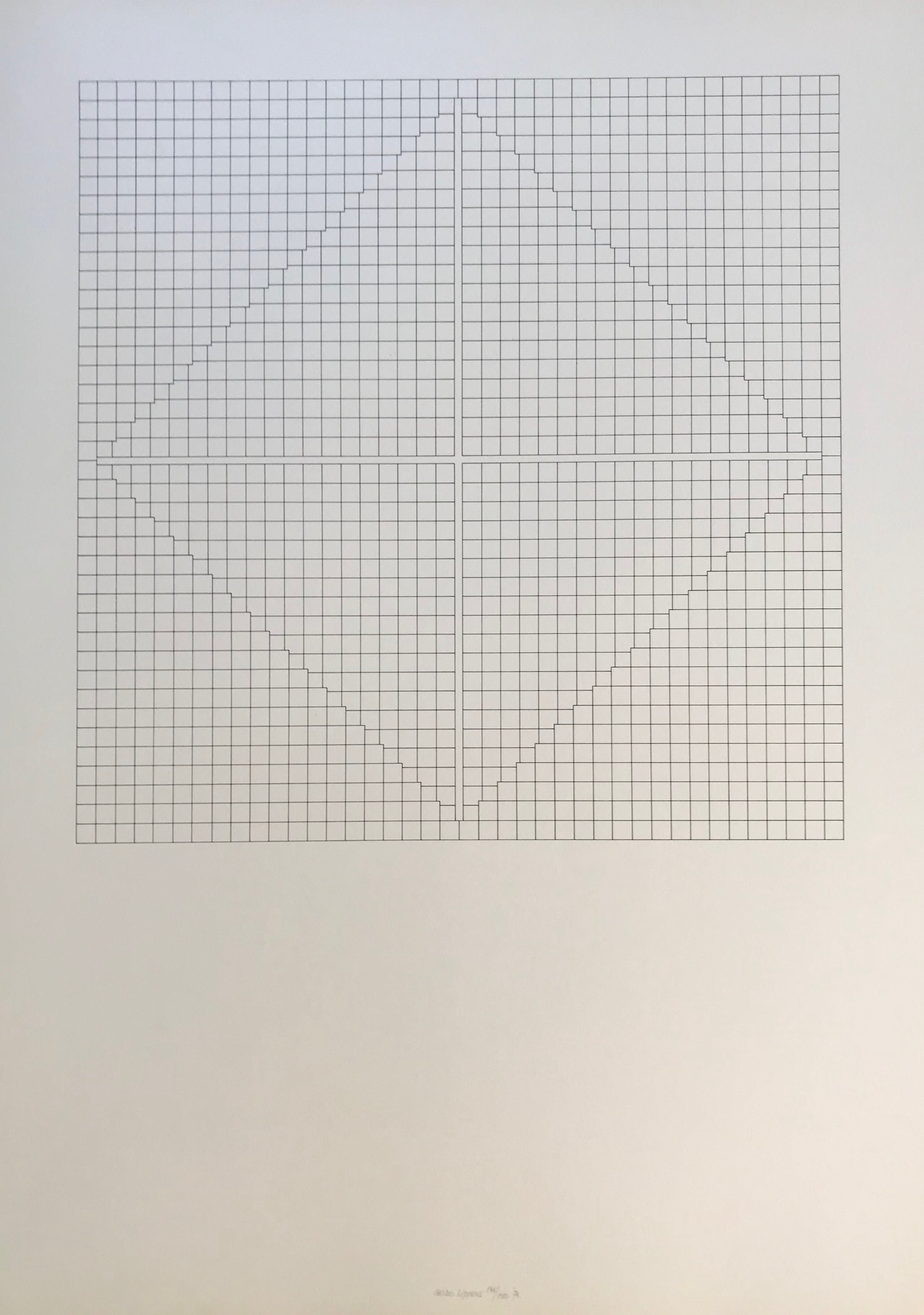Gesigneerd en gedateerd, tevens genummerd 144/150 in potlood, door de kunstenaar.Guido Lippens studeerde aan de Academie voor Industriële Vormgeving in Eindhoven. In de jaren zestig leek hij zich aan te sluiten bij het expressionisme en de pop art. Gestileerde figuratie werd gecombineerd met decoratieve patronen. Vanaf de vroege jaren zeventig legde Lippens zich toe op het tekenen van regelmatige rasterpatronen, uitsluitend in zwart-wit, volgens strenge wetmatige principes waarin hij zocht naar contrast en dynamiek. Alles werd met de hand uitgevoerd, waarmee hij bewees dat een rationeel uitgangspunt niet hoeft te leiden tot een rigide resultaat. Dit werk sloot aan bij wat in Nederland Fundamentele schilderkunst werd genoemd. In 1982 werd Lippens uitgenodigd deel te nemen aan de dOCUMENTA VII in Kassel.