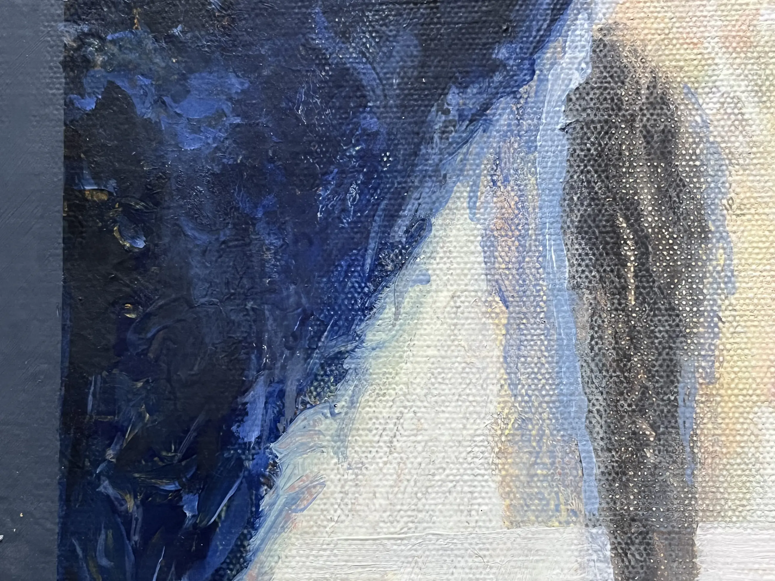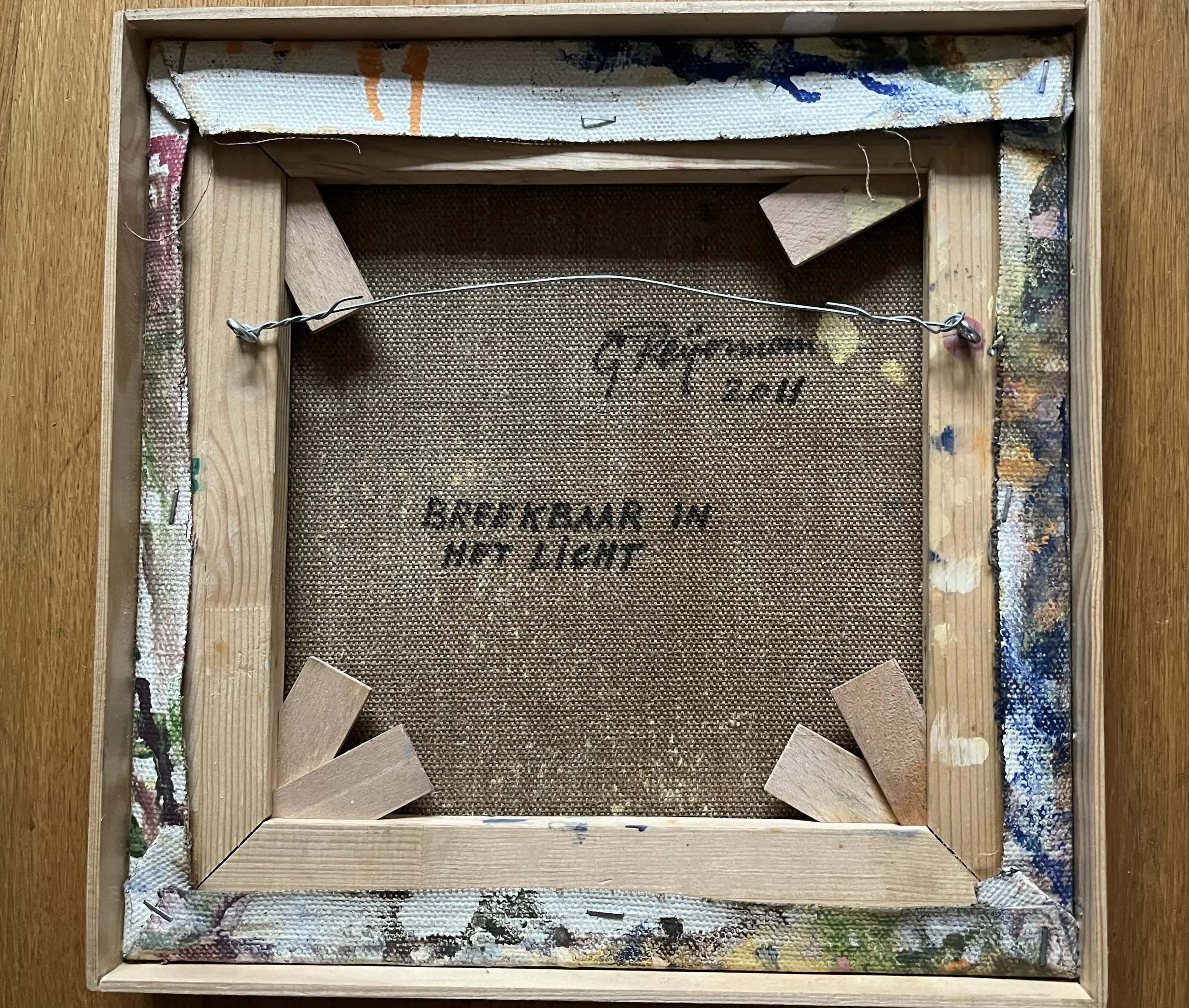 Fraai schilderij van Brabantse kunstenaar. Afmeting inclusief dun houten lijstje 31 x 31 cm. Linksonder zit een kleine imperfectie ( detailfoto)