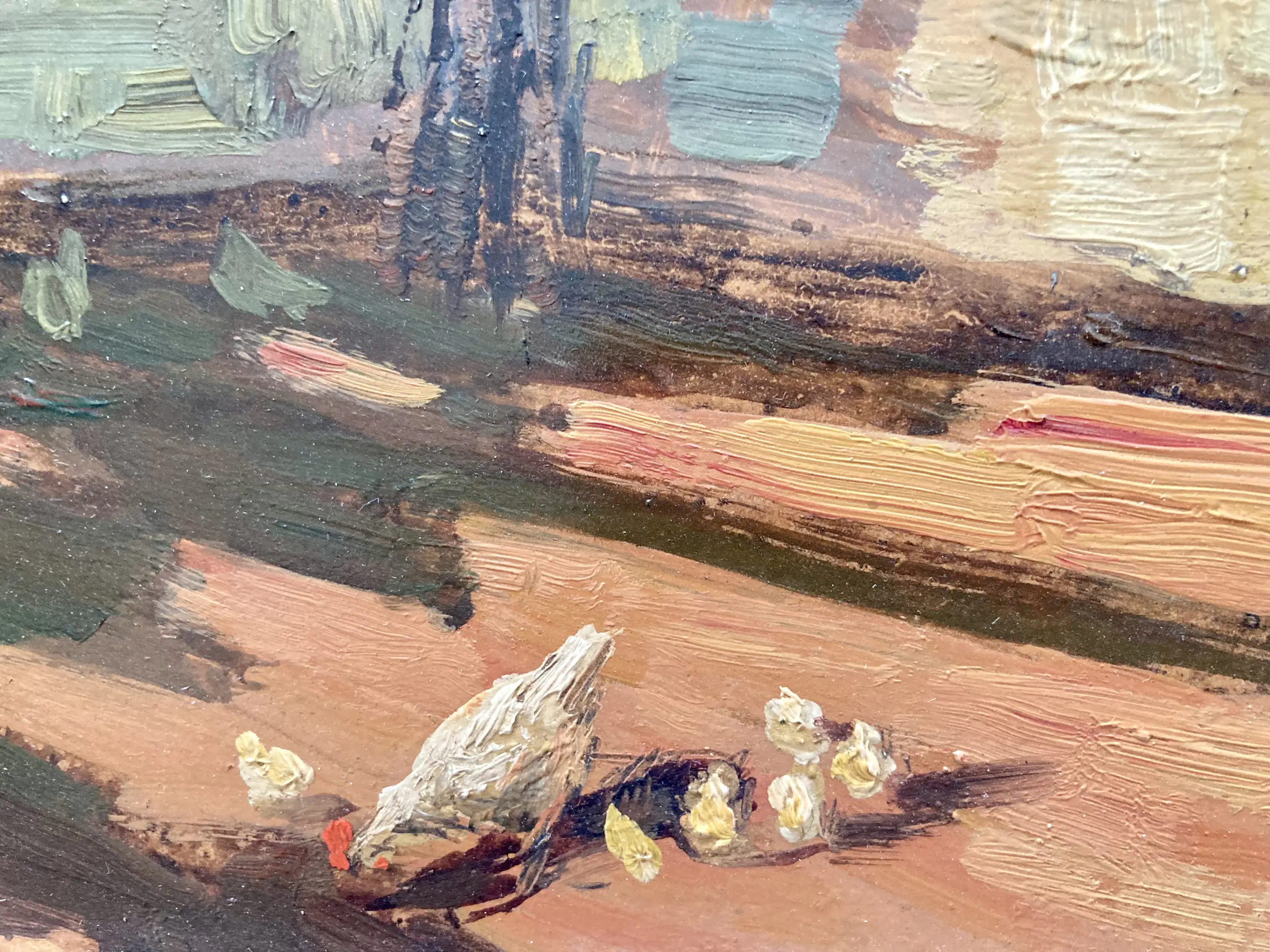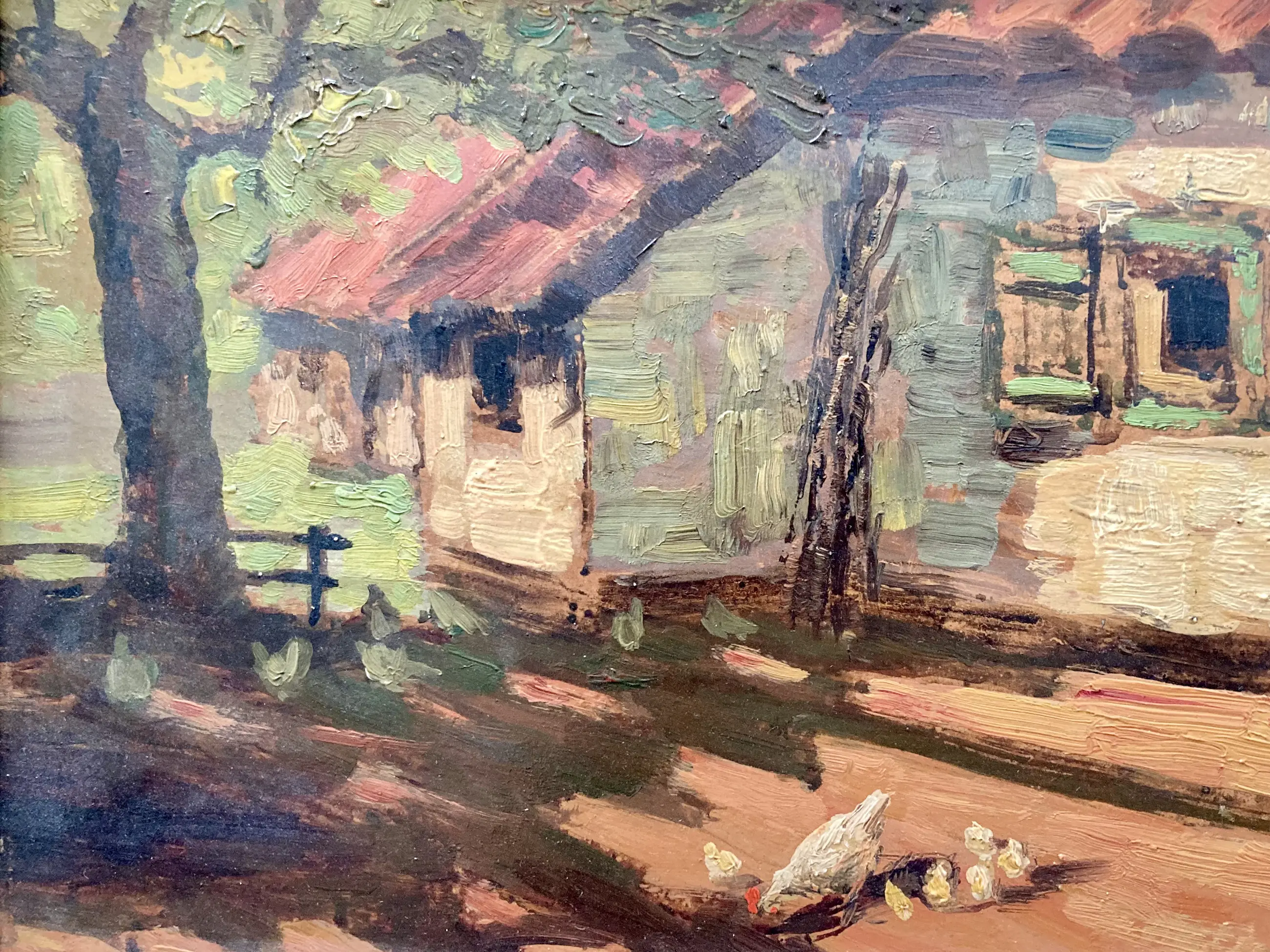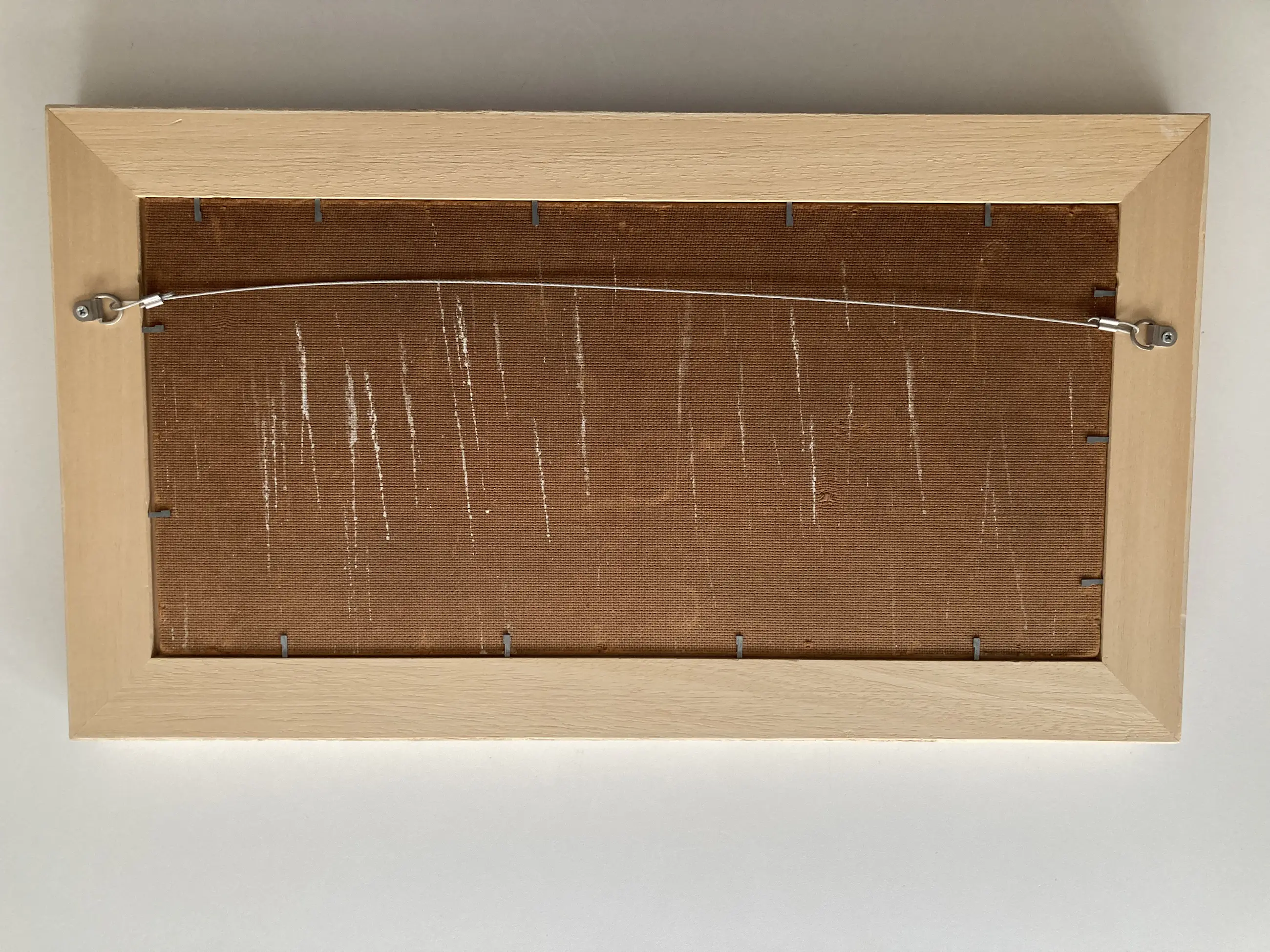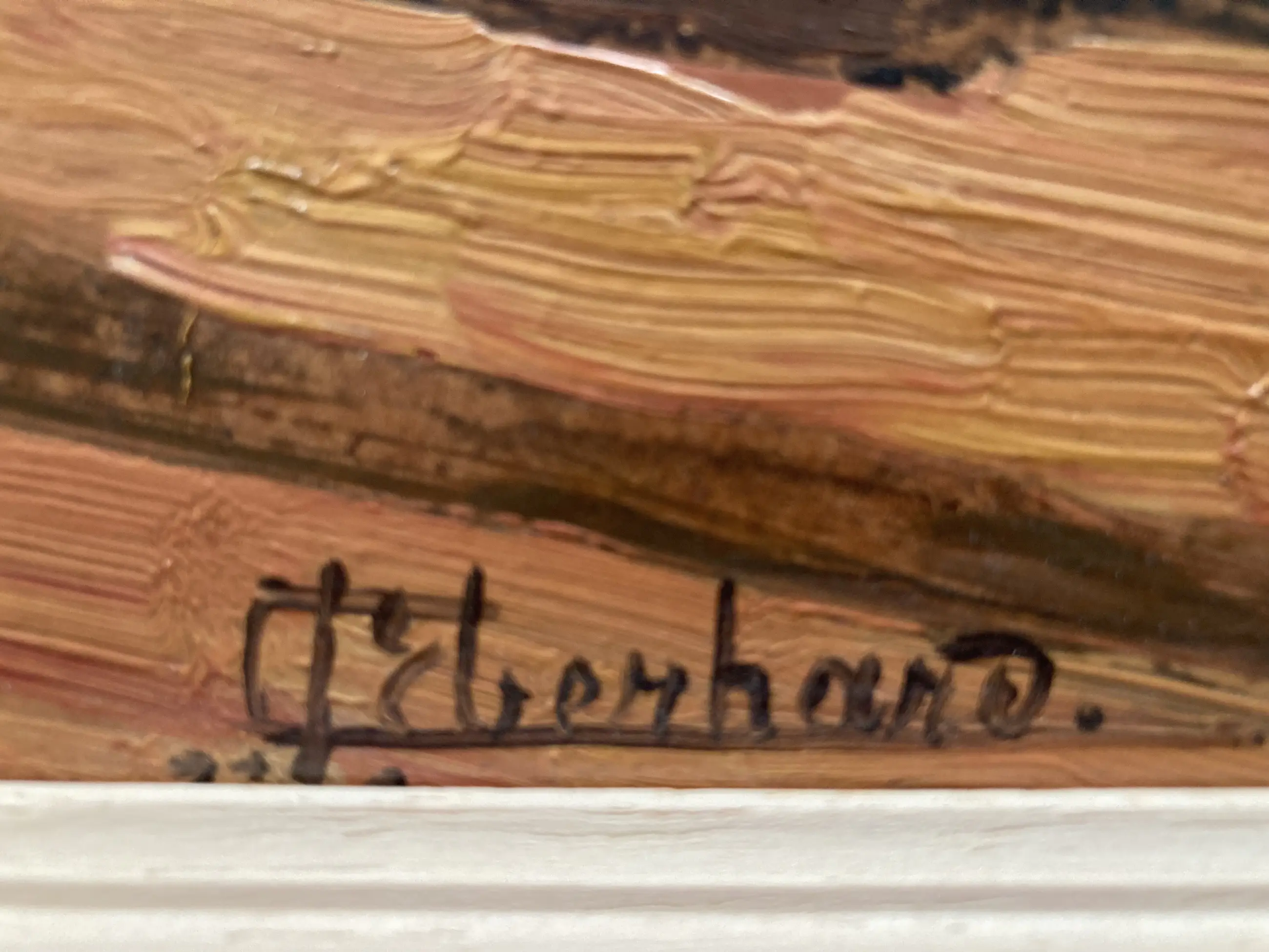 Romantisch decor van (Limburgs) boerderijtje van mergelsteen in een landschappelijke setting. Indertijd rechtstreeks verkregen van Eberhard. Professioneel gerestaureerd door Schiltaere en van nieuwe lijst voorzien. Sierraad aan de wand.