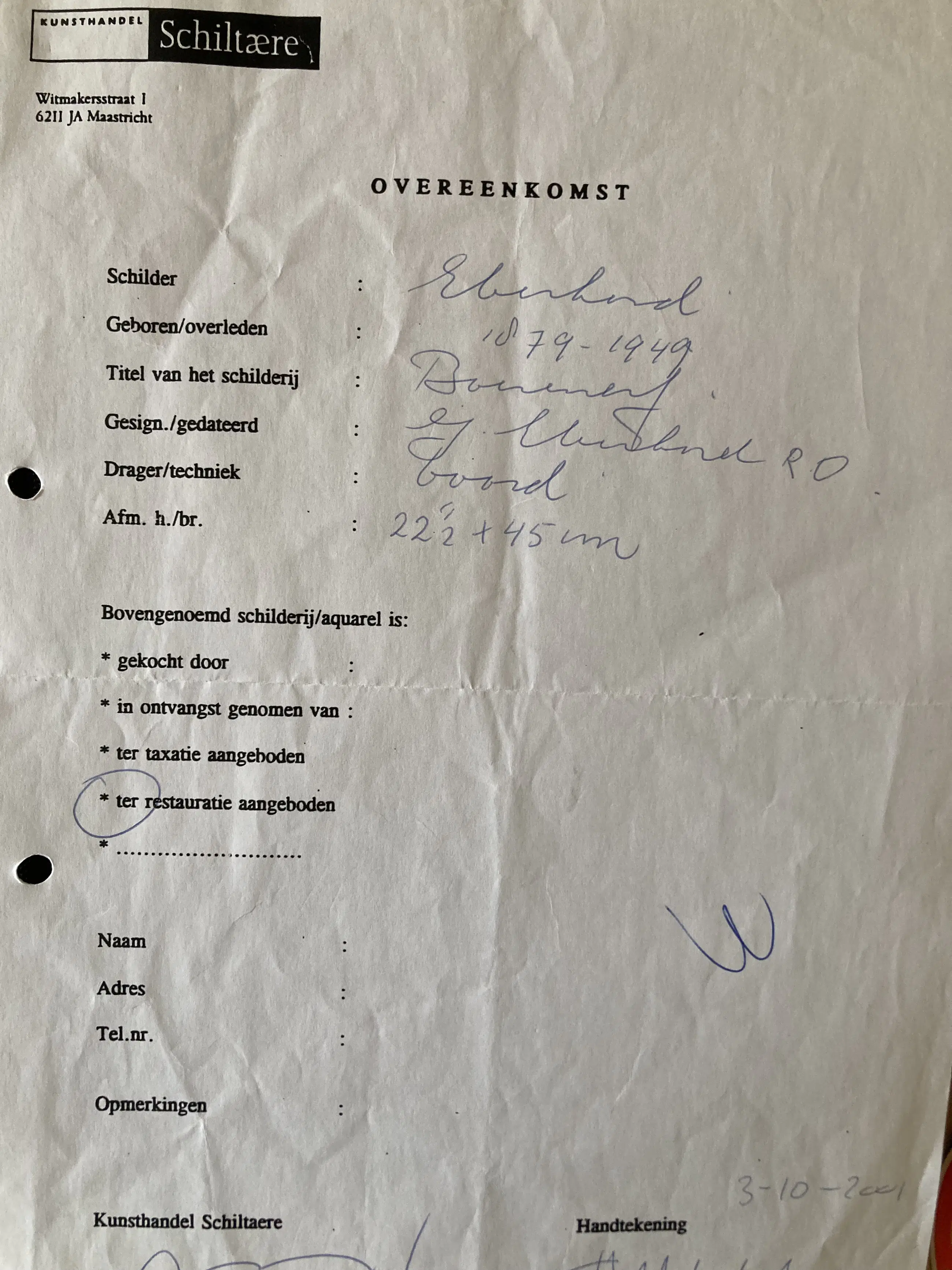 Ben u niet in staat om een werk zelf af te halen, dan kunt u een koeriersdienst inschakelen om het werk te laten afhalen. Klik hier voor meer informatie over hoe dit werkt en bekijk de tarieven.
