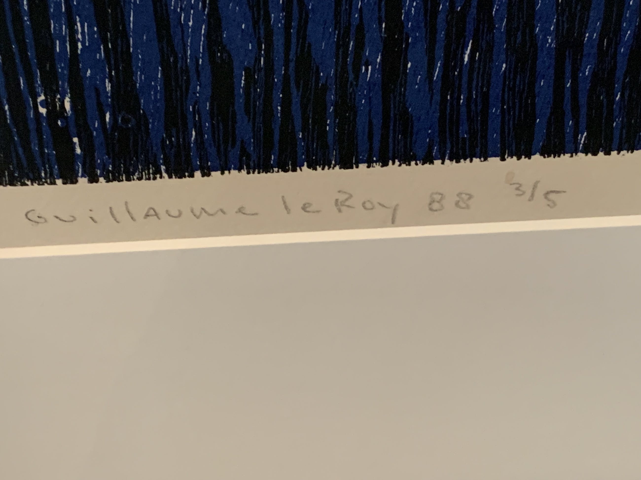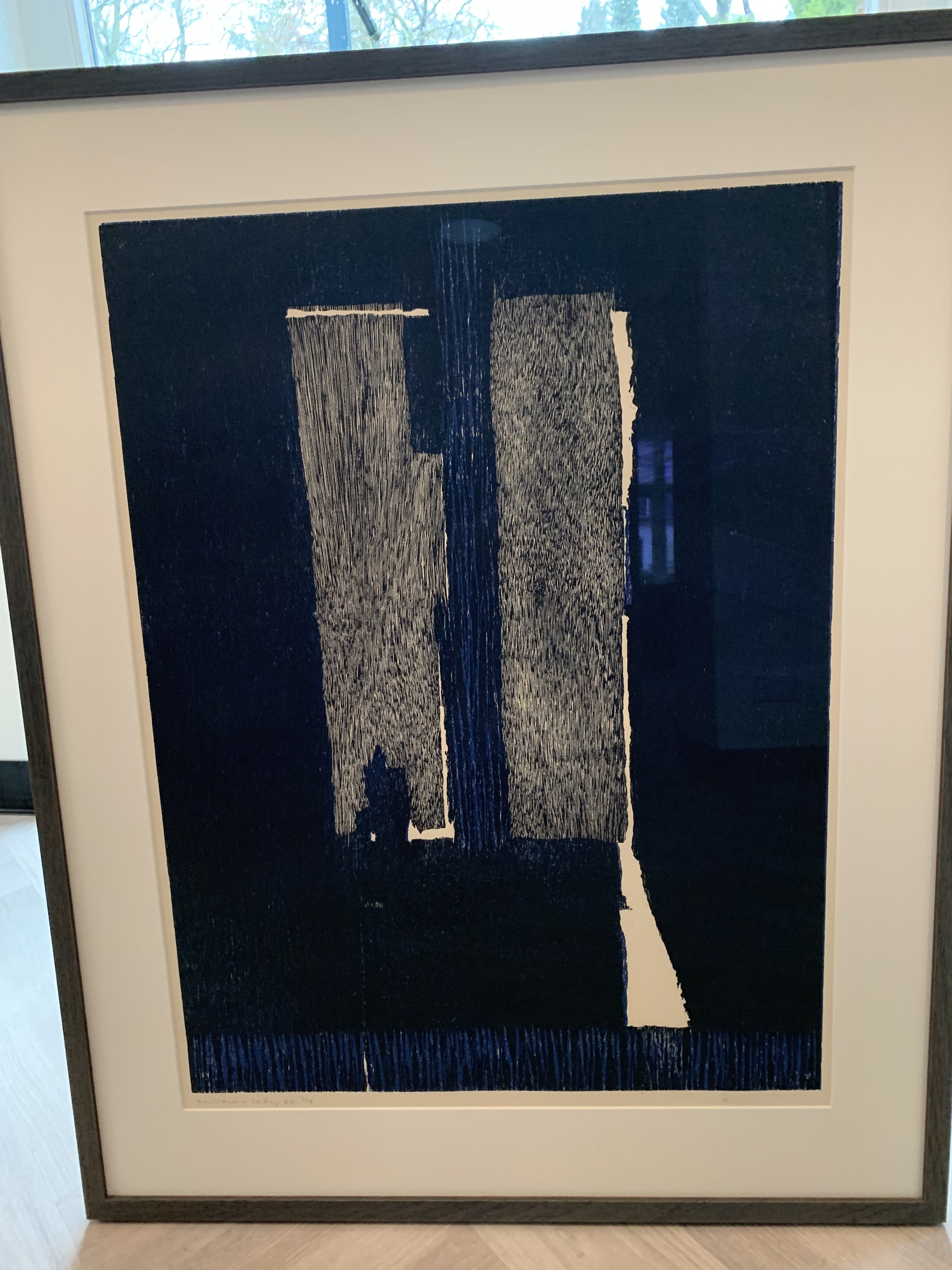 Deze Guillaume Le Roy is de versie 3/8.De ets is in uitstekende staat, in de wel bekende uitvoering zwart, wit en wat blauw. De afbeelding stelt een deur voor, die suggereert open te gaan en dan een schaduwwerking geeft. De spannende vraag is wat gebeurt er achter de deur? De afmeting, dus buitenkant lijst, is: Hoogte 105 cm en breedte 83 cm Wordt geleverd met getoonde lijst, maar die kan uiteraard aangepast worden. | |