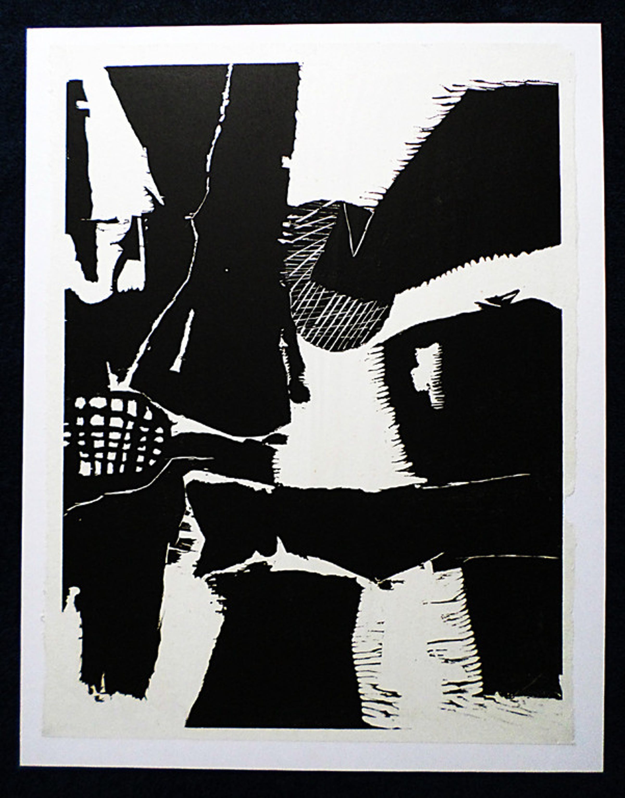Karakteristieke zwart-wit houtsnede van Guillaume Le Roy op japans papier. Handgesigneerd en genummerd (23? uit een oplage van slechts 35 stuks) met potlood. Het werk is mooi gemonteerd op glad wit karton, en in zeer goede conditie. Afkomstig uit de kunstcollectie van ABN AMRO.