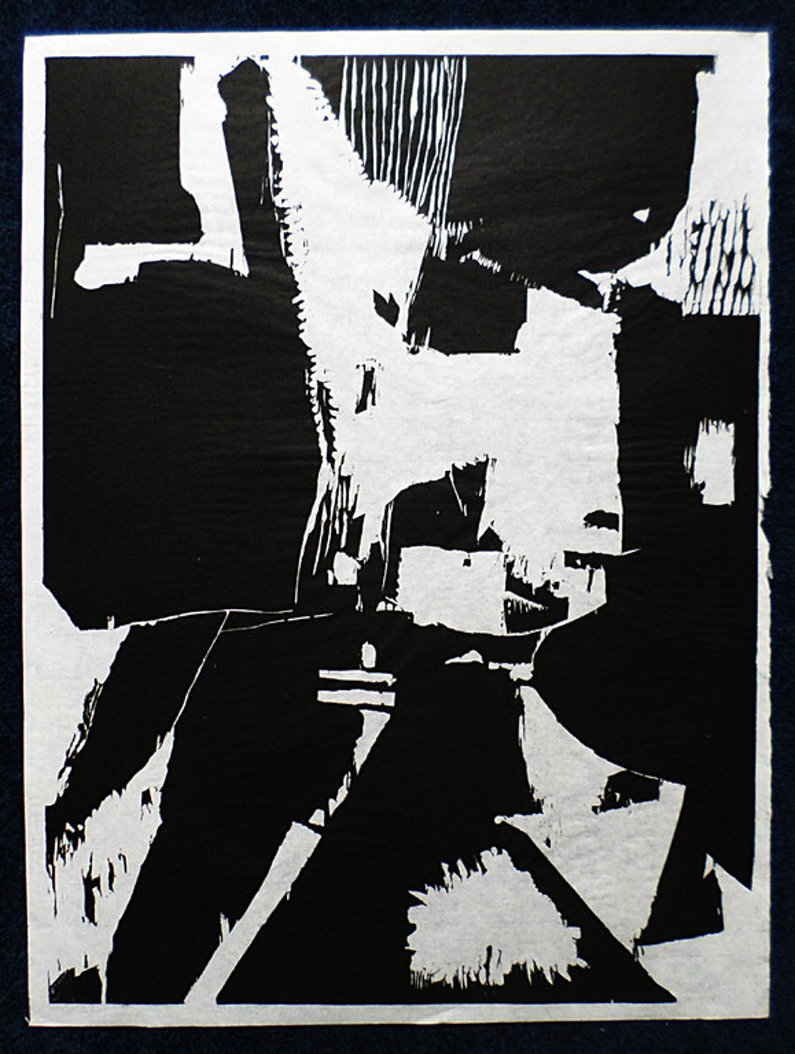 Karakteristieke zwart-wit houtsnede van Guillaume Le Roy op japans papier. Handgesigneerd en genummerd (20 uit een oplage van 35) met potlood. Het werk is nooit ingelijst geweest (waarschijnlijk zelfs nooit uit de map geweest), want is in zeer goede conditie. Er is alleen een stukje uit de witte marge rechts (zie foto 2), maar dit is goed ingelijst niet te zien. Afkomstig uit de kunstcollectie van ABN AMRO.