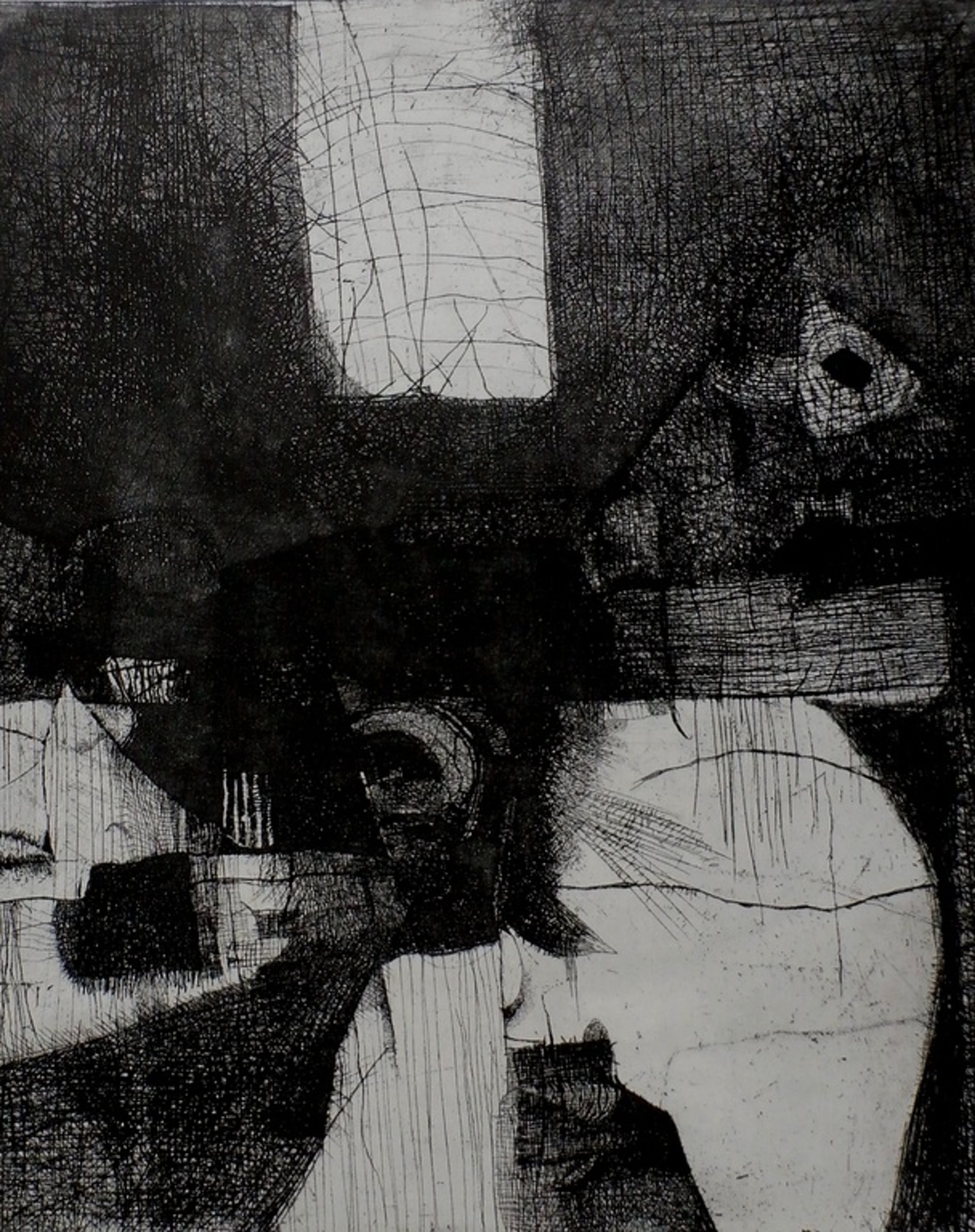 Ets van Guillaume le Roy uit 1967. Abstracte compositie. Nummer 3/10. Rechtsonder gesigneerd door de kunstenaar. Afmetingen blad incl passepartout: H75.5 x b65.5 cm. Afmetingen voorstelling H58.5 x b50. Conditie: in goede staat. De authenciteit van dit werk wordt volledig gegarandeerd. Een certificaat van echtheid kan, op verzoek, worden meegeleverd