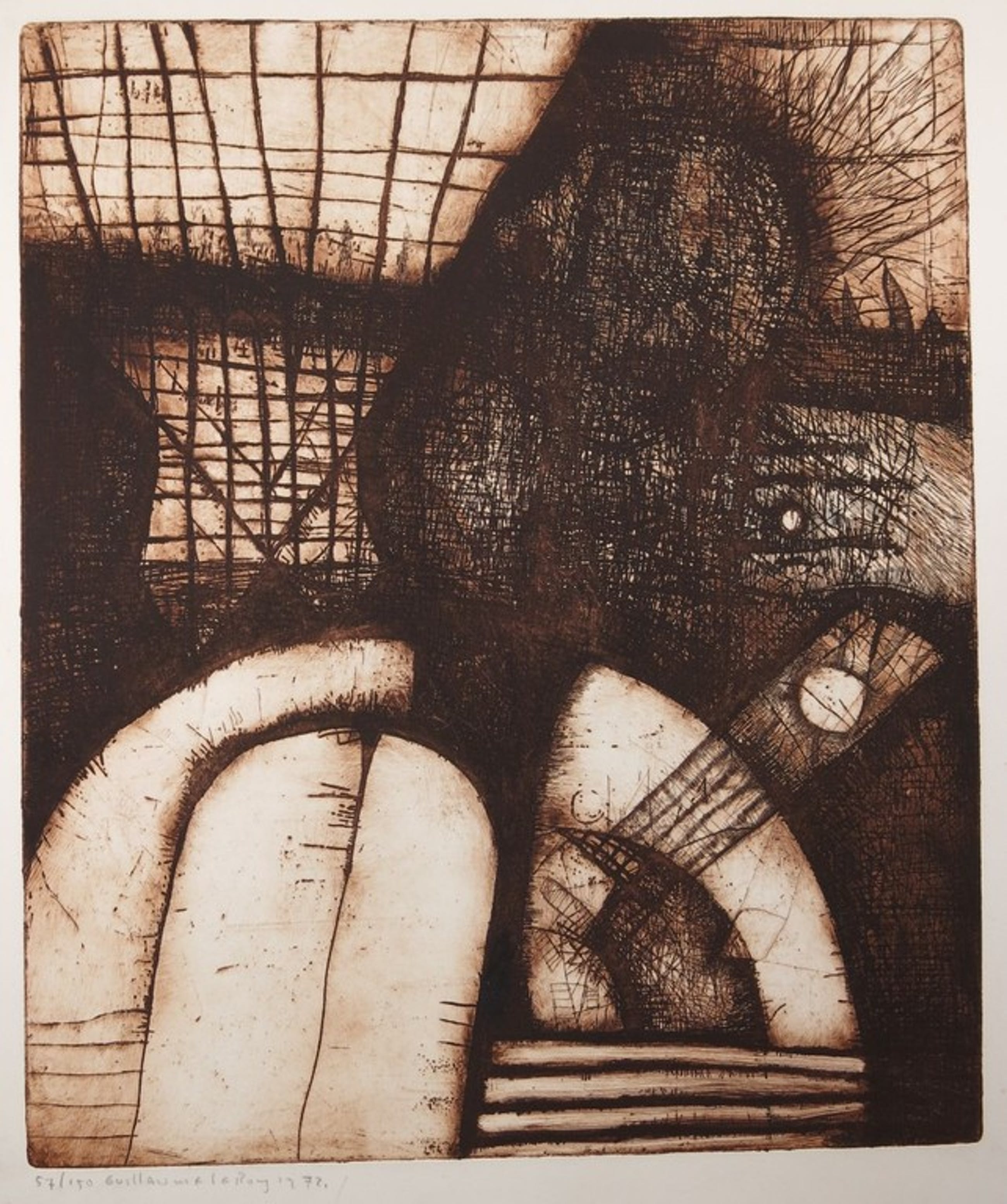Materiaal: Ets in bruine inkt op geschept papier