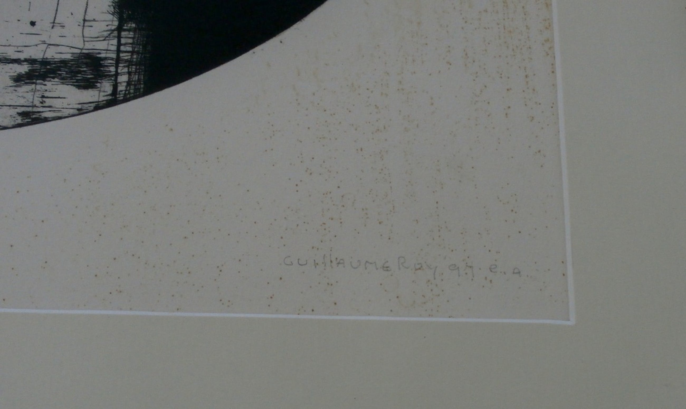 Ingelijste ets van Guillaume le Roy uit 1997. Nummer: e.a. Afmetingen incl. lijst: H81 x b68 cm. Afmetingen beeld: Diameter: 49,5 cm. De authenciteit van het, aangeboden, werk wordt voor 100% gegarandeerd. Een certificaat van echtheid kan, op aanvraag, worden meegestuurd.