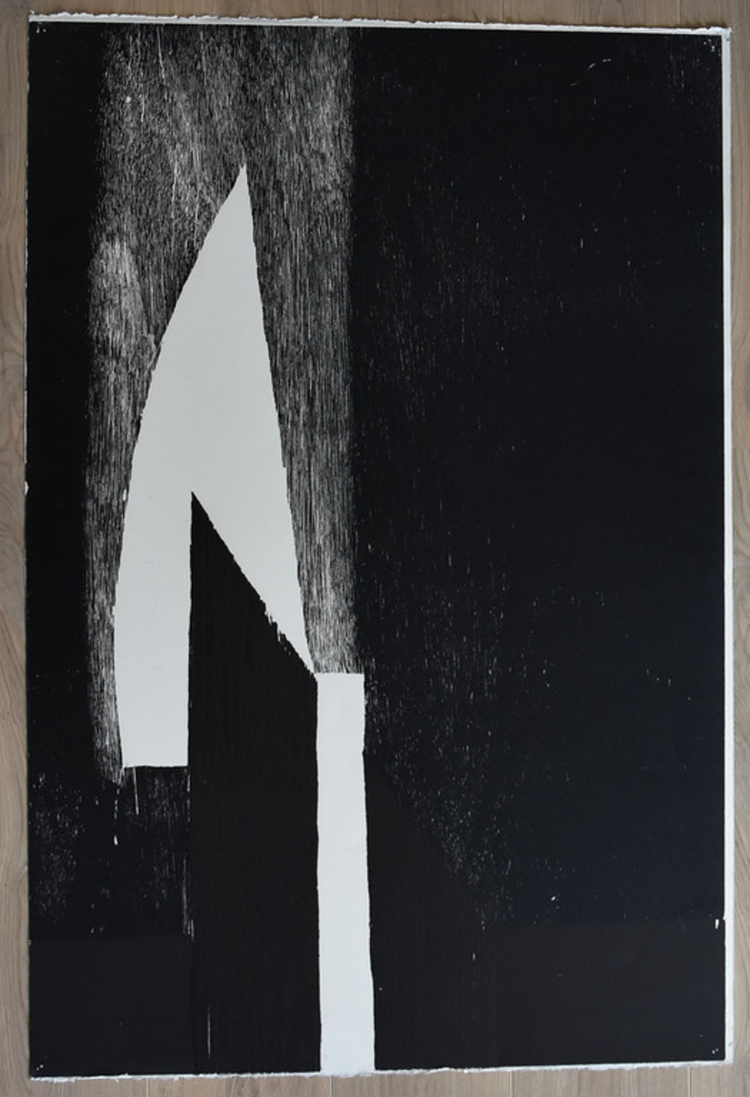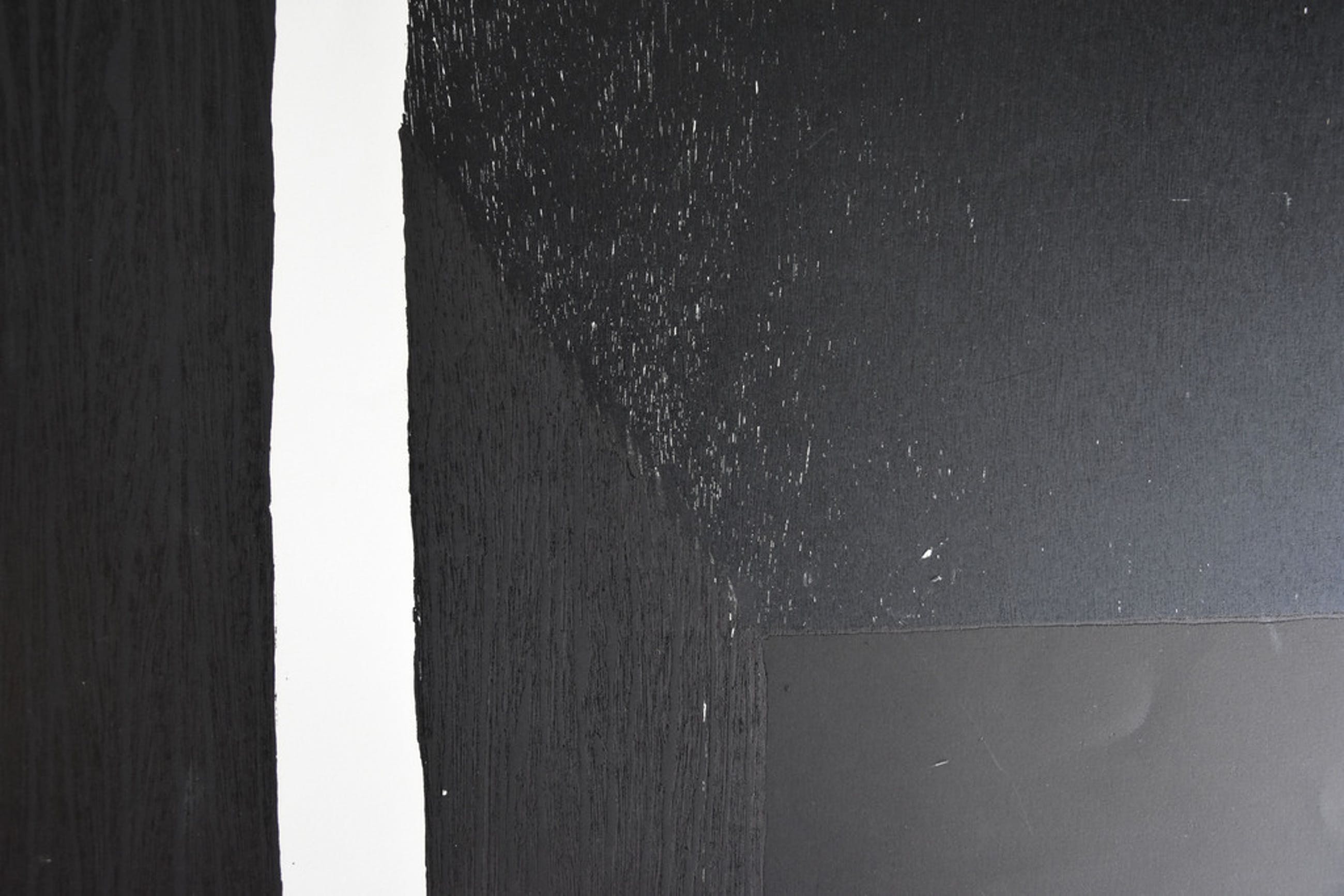Na de bijzondere houtsnedes van vorige veiling nu nogmaals een Guillaume Le Roy houtsnede . Deze keer een in indrukwekkend zwarte tinten en het diepste donkerbrui ( bijna zwart) uitgevoerde houtsnede. Ook deze op een extreem groot formaat op zwaar papier . Deze houtsnede maakt deel uit van een serie houtsnedes in zwart tinten met geometrisch abstracte figuren verwerkt in de houtsnede en doet sterk denken aan het werk van Soulages. Oplage 10 ex. genummerd 1/10 en gesigneerd.