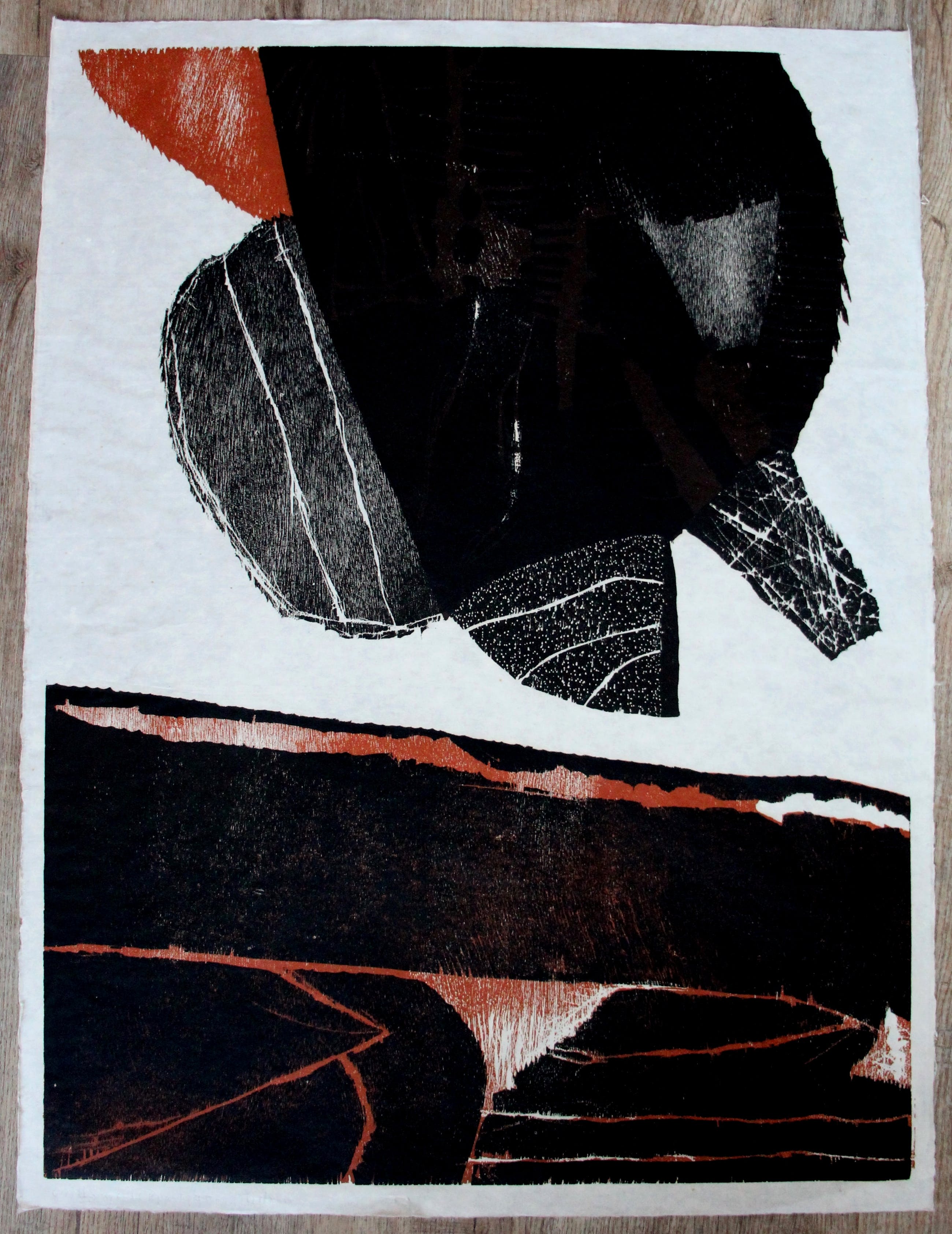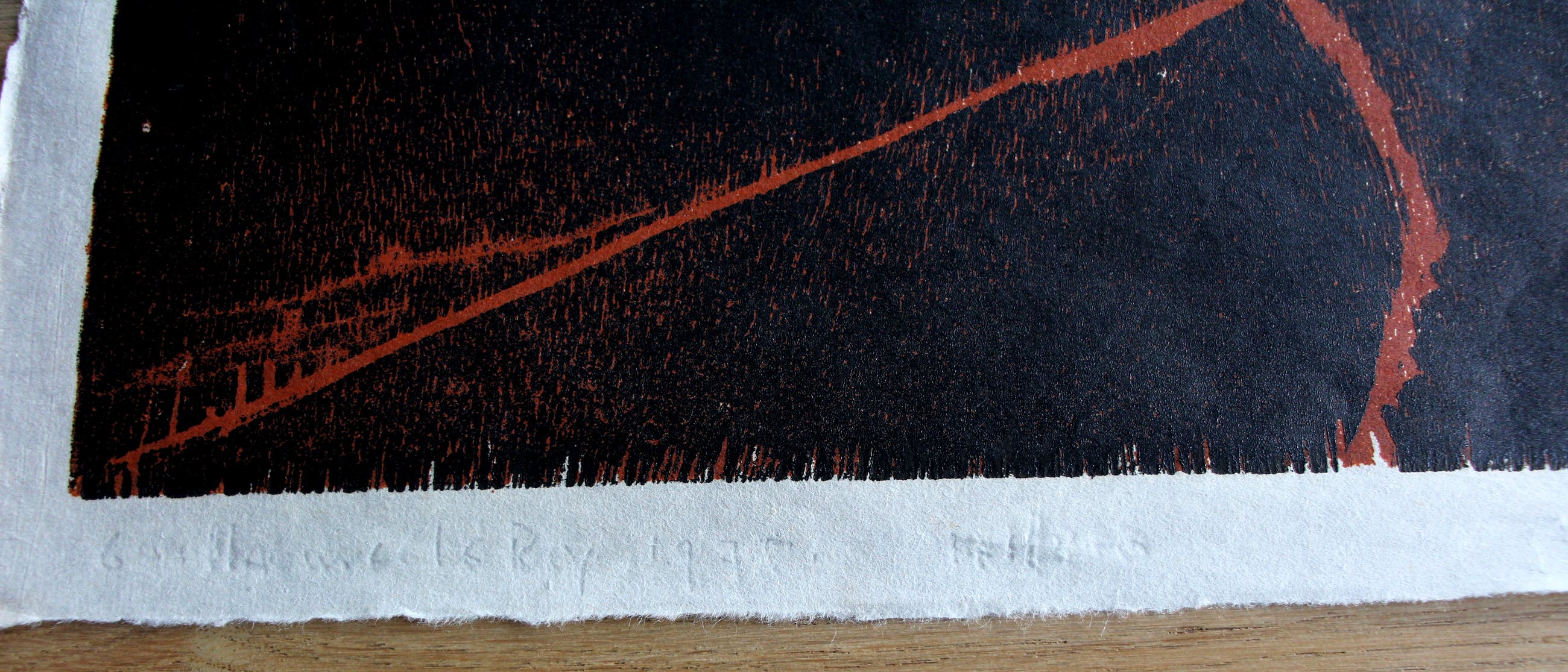 Houtsnede van Guillaume Le Roy. Vermoedelijk uit 1977. Het laatste jaarcijfer is lastig te lezen. Het werk is linksonder, met potlood, gesigneerd en gedateerd door de kunstenaar. Afmetingen voorstelling: H80 x b60 cm. De authenticiteit van dit werk wordt volledig gegarandeerd. Een certificaat van echtheid kan, op aanvraag, worden gemaild.