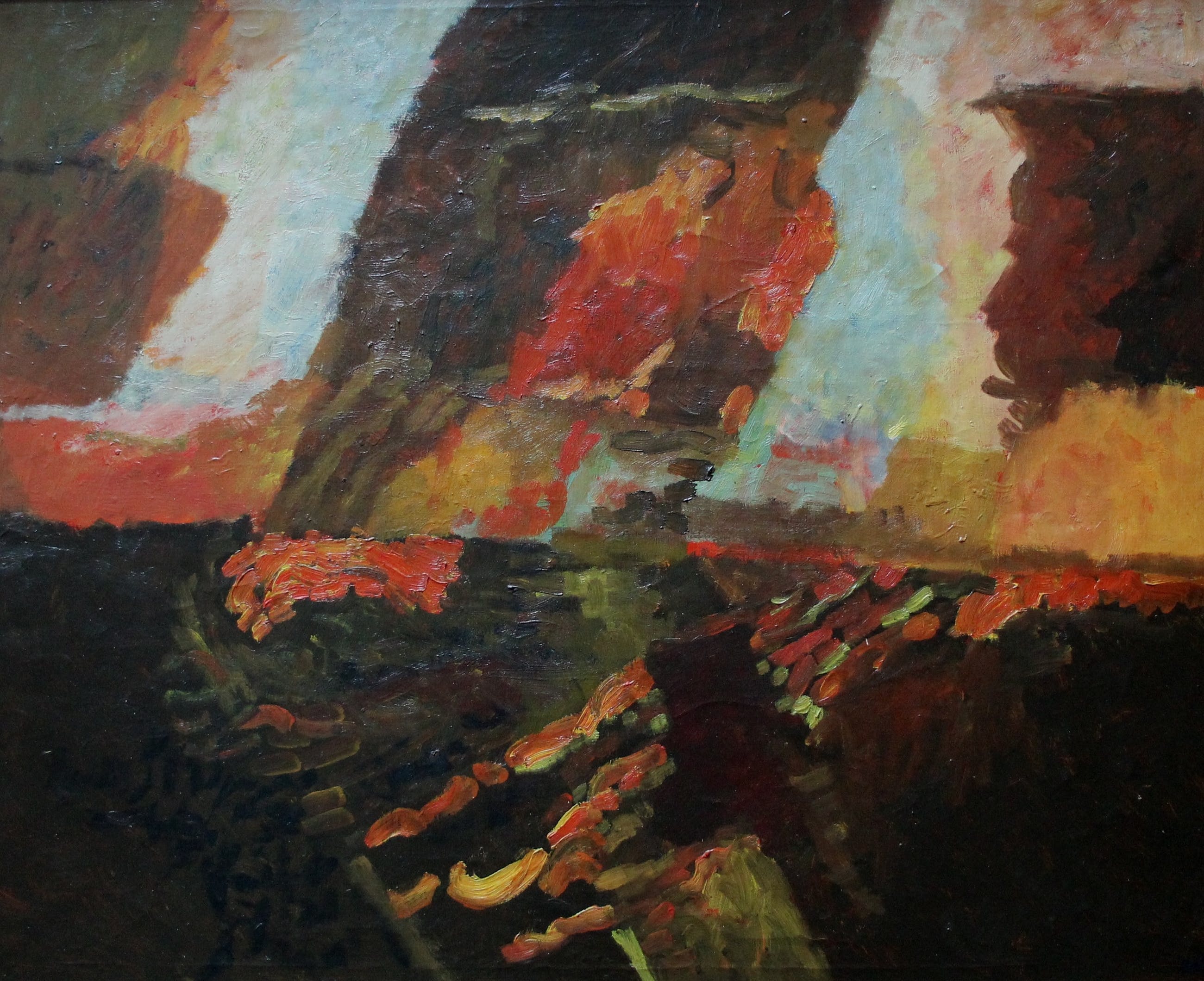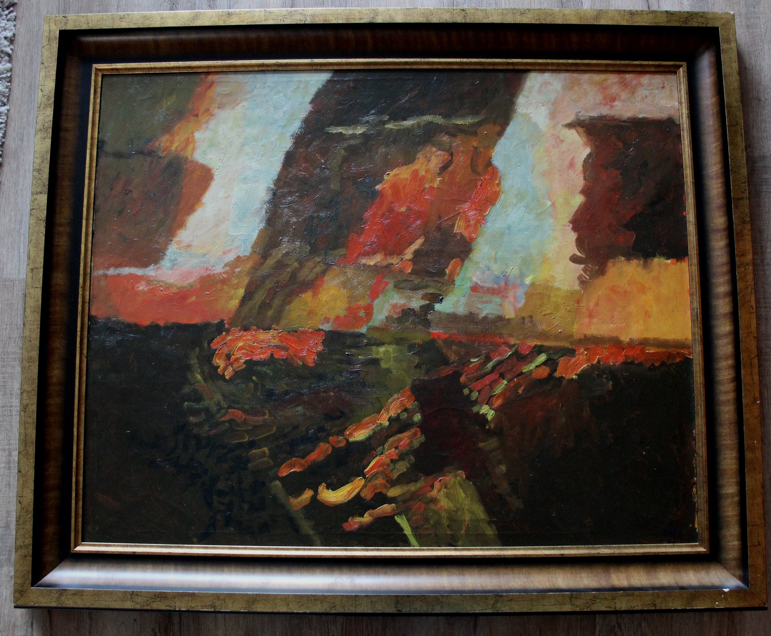 Olieverf op doek van Guillaume le Roy uit 1974. Afmetingen incl lijst: H100 x b120 cm; Afmetingen voorstelling: H80 x b100 cm. Het werk is rechtsonder gesigneerd en gedateerd door de kunstenaar. (met blauwe verf). De authenticiteit van dit werk wordt volledig gegarandeerd. Een certifcaat van echtheid kan, op aanvraag, worden gemaild.