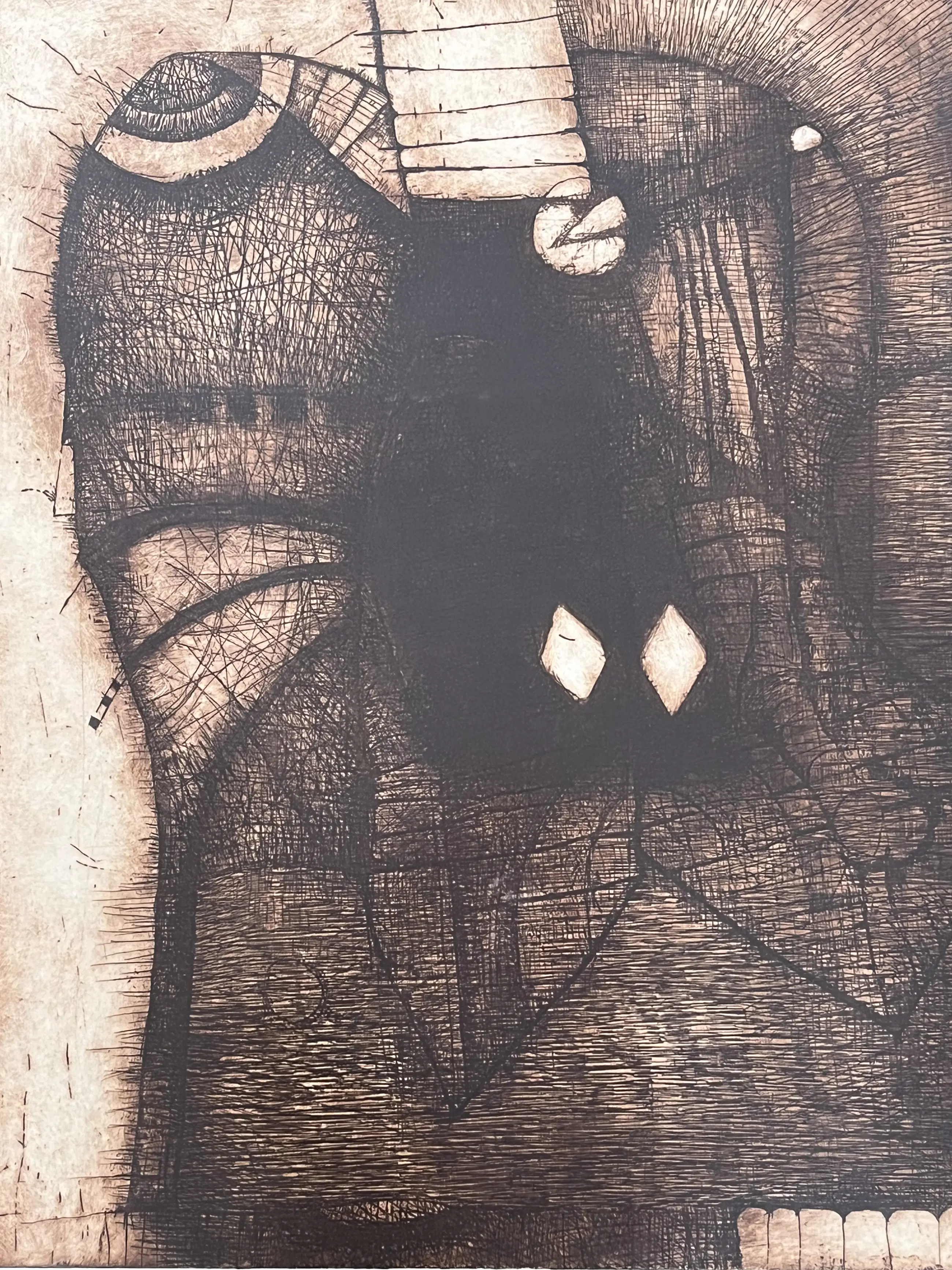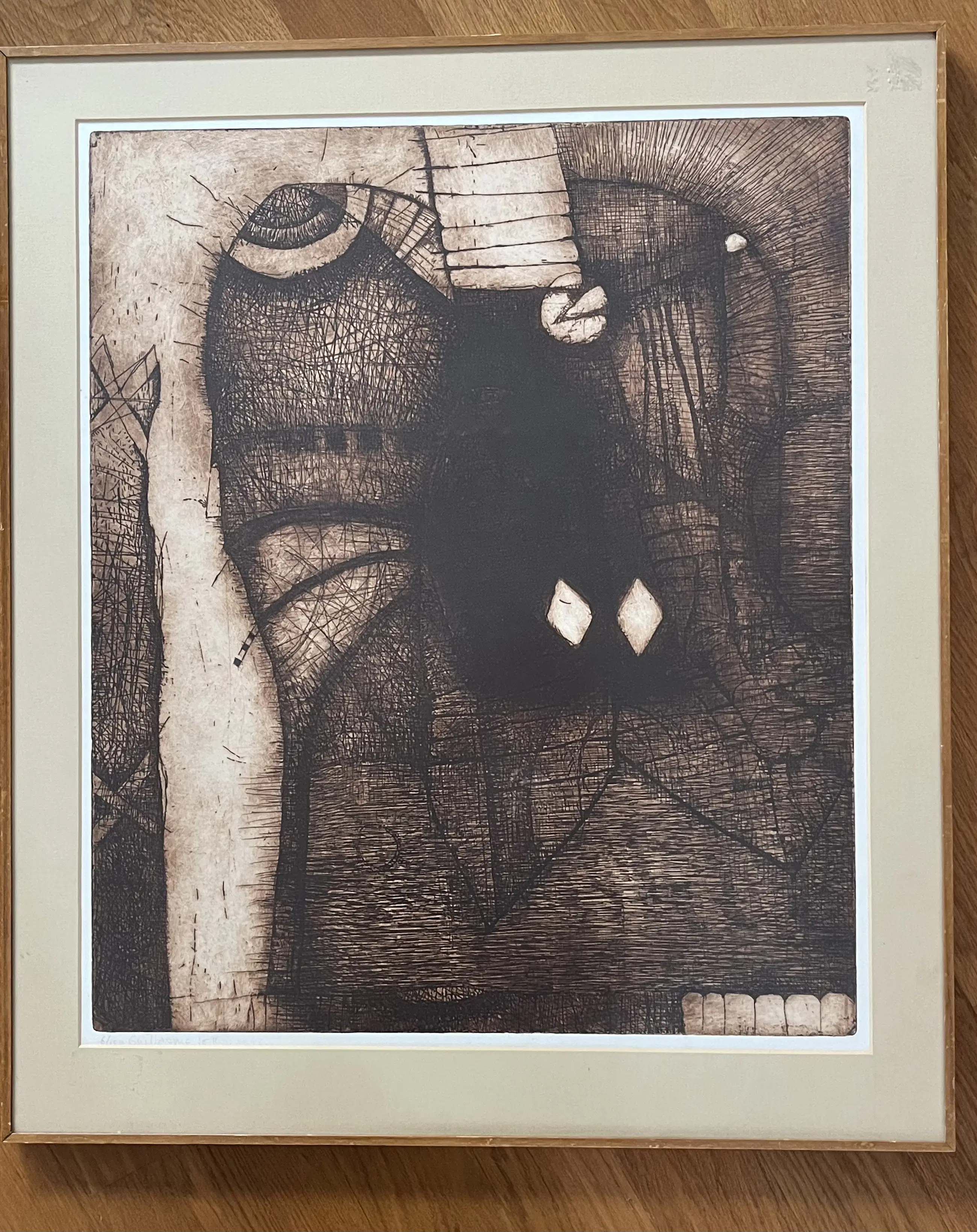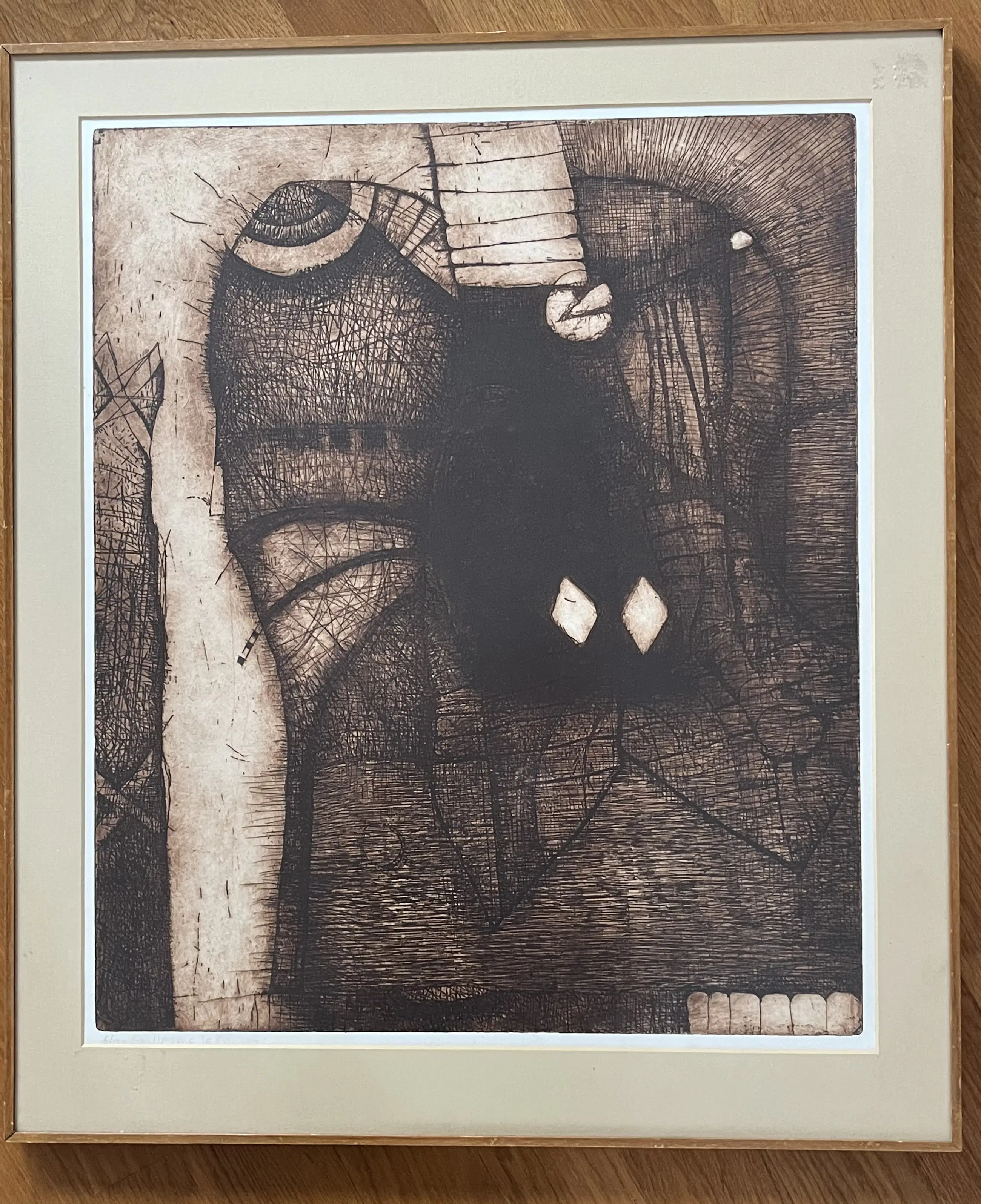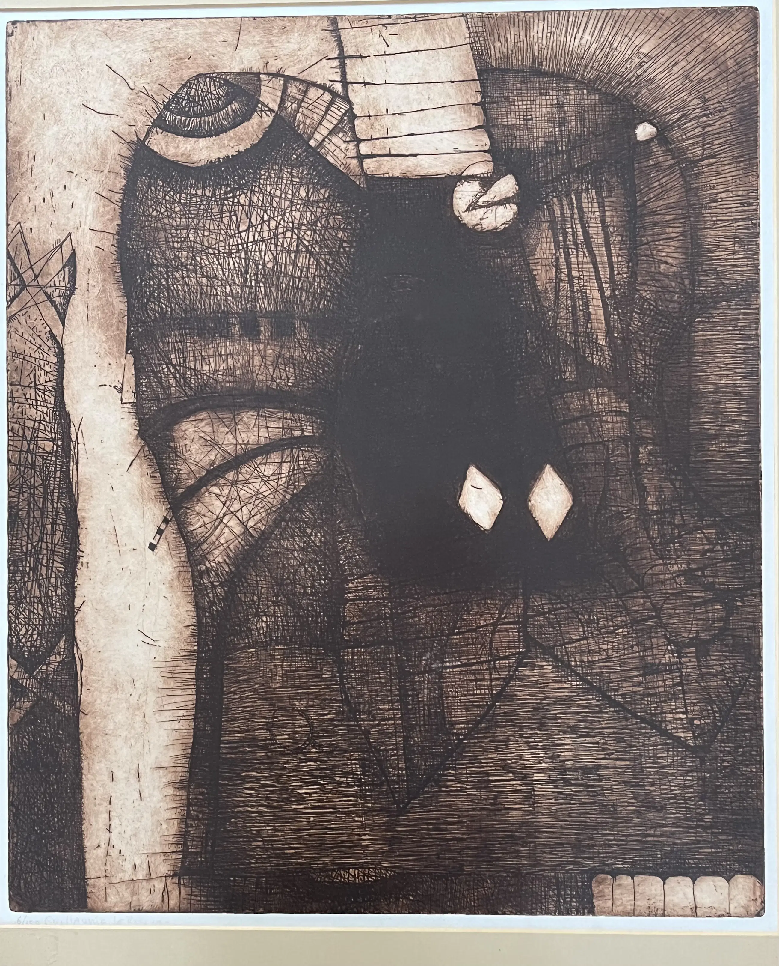 Karakteristiek werk uit 1972. Oplage 6/150. Werk lijkt enigszins verkleurd.
