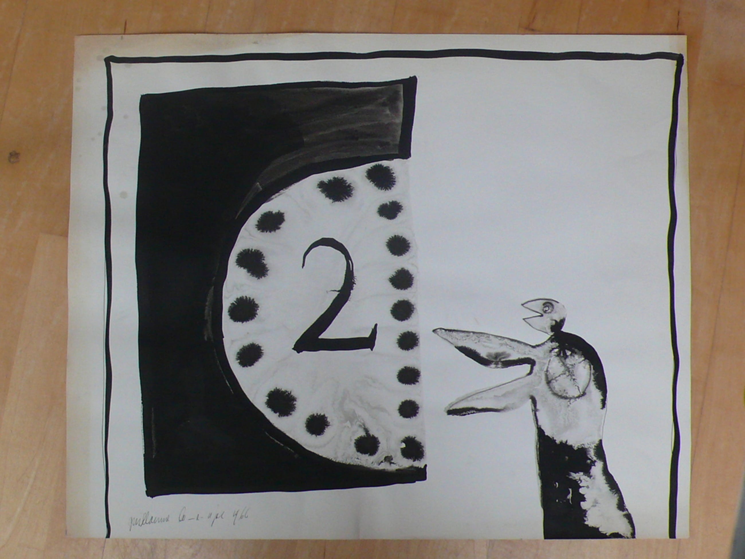 Tekening inkt op papier, gesigneerd in potlood en gedateerd 1966
