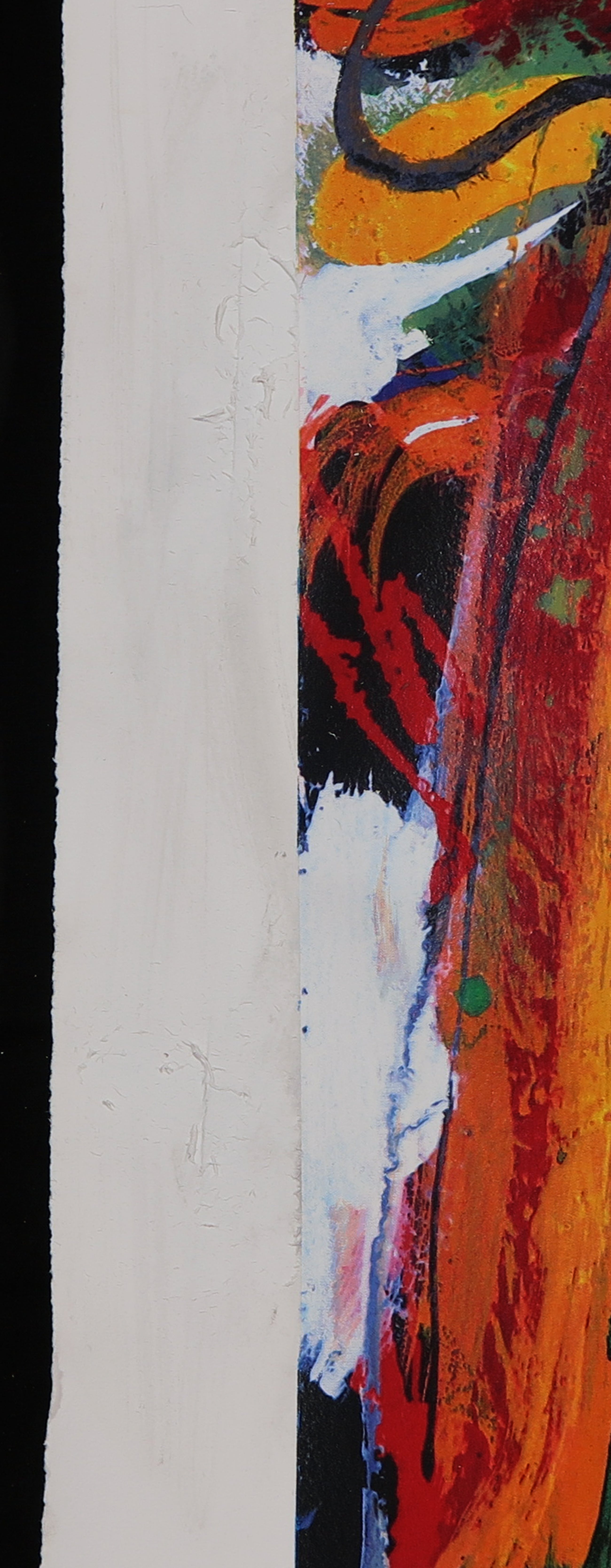 | Het werk is over het algemeen wel in goede staat maar, maar de witrand langs de rand links is beschadigd, tot op de rand van het beeld. Lichte beschadigingen langs de randen. Met licht opstaande randen. | |||