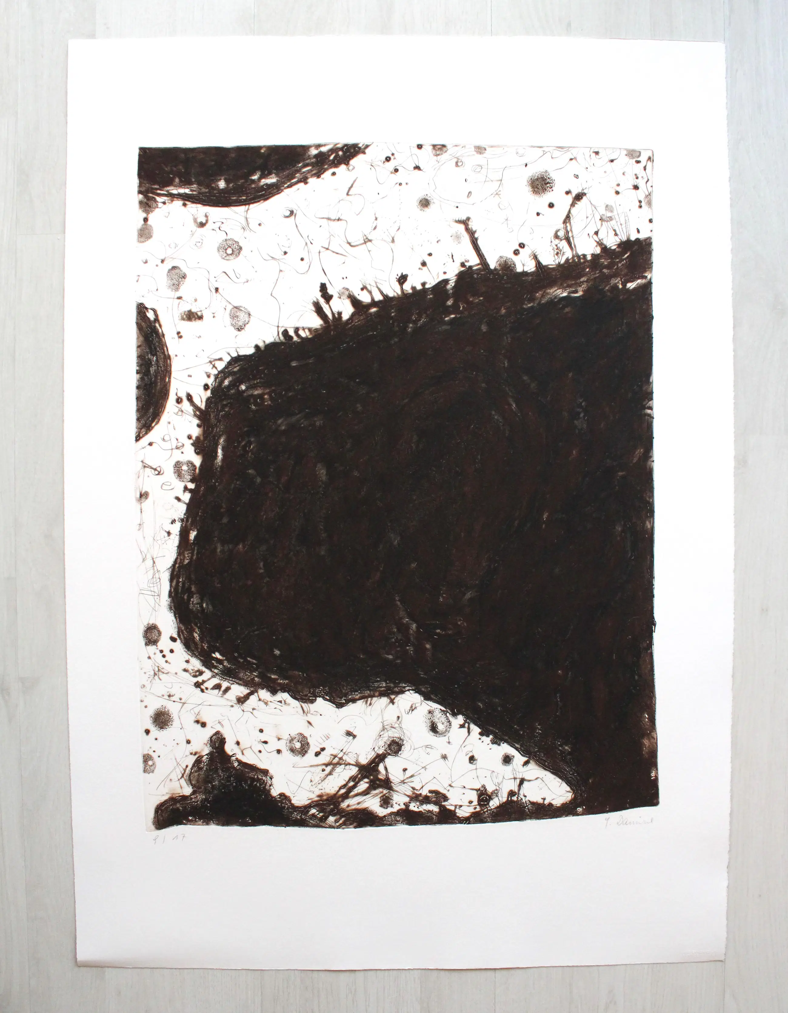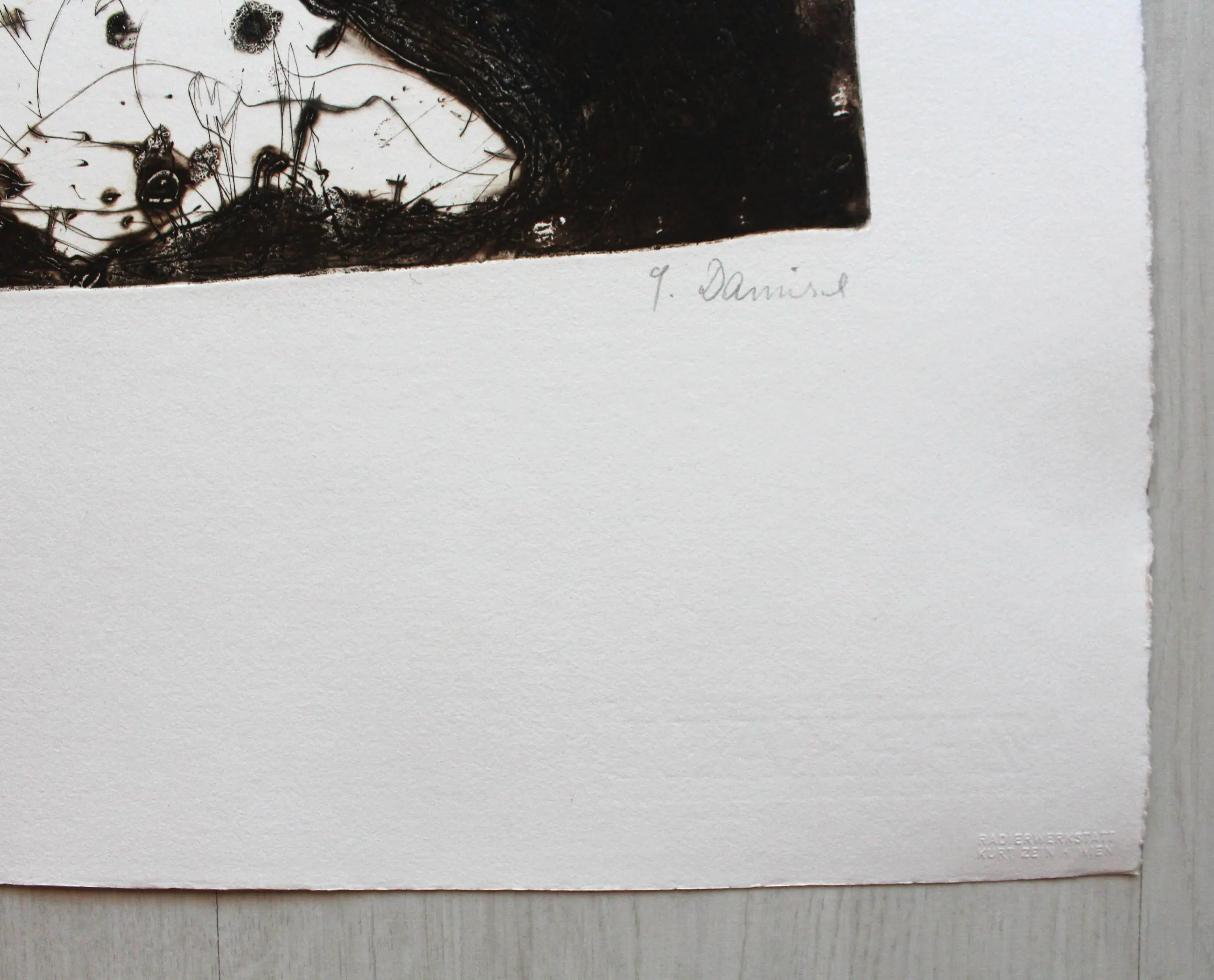 Titel: "2 POLE" 1988. Techniek: Etsen op handgemaakt papier. Beperkte oplage van 17 exemplaren. Handtekening, datum en nummering aanwezig. Gedrukt door Kurt Zein, Wenen. Afmetingen vel: ca. 75 x 53 cm In zeer goede staat. - Nooit aan licht blootgesteld.