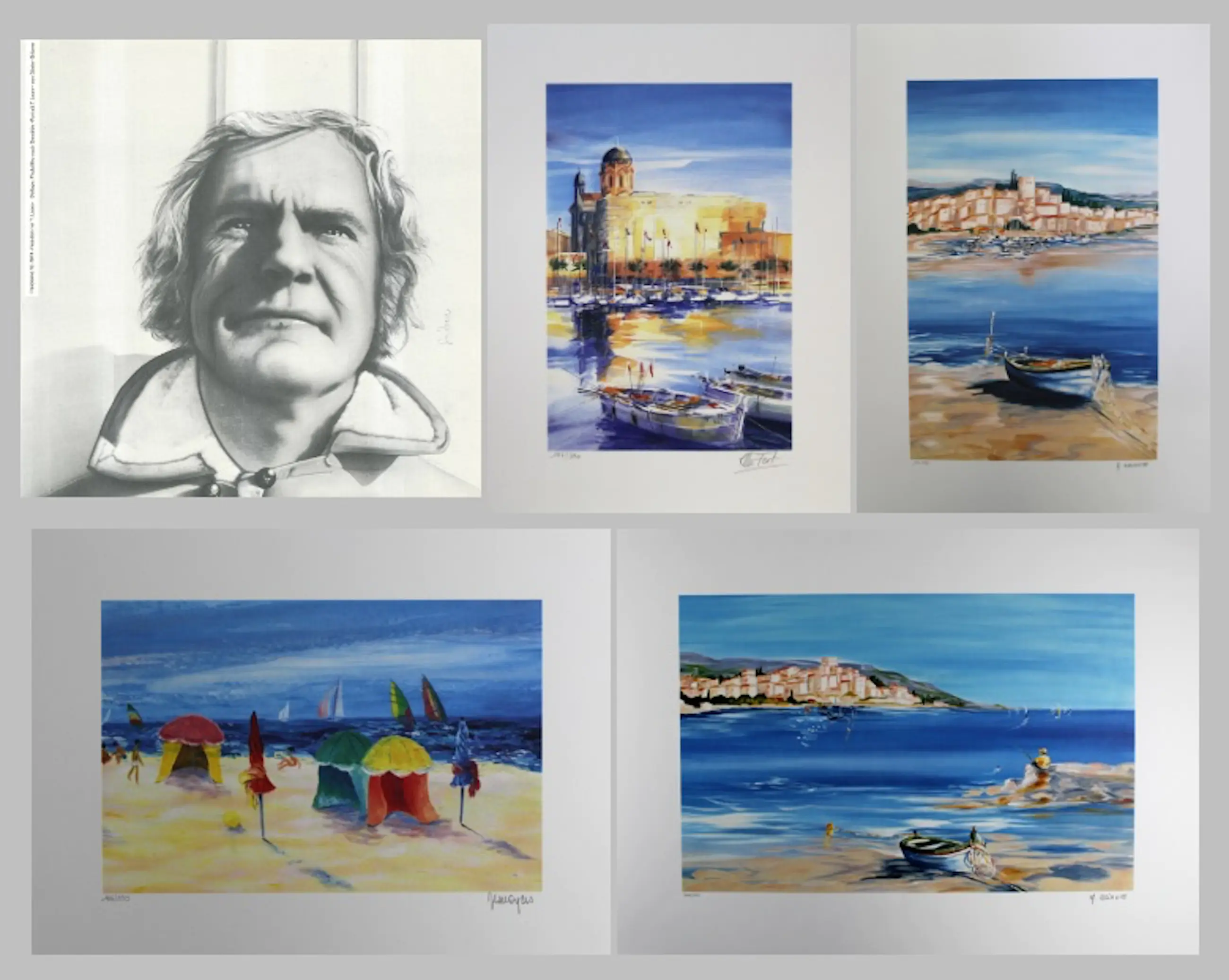 Gunter Gritzner - e.a: vijf handgesigneerde lithografieën: Portrait Leary T. (1973), Zeegezichten - Verkocht