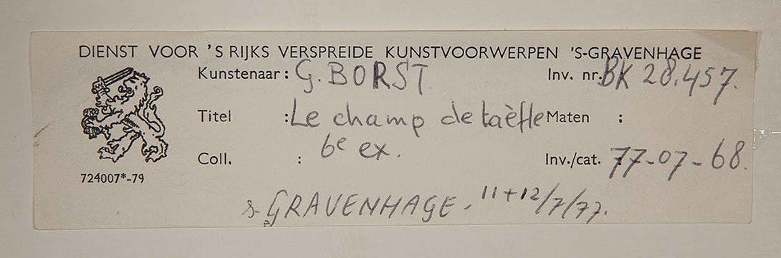 Herkomst: BKR Den Haag (Het kunstwerk is afgevoerd uit de rijkscollectie in 2018)