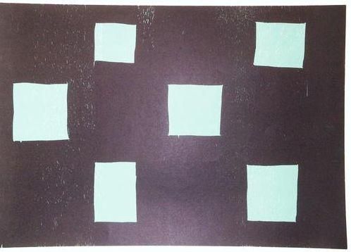 6 Rechtecke, zweifarbiger Holzdruck in graugrün und schwarz,