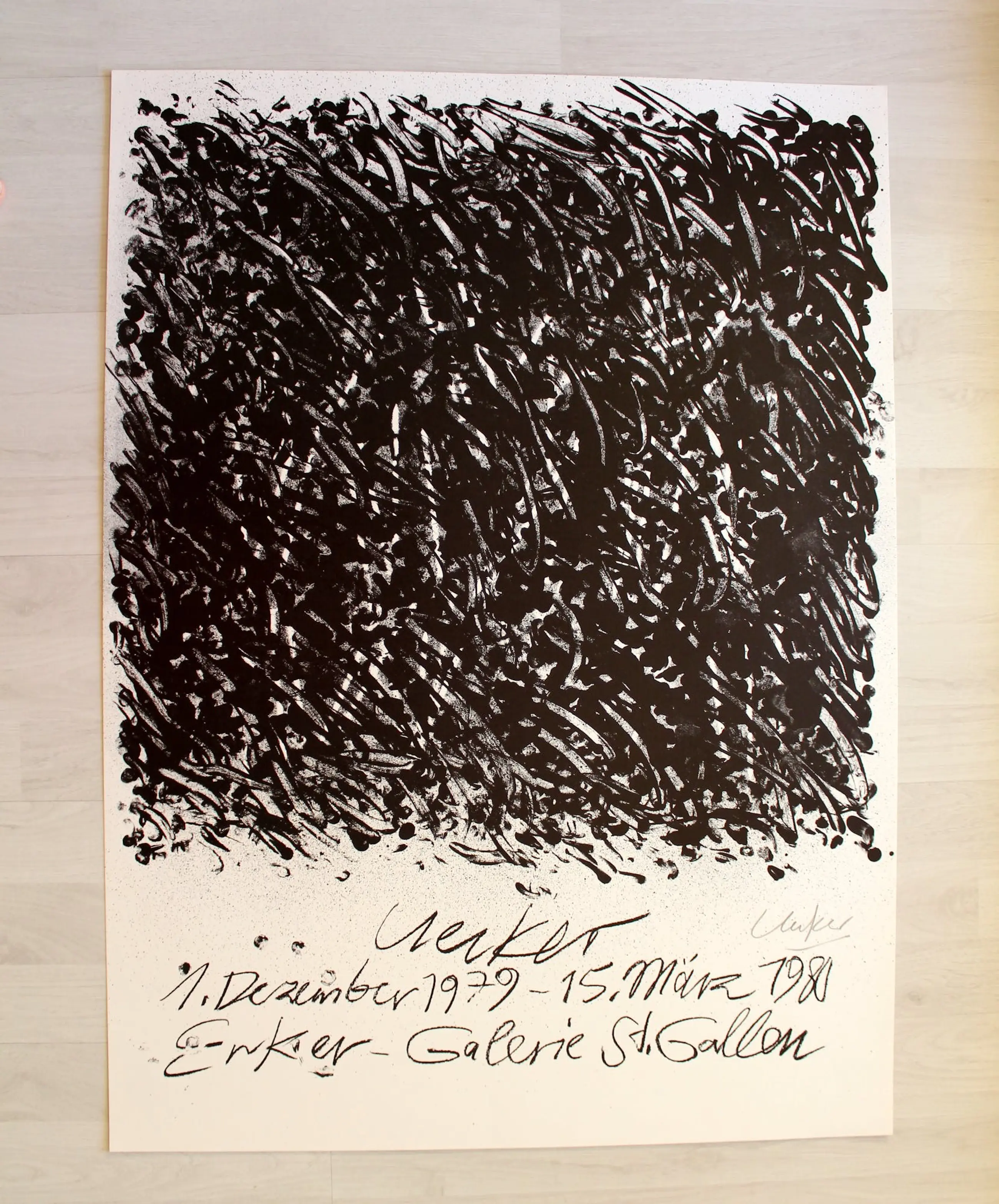 Originele litho van Gunther Uecker (*1930). Dit werk werd gepubliceerd ter gelegenheid van de solotentoonstelling van de kunstenaar in de Erker Galerie St. Gallen van 1 december 1979 tot 15 maart 1980 onder leiding van Gunther Uecker.