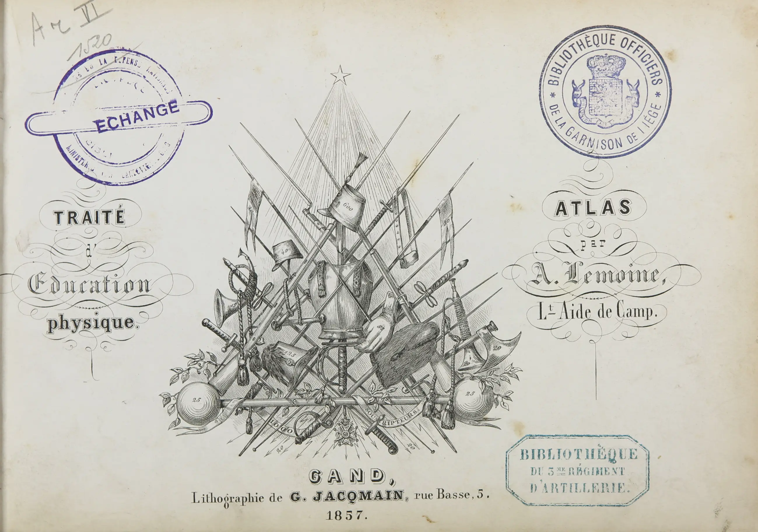 Traité d'Education physique, met litho's door Gust Jacqmain, samengesteld door A. Lemoine en uitgegeven door Gand.