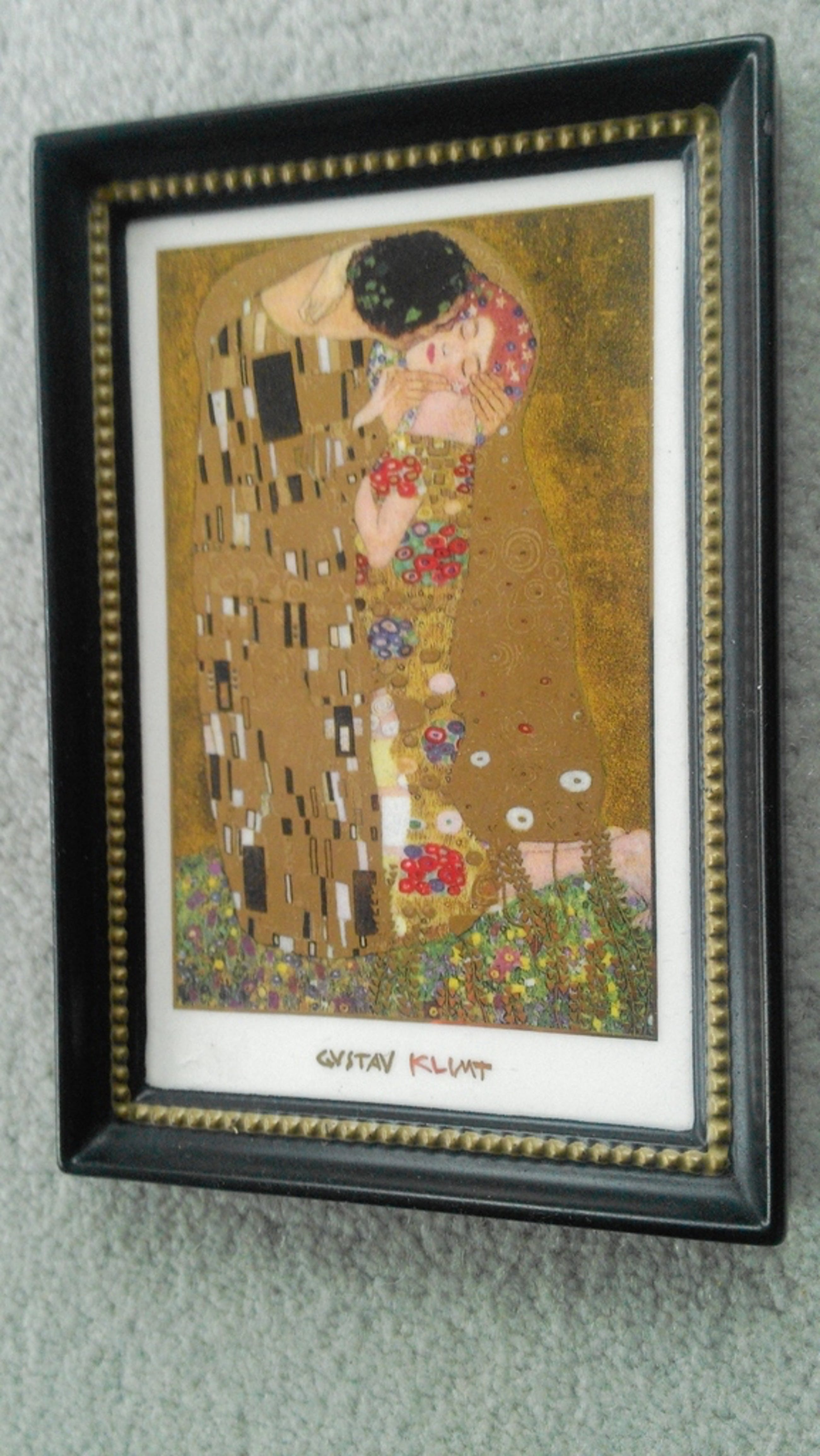 Porselein plaquette, schilderij .Maat; 13.5 x 9 cm.