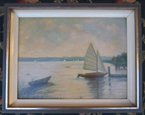 Eins der sehr seltenen Ölbilder des früh verstorbenen Leipziger Künstlers und Architekten Gustav Ziemann, dargestellt ist sehr wahrscheinlich der Kulkwitzer See mit Segelbooten. Rechts unten handsigniert, etwa 36 cm mal 45 cm, guter Zustand, rückseitig gestempelt. Professionell in einem sehr schönen Rahmen (Gebrauchsspuren, aber insgesamt gut) - dieser steht hier nicht zur Versteigerung, sondern wird gratis mitgeliefert. Privatverkauf - wegen der neuen EU-Gesetzesbestimmungen erfolgt die Auktion unter Ausschluss jeglicher Gewährleistung, Garantie und Rücknahme. Laut EU-Recht muss dieser Zusatz unter jeder Online-Auktion stehen, ansonsten haftet der Einlieferer auch als Privatperson ein Jahr lang für die versteigerte Ware. Mit der Abgabe Ihres Gebotes erklären Sie sich mit diesen Bestimmungen einverstanden. Bei Fragen bitte mailen. Versandkosten trägt der Käufer, Versand innerhalb Deutschlands 10 Euro.