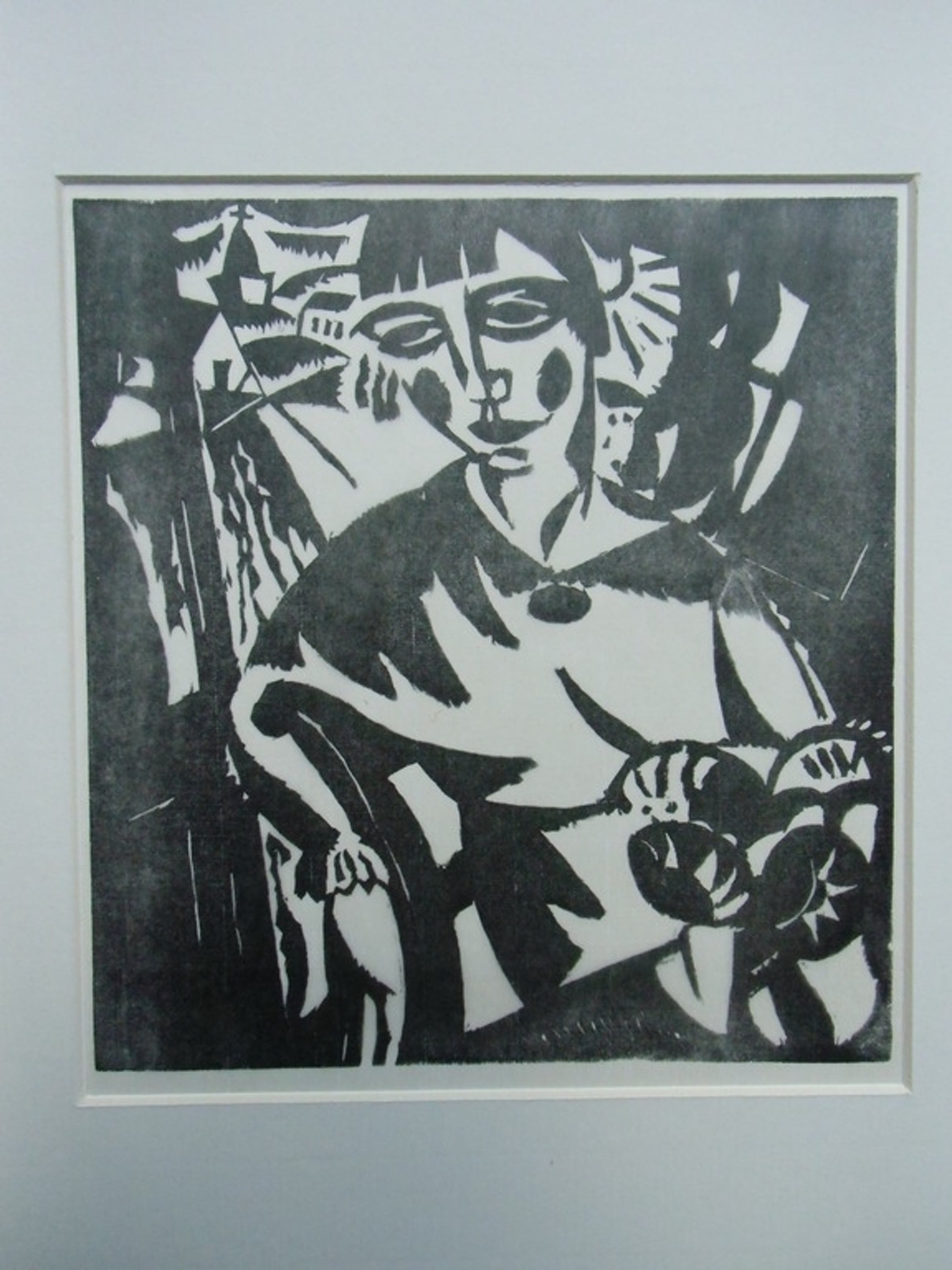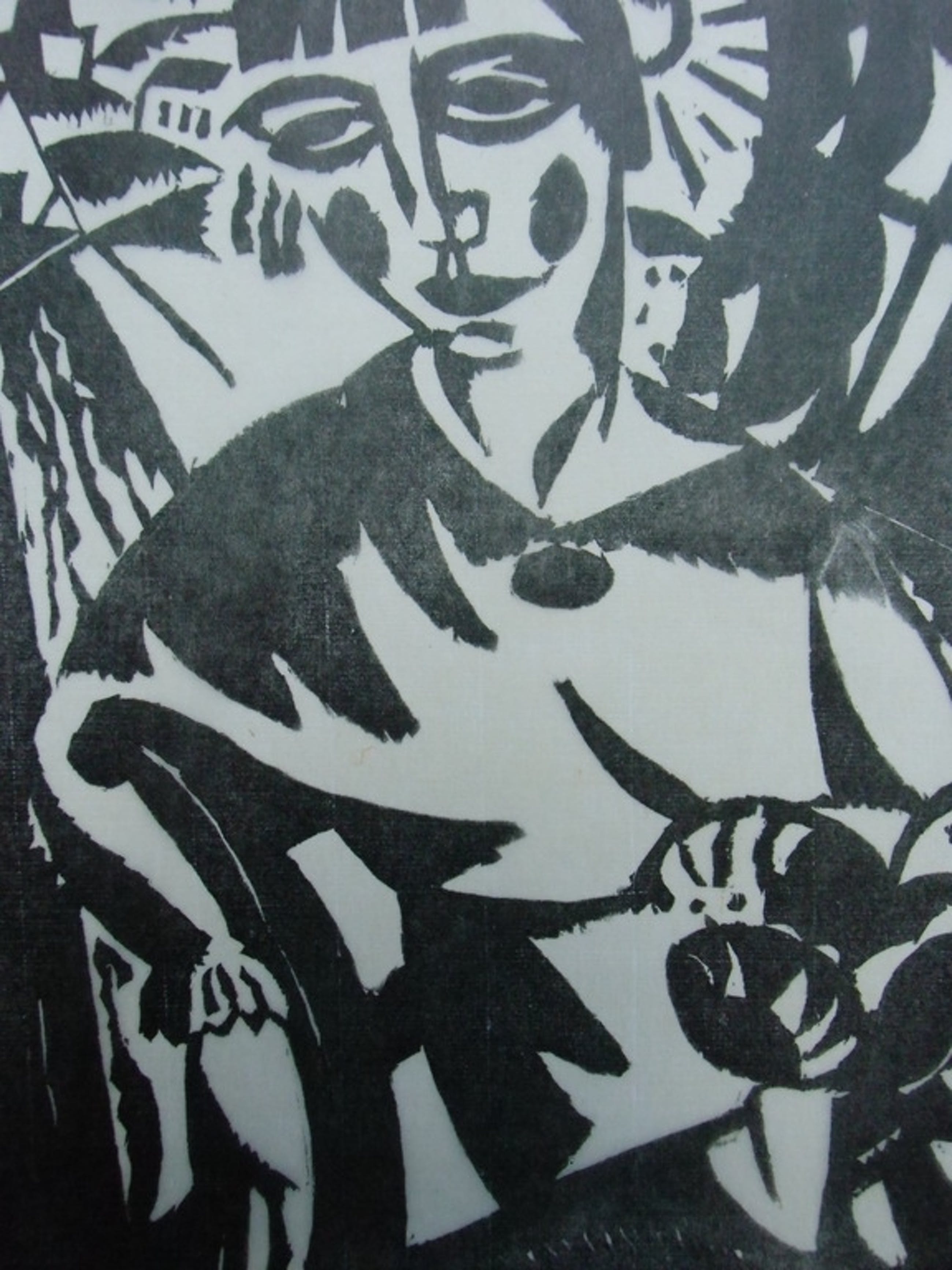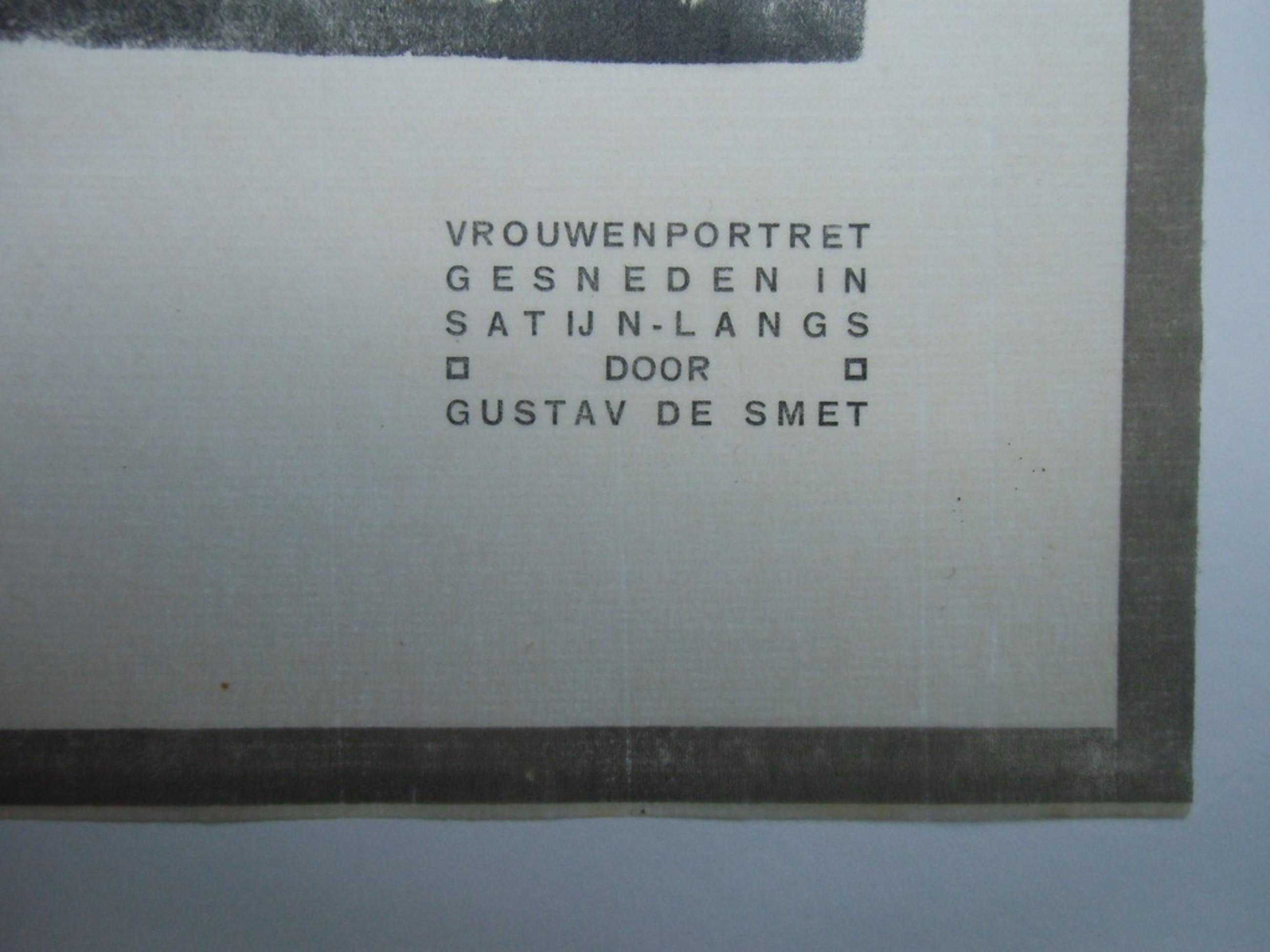 Deze houtsnede werd gepubliceerd in het Houtsnijdersnummer van Wendingen in 1919. Het werk is gedrukt op dun Japans papier en is typografisch omschreven onder de afbeelding. Afmetingen beeld 23 x 21.5 cm. Afmetingen blad 32.3 x 31.7 cm. De snede is los opgenomen in een passepartout van 50 x 40 cm. Uitstekende staat.