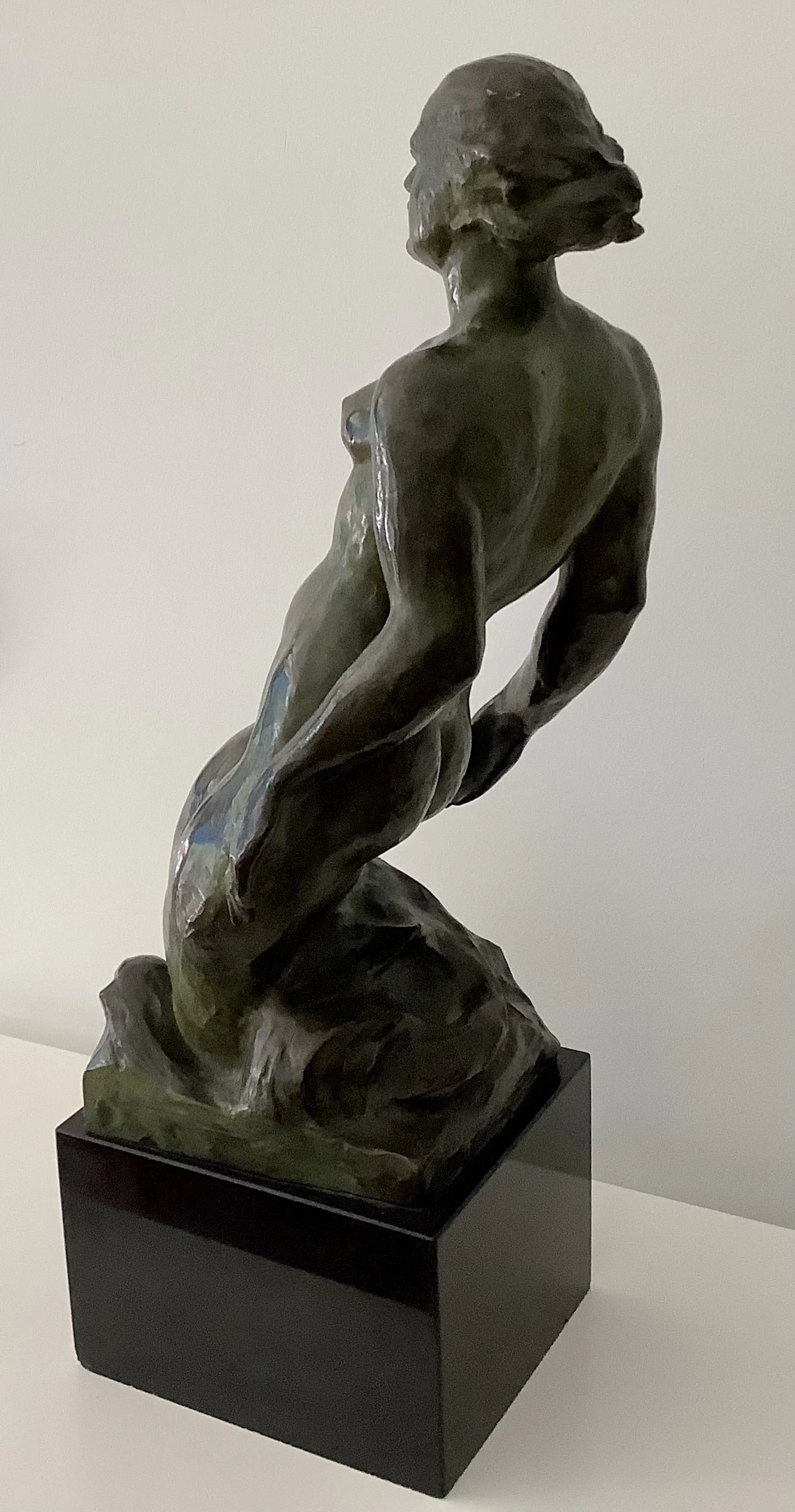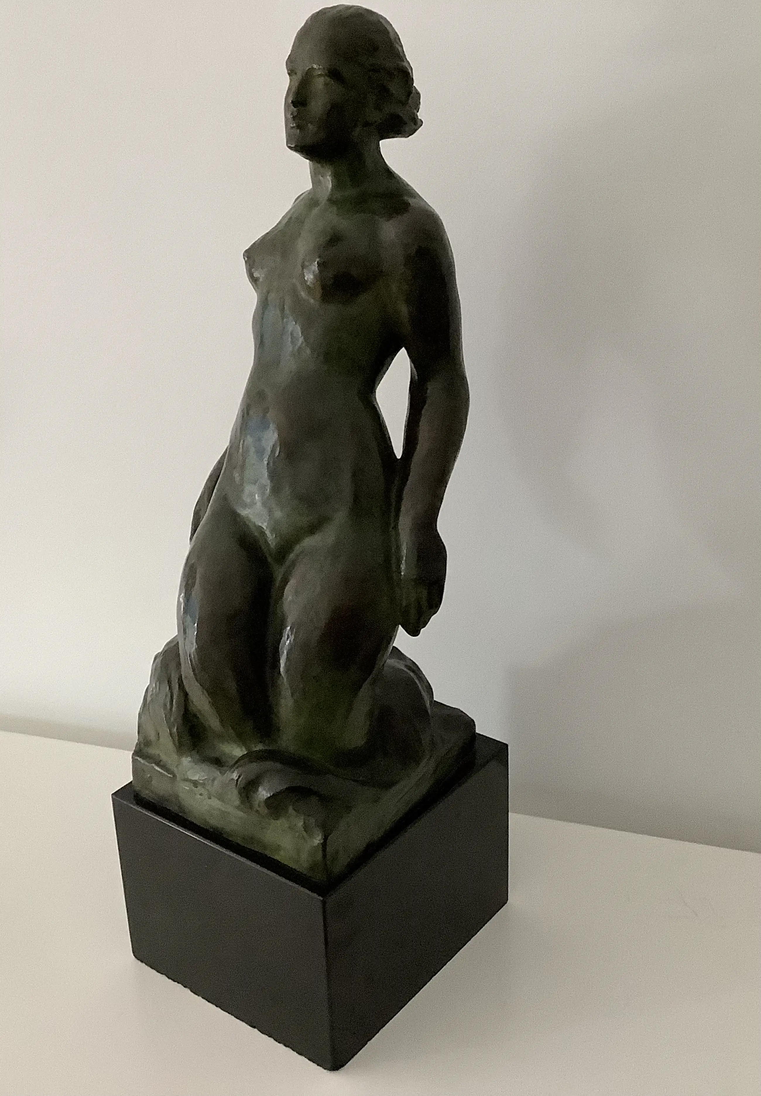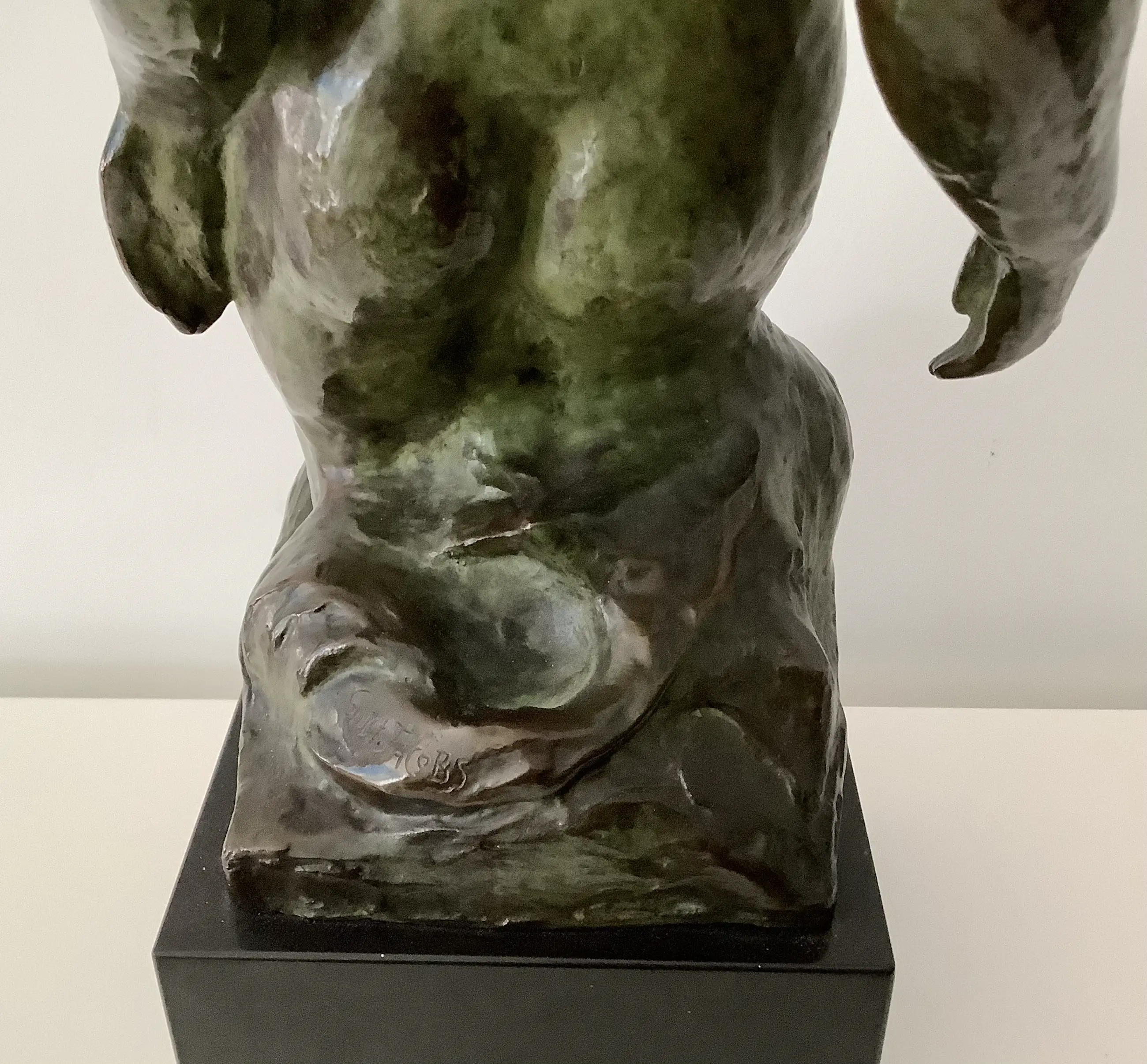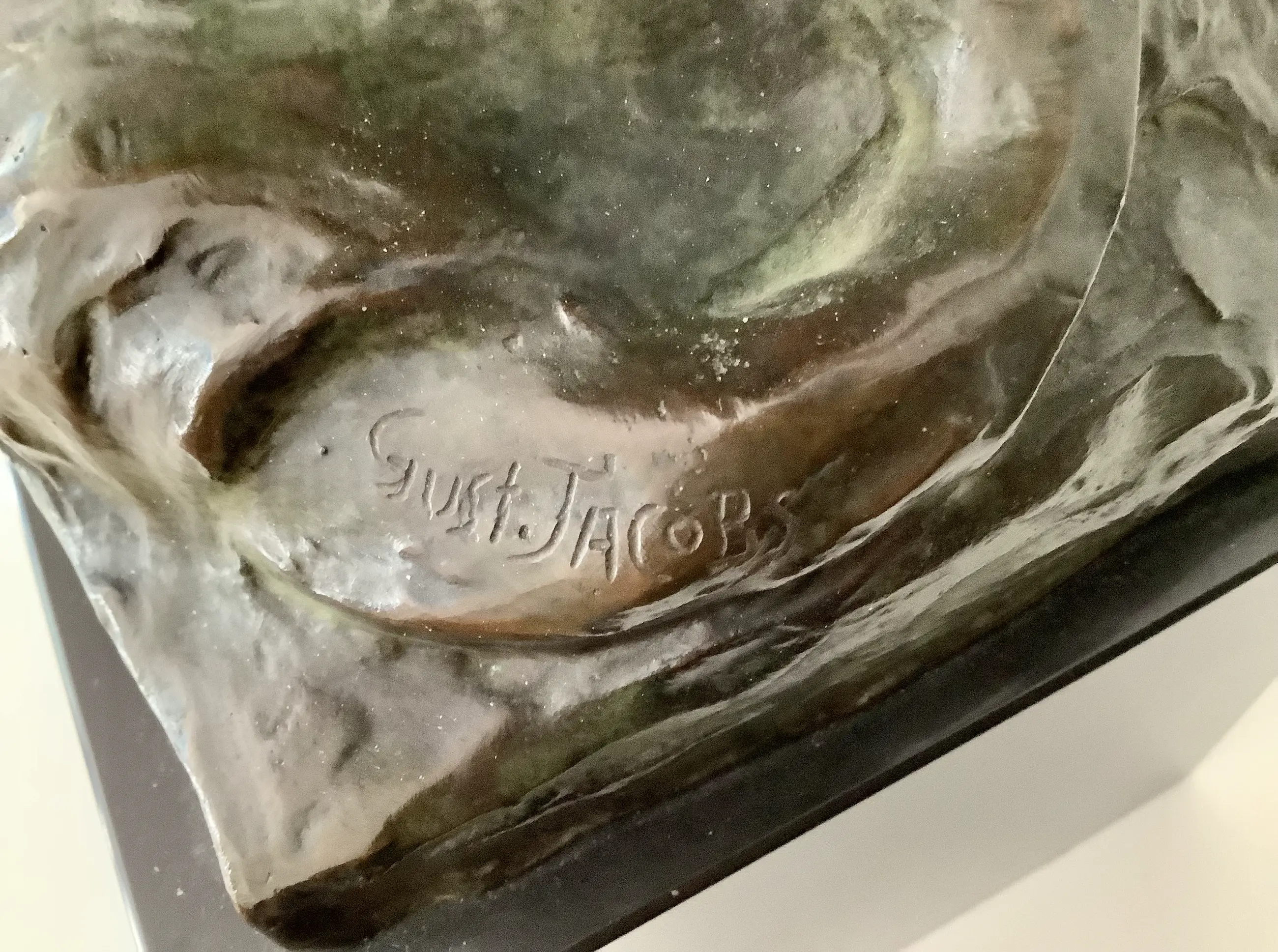 Kwalitatief hoogwaardig werk van Gustave Jacobs. Fraaie patina op natuurstenen blok. Wordt niet verstuurd vanwege gewicht.