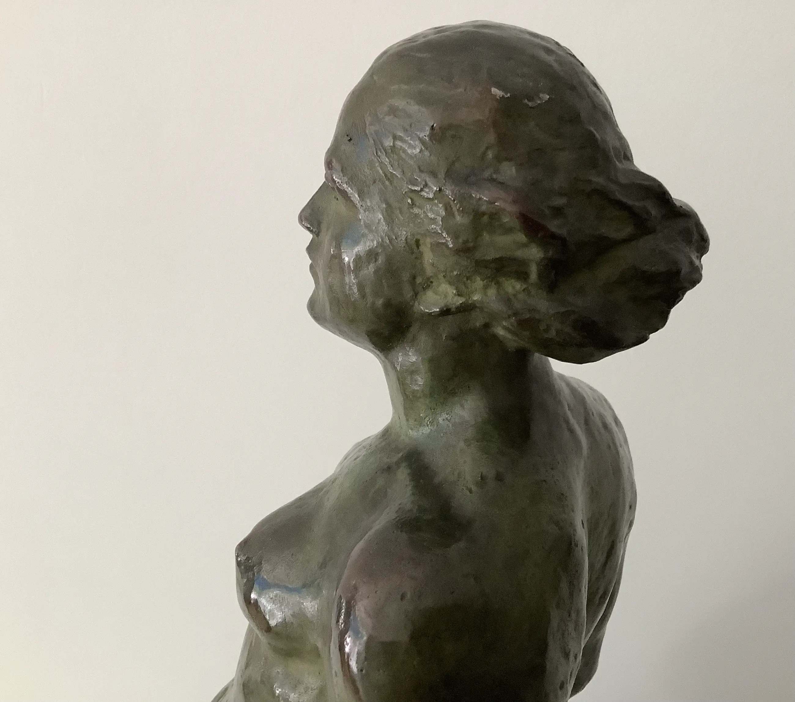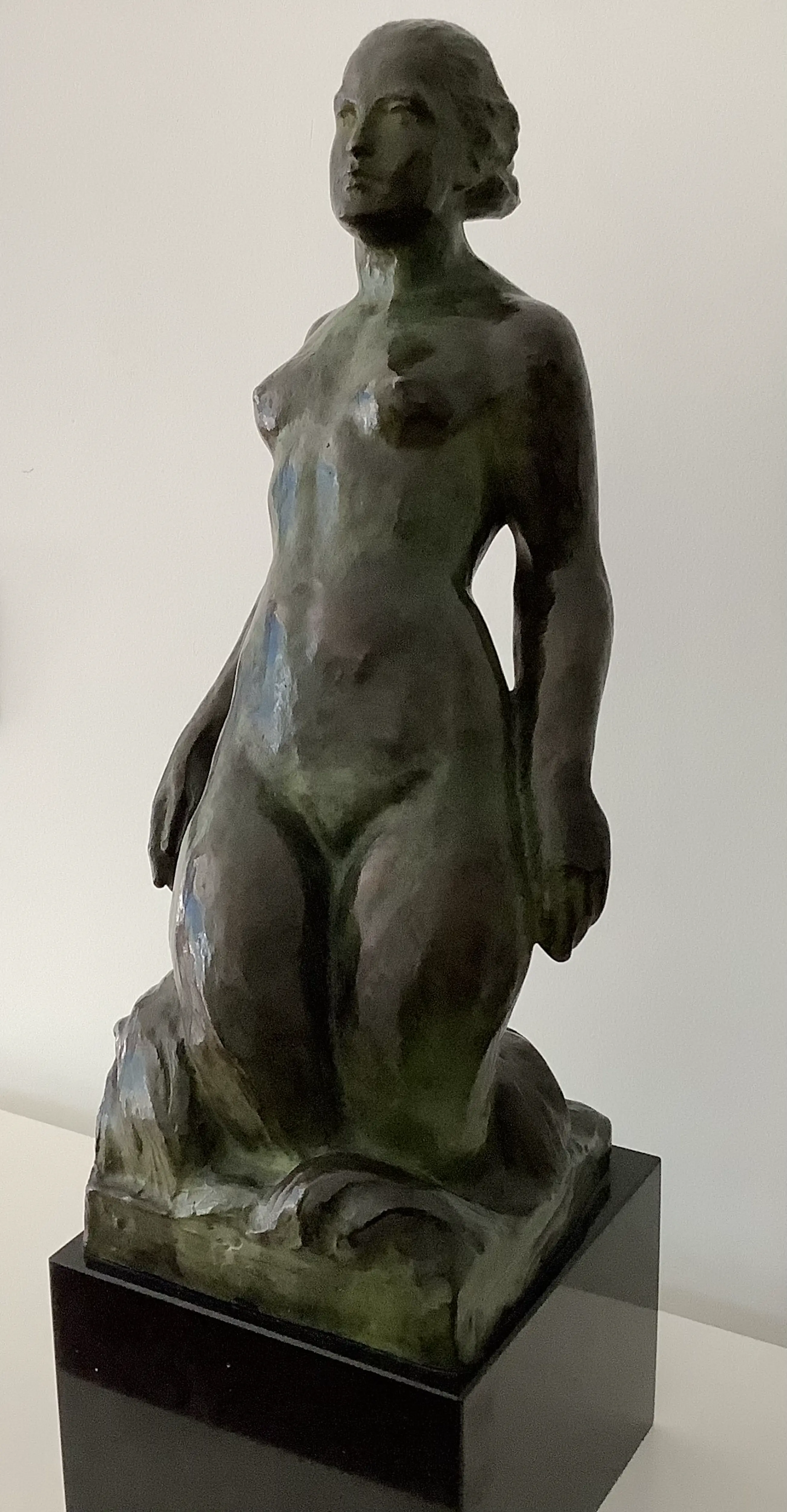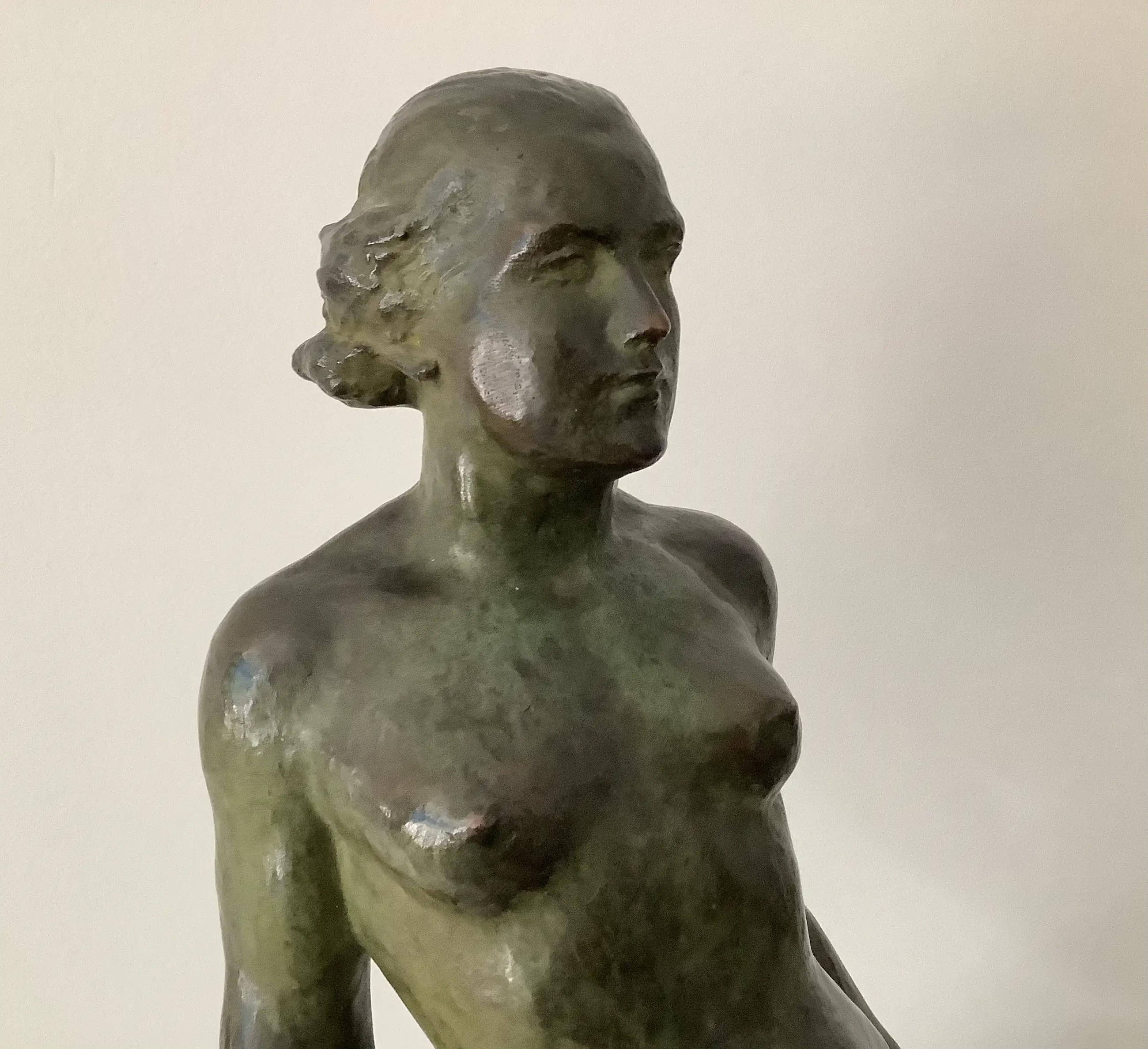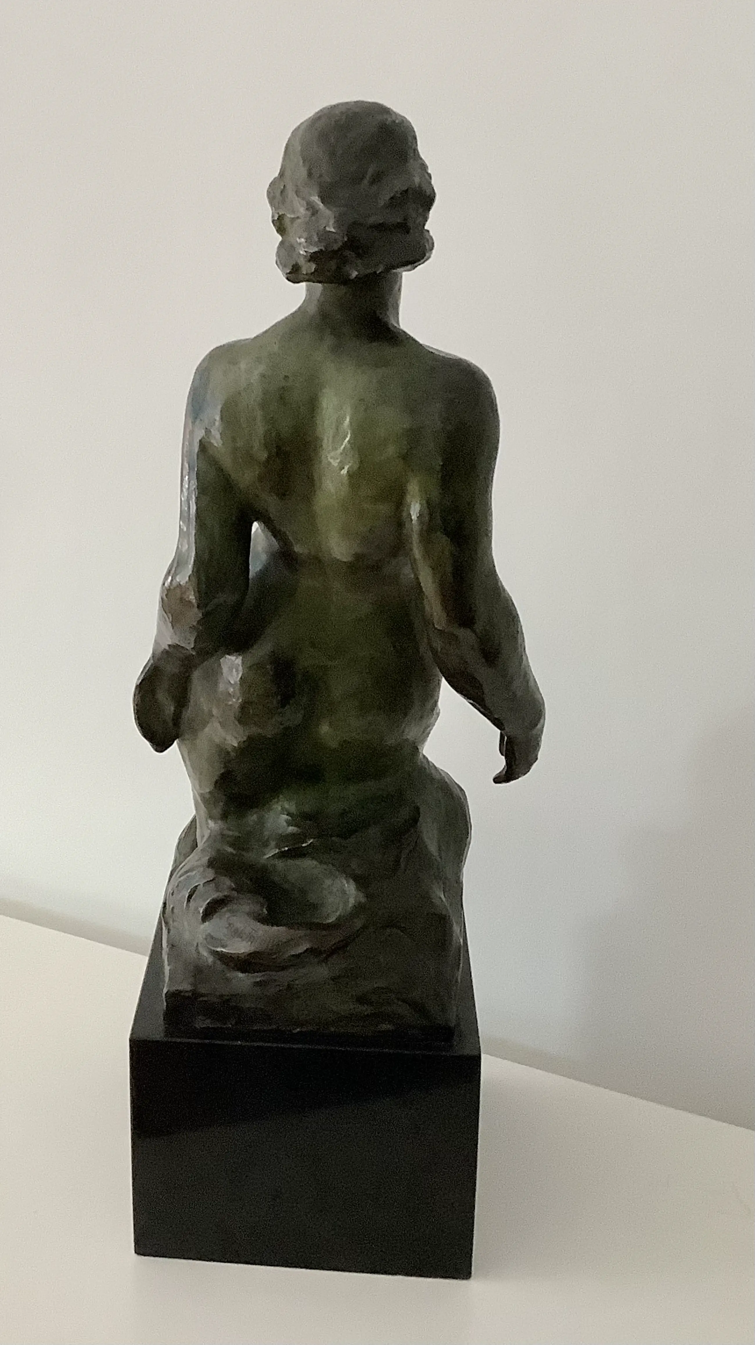 Kwalitatief hoogwaardig werk van Gustave Jacobs. Fraaie patina op natuurstenen blok. Wordt niet verstuurd vanwege gewicht.