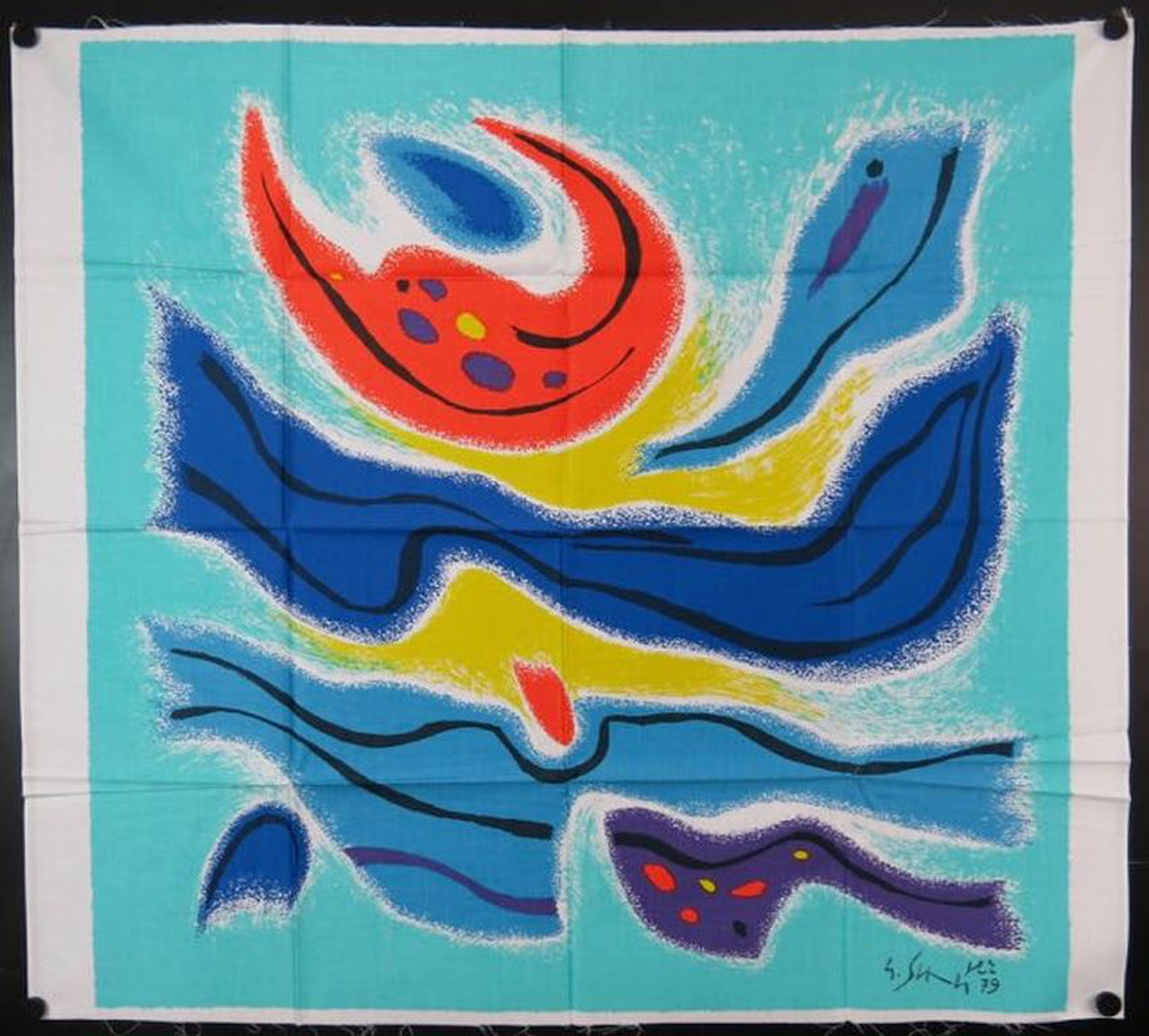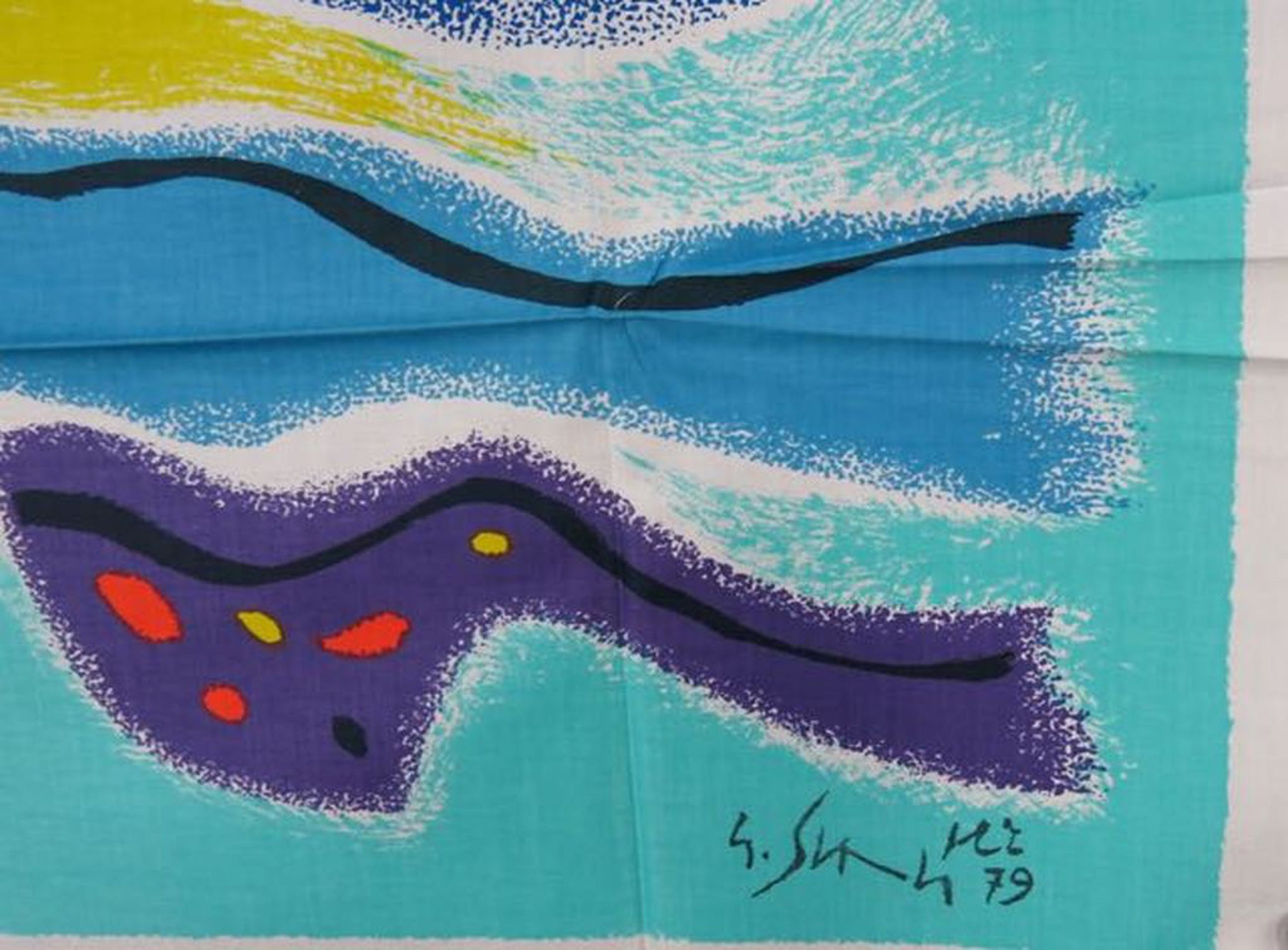 Texoprint bv vroeg jaarlijks een kunstenaar voor de vervaardiging van een zeefdruk op textiel, welke werd uitgebracht in een gelimiteerde oplage. Wij veilen nu diverse van deze uitgaves.