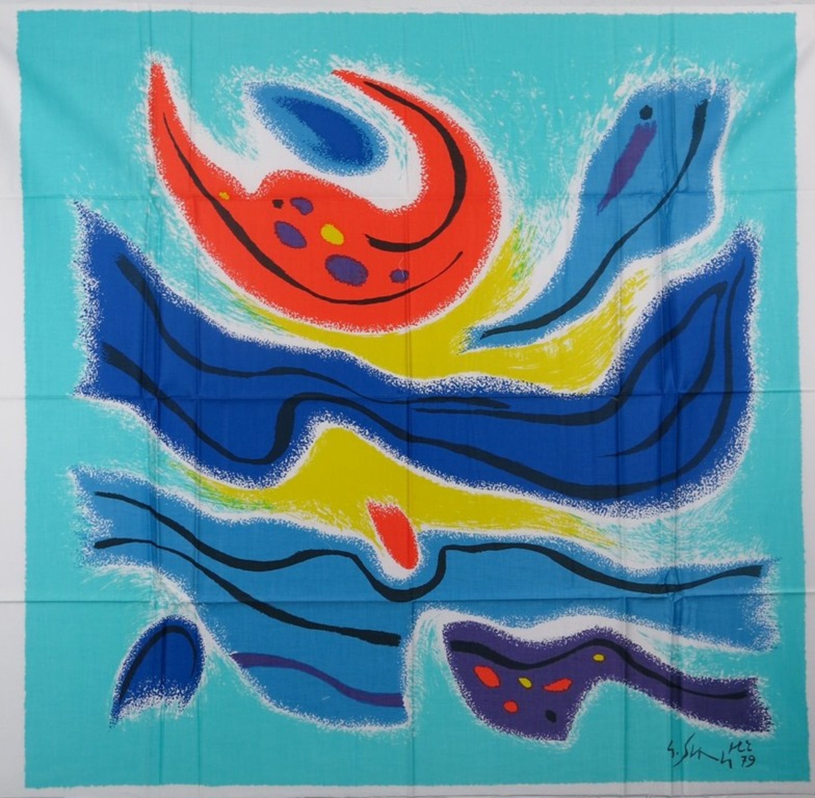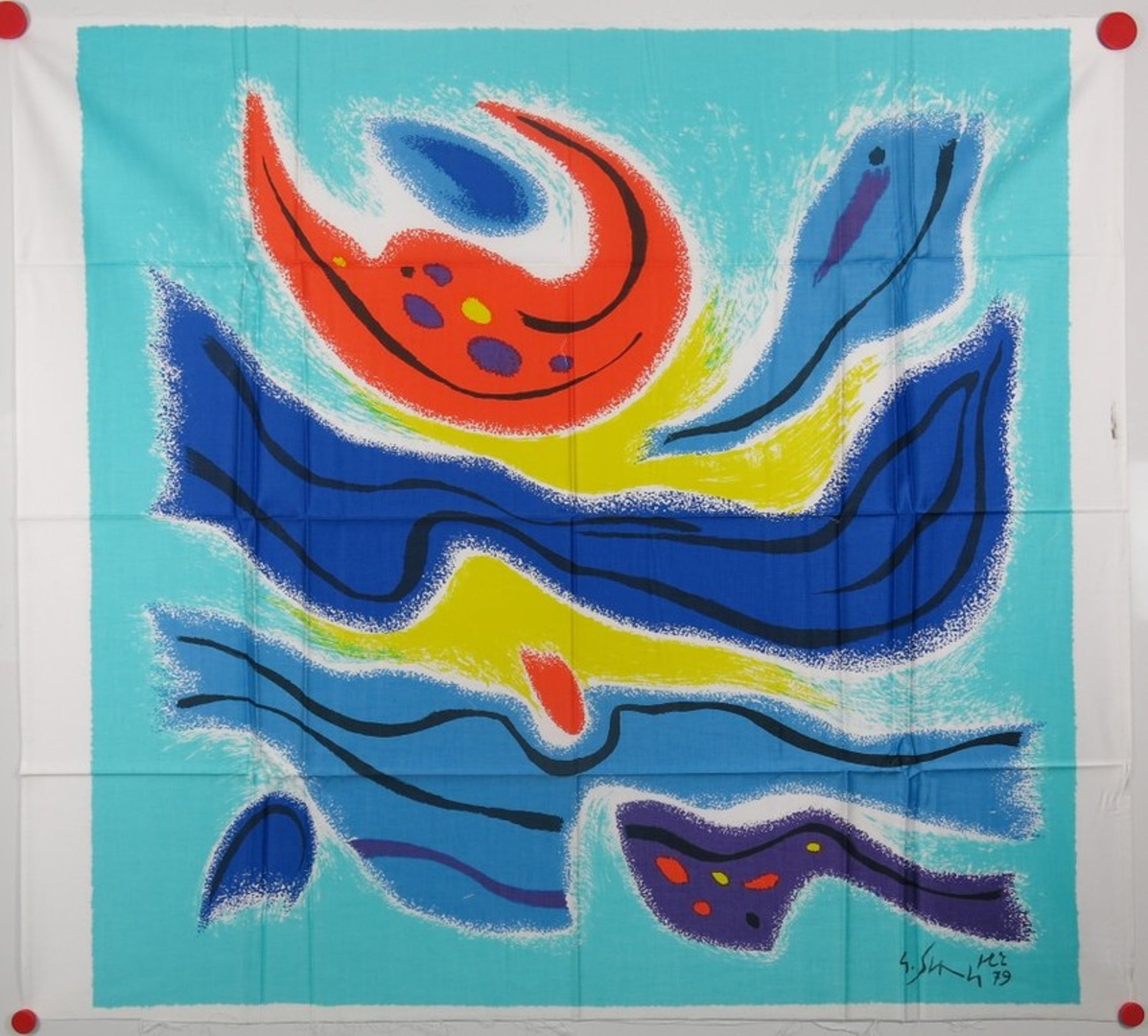 Texoprint bv vroeg jaarlijks een kunstenaar voor de vervaardiging van een zeefdruk op textiel, welke werd uitgebracht in een oplage van 200. Wij veilen nu diverse van deze uitgaves.